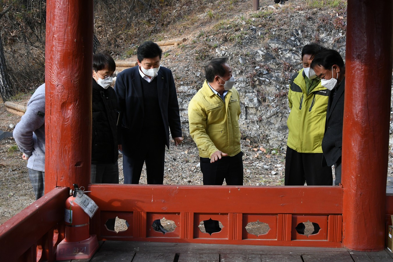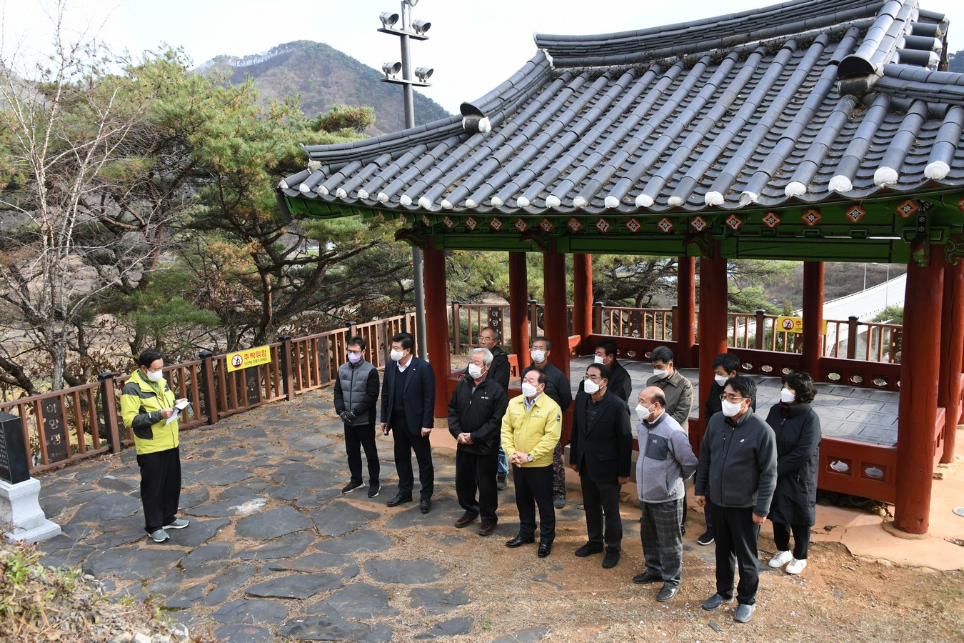 22일 한왕기 평창군수는 민선7기 주민과의 소통 처리결과 현장인 평창읍 아양정을 찾아 간단한 준공식을 갖고 지기주 아양정 회장과 마을 주민들의 추가 민원을 청취 했다. (평창포토뉴스 김춘호)