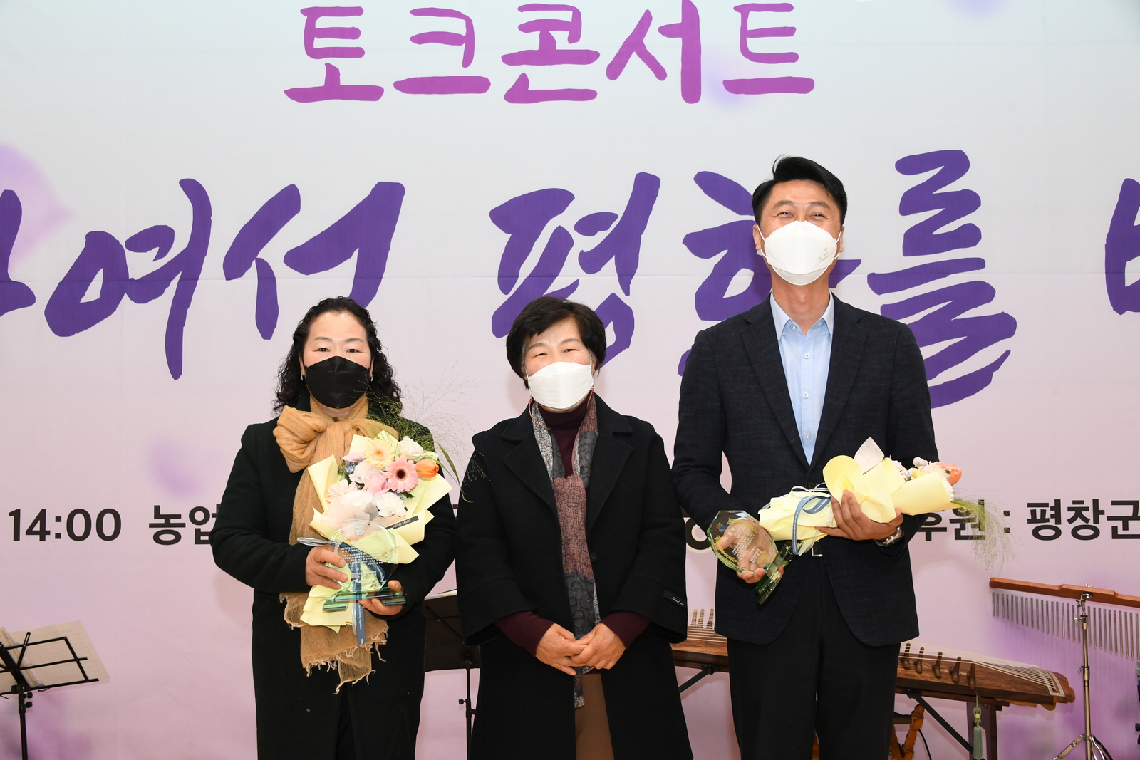 2일 토크콘서트 「평창여성 평화를 빚다」 행사가 농업기술센터 농업인교육관에 한왕기 평창군수를 비롯한 윤석훈 도의원, 이학봉 평창군이장협의회장, 김복준 평창군여성단체협의회장과 회원 등 100여 명이 참석한 가운데 있었다. (평창포토뉴스 김춘호)