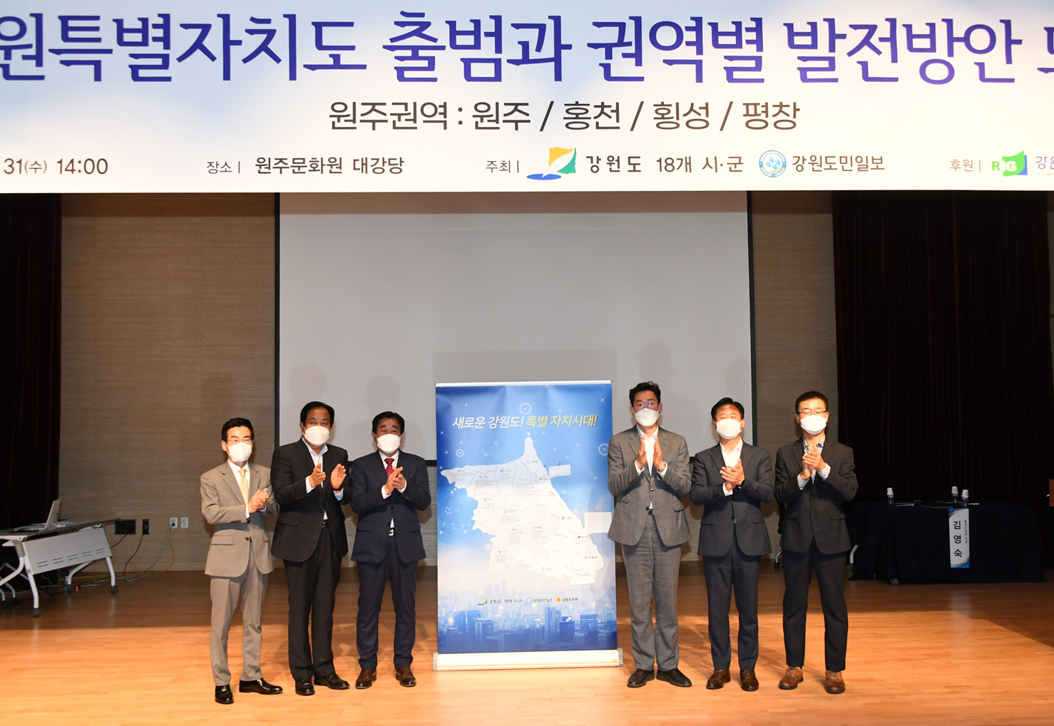 31일 민선8기 강원특별자치도 출범과 권역별 발전방안 모색 대토론회가 원주시 원주문화원 대강당에서 정광열 강원도경제부지사, 김중석 강원도민일보회장, 심재국 평창군수, 원강수 원주시장, 신영재 홍천군수, 김명기 횡성군수, 심현정 평창군의회의장 등 4개시군 자치단체장과 의회의장 및 공무원 100여 명이 참석한 가운데 있었다. (평창포토뉴스 김춘호)