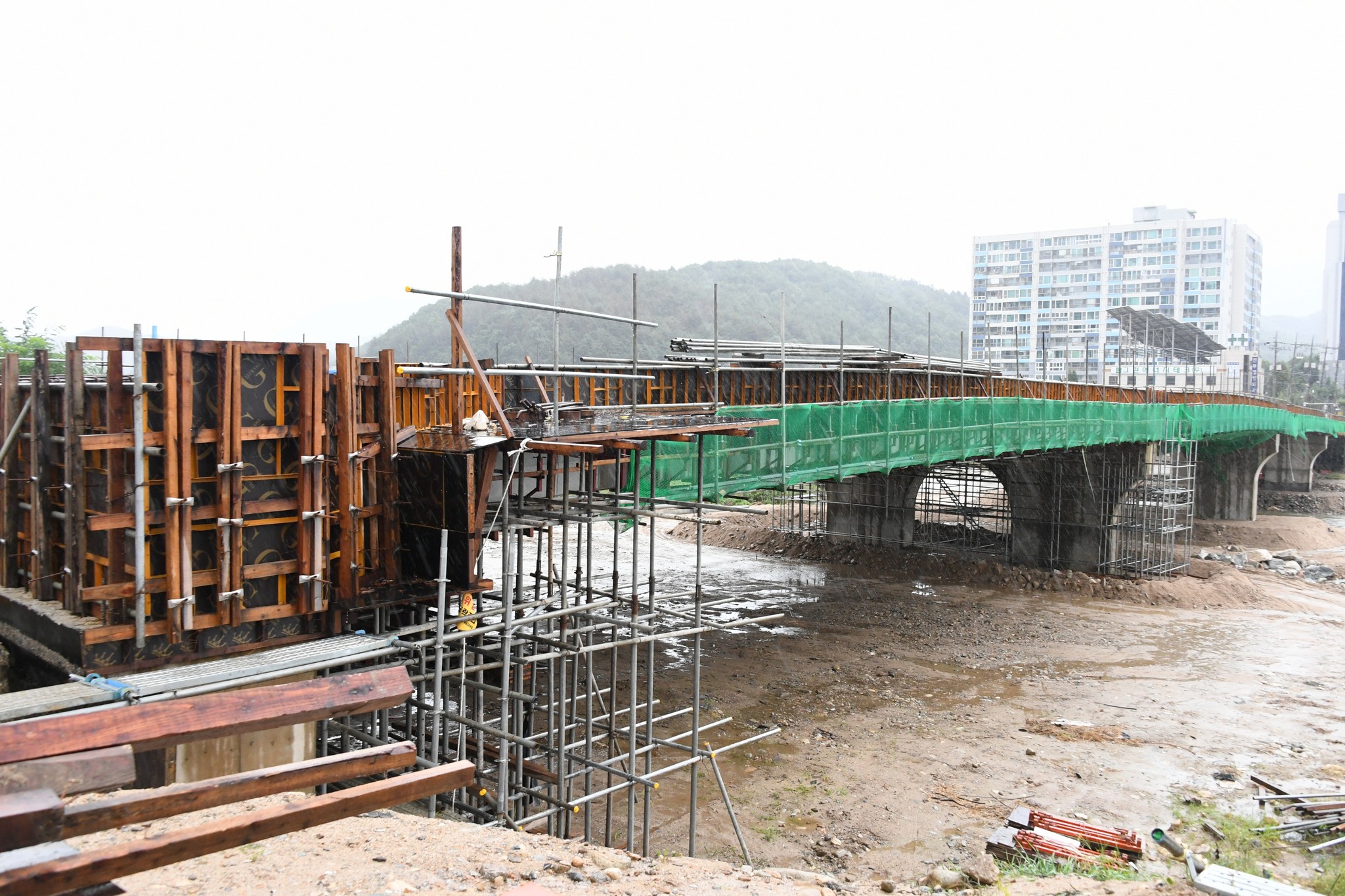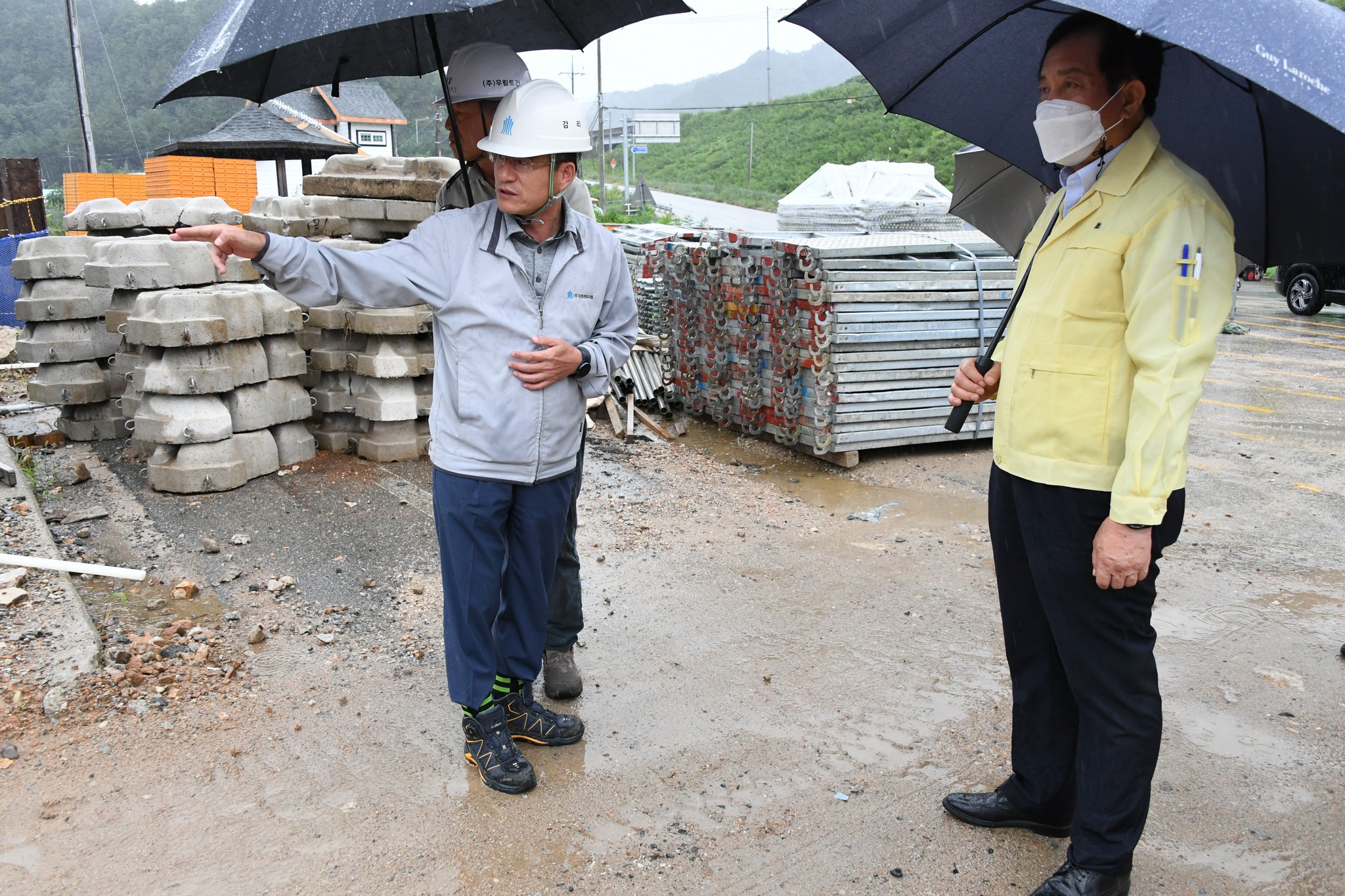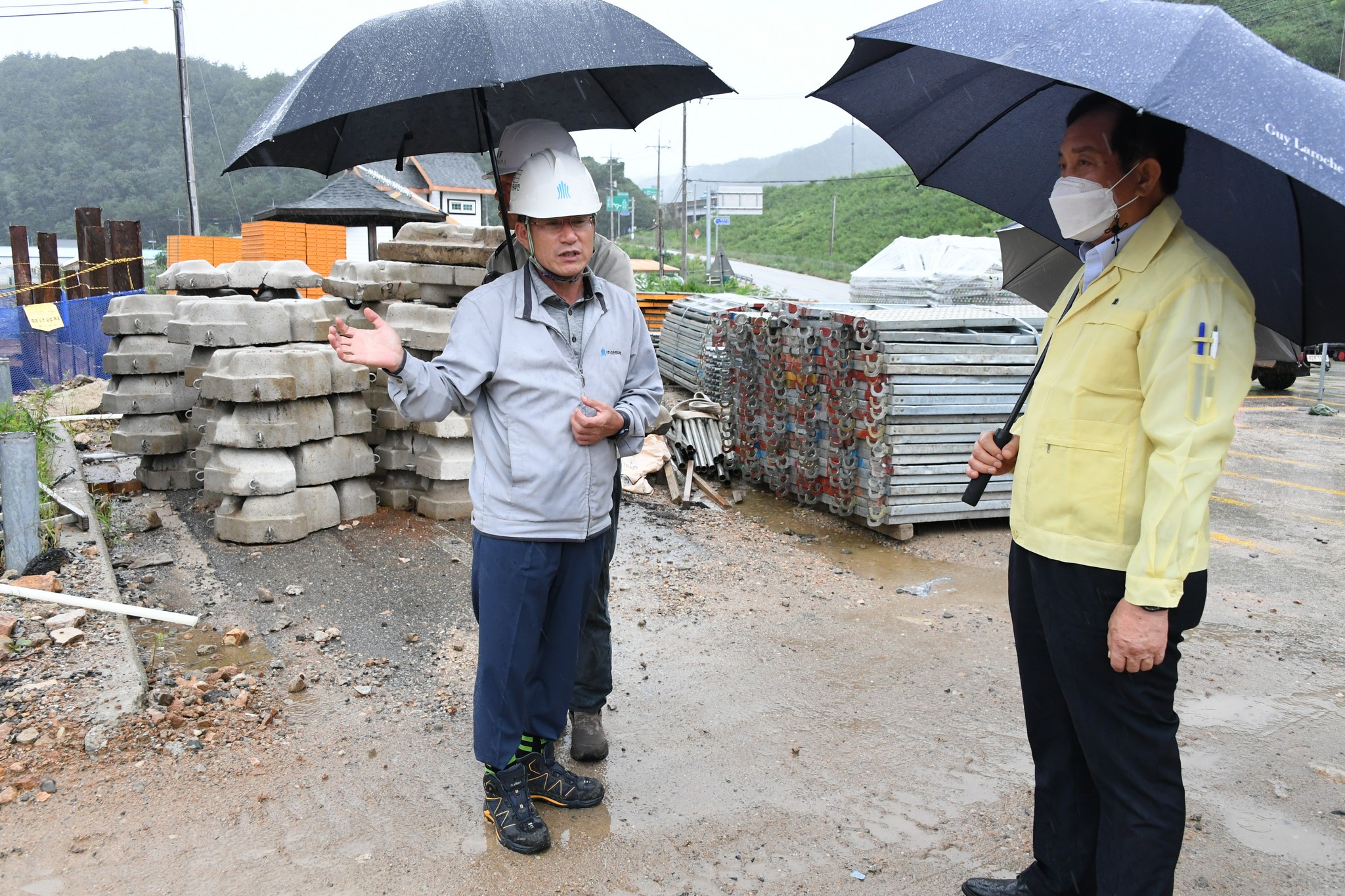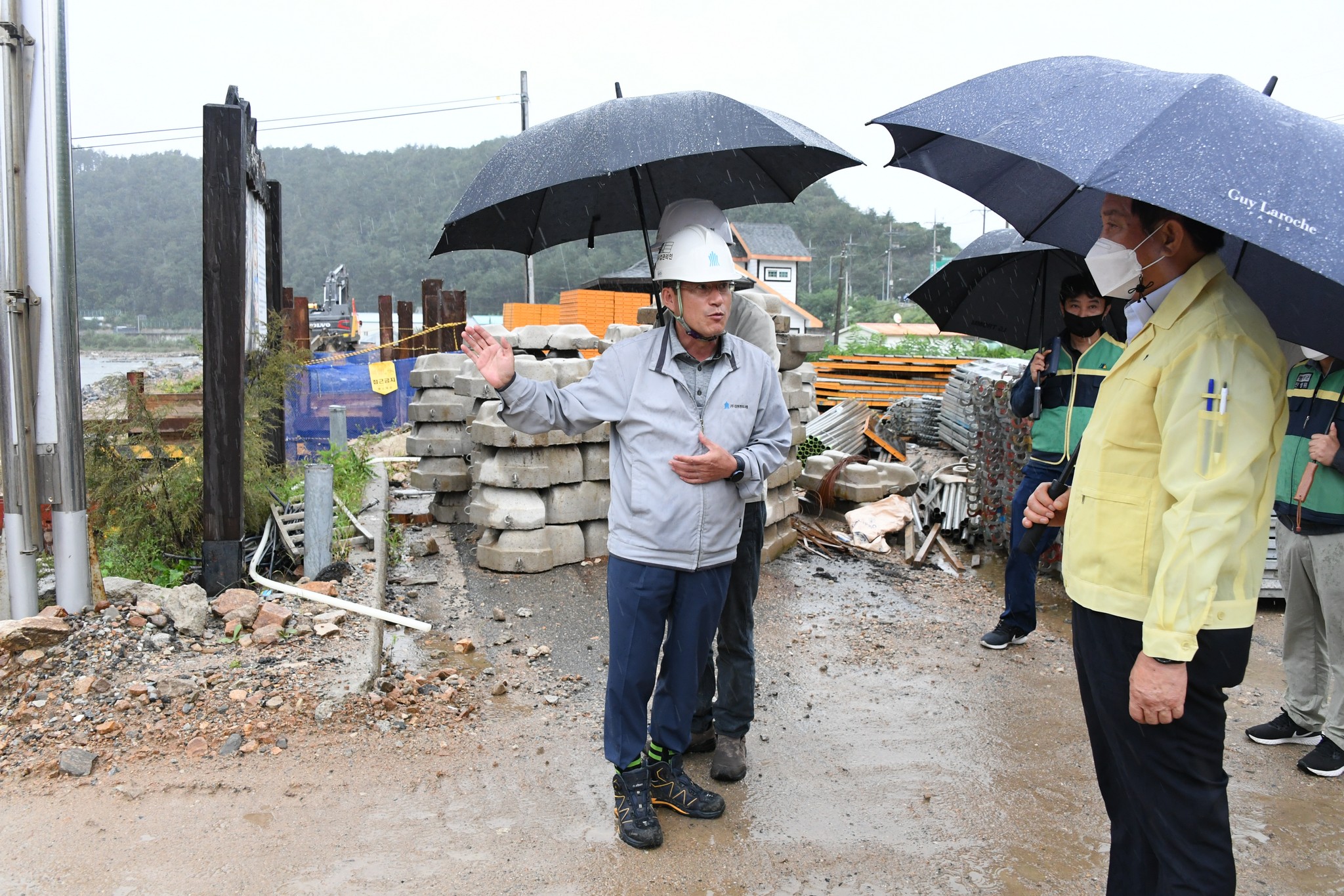 5일 심재국 평창군수는 백옥포 교량 공사 현장과 진부 송정교 공사 현장 등 태풍 힌남노 대비 주요 사업장 현장 점검했다. (평창포토뉴스 김춘호)