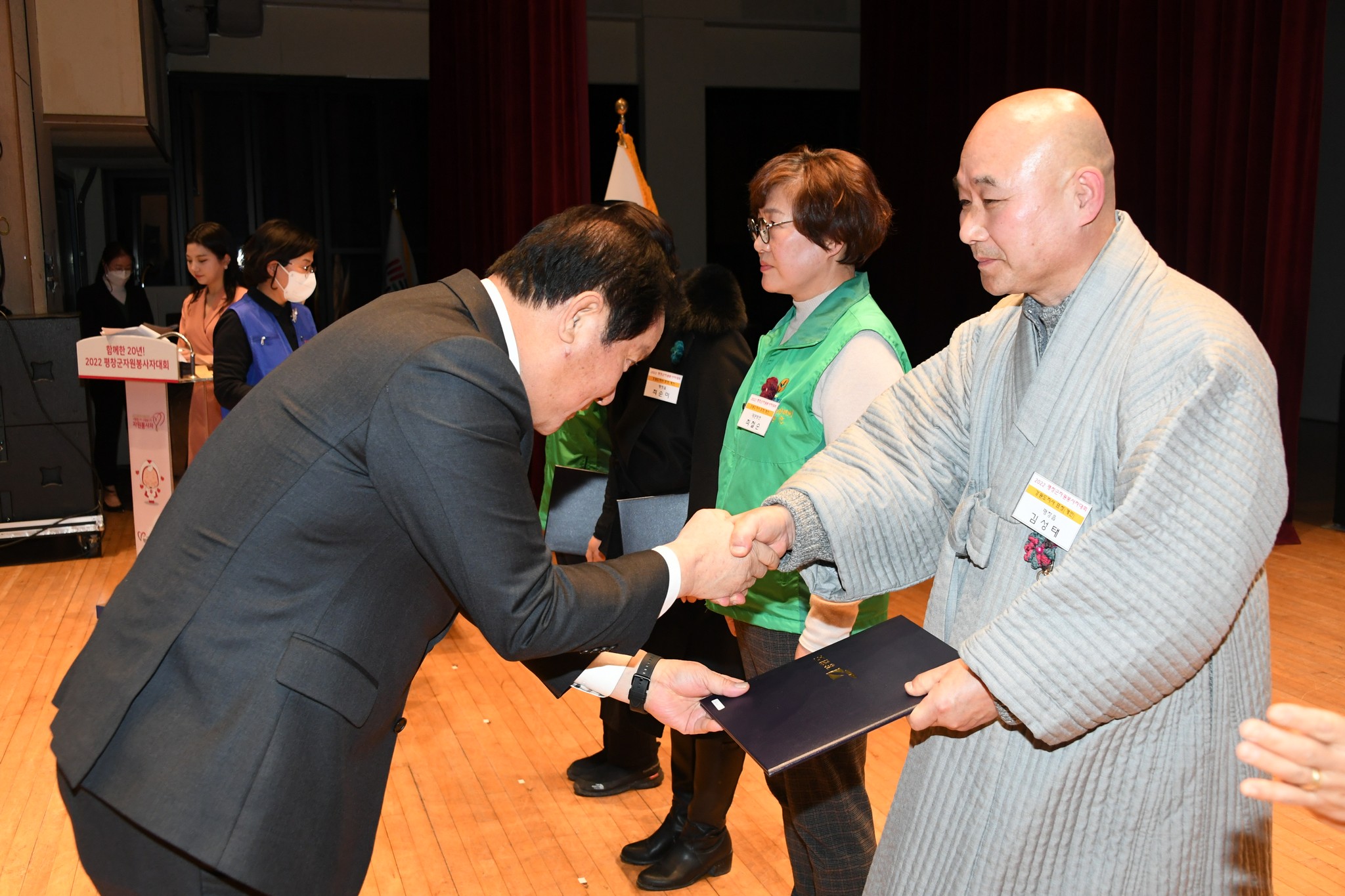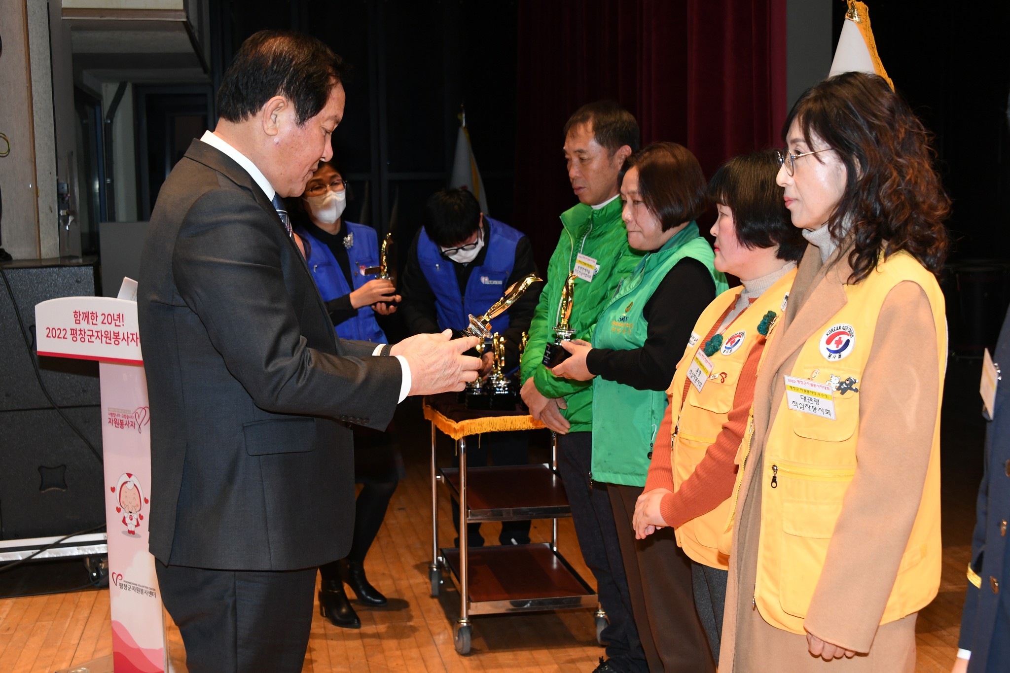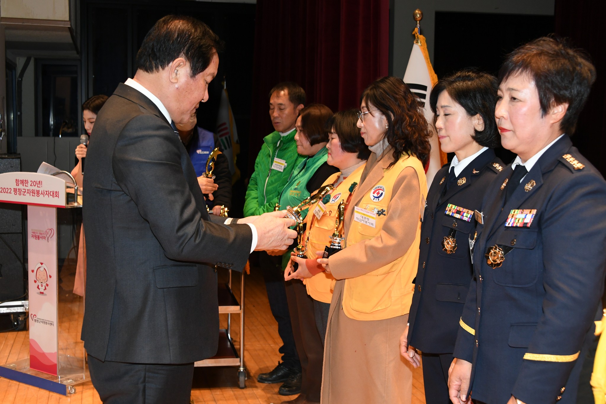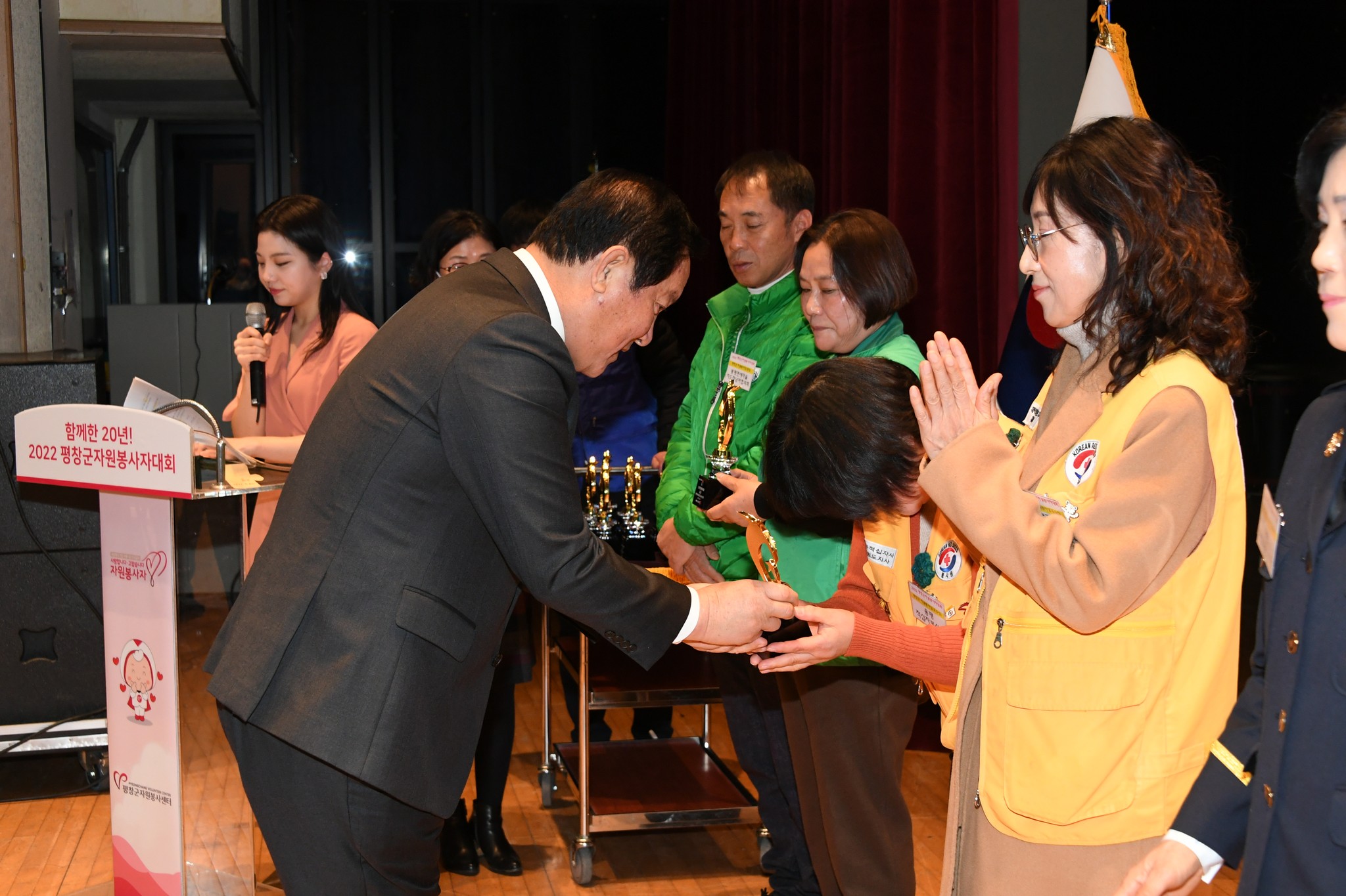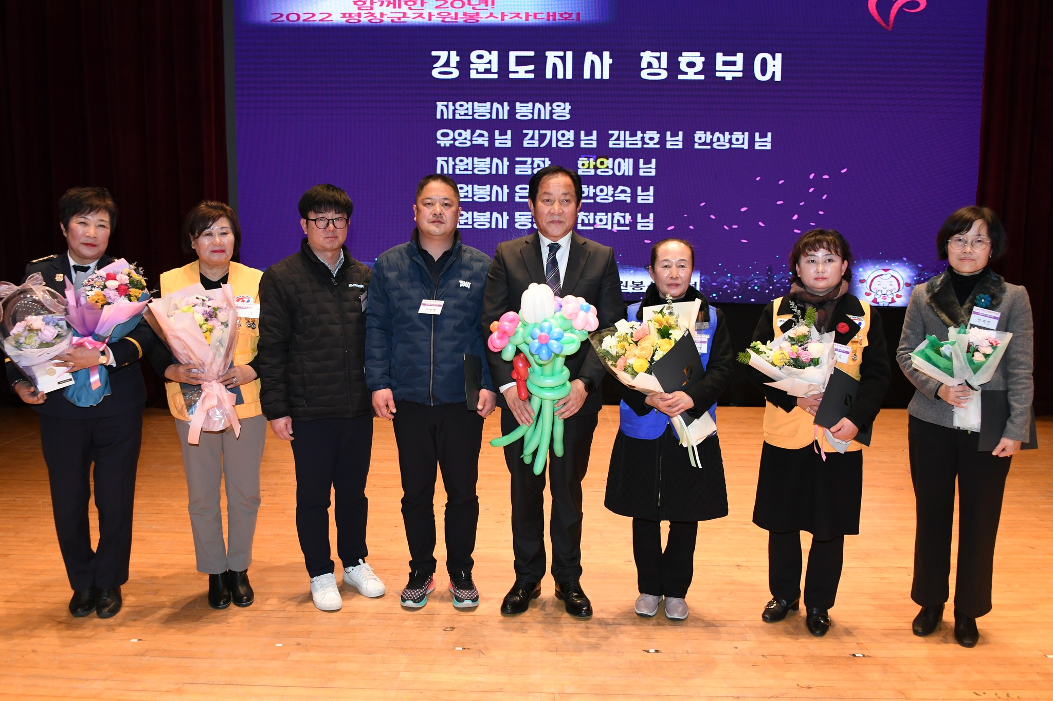 26일 2022년 평창군 자원봉사자대회가 평창문화예술회관 대공연장에서 심재국 평창군수를 비롯한 심현정 평창군의회의장, 김성기,박춘희,이은미,김광성,남진삼 군의원, 최종수,지광천 도의원, 정장호 평창교육지원청교육장, 최용수 평창소방서장 등 각급기관사회단체장과 고홍재 평창군자원봉사센터장, 이덕하 강원도자원봉사센터장 등 자원봉사단체 회원 500여 명이 참석한 가운데 열렸다. (평창포토뉴스 김춘호)
