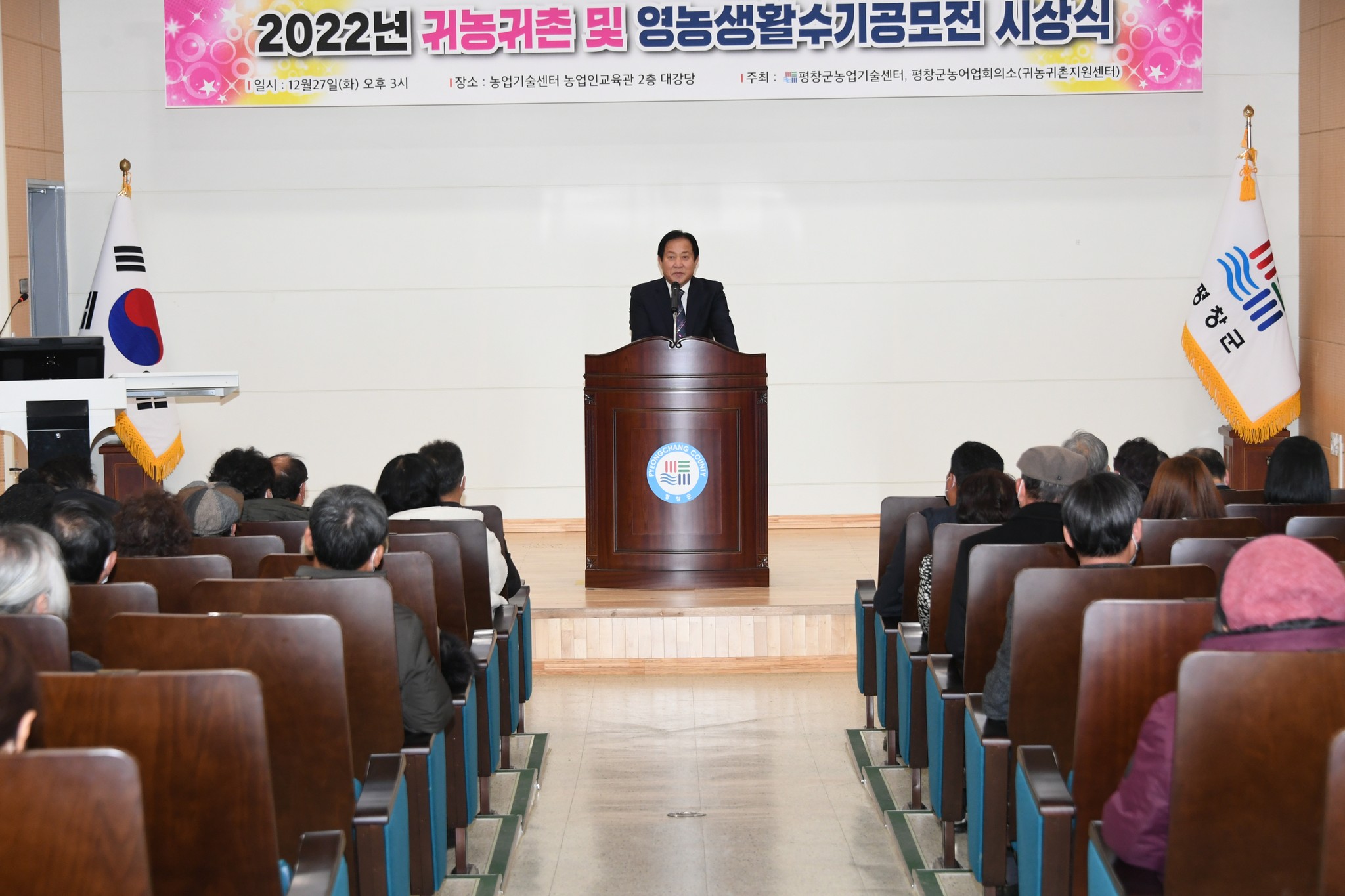 27일 2022년 평창군 귀농귀촌 및 영농생활 수기공모전 시상식이 평창군 농업인교육관 2층 대강당에서 심재국 평창군수를 비롯한 전영록 평창군 농어업회의소 회장 및 의원과 귀농귀촌인 60여 명이 참석한 가운데 있었다. (평창포토뉴스 김춘호)