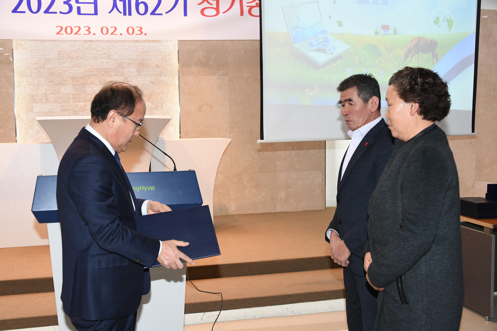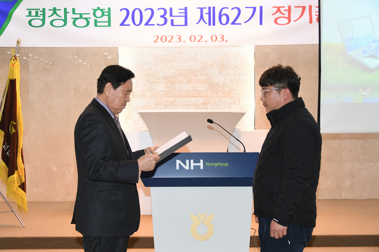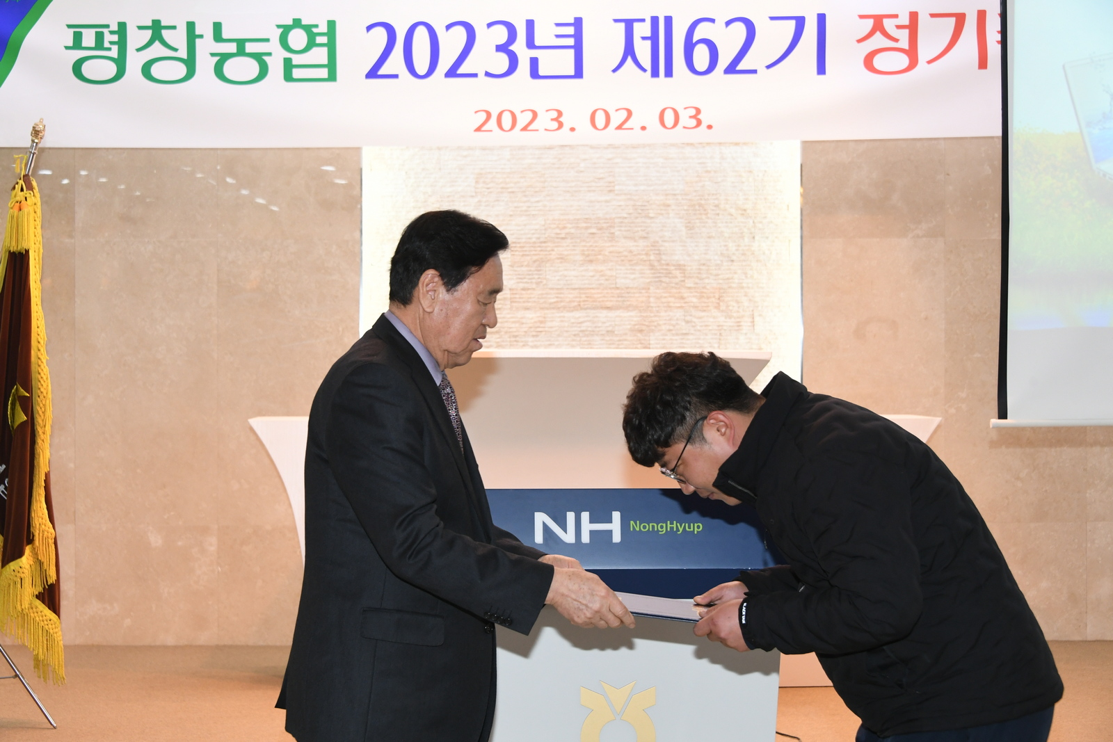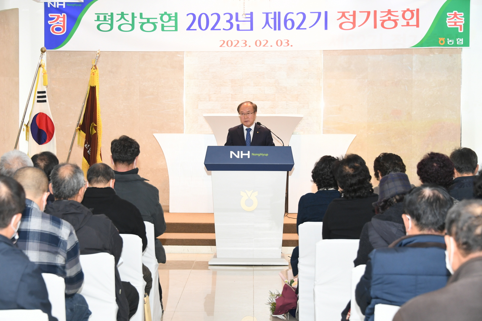 3일 평창농협 2023년 제62기 정기총회가 평창농협 대회의실에서 지광천 도의원, 최창순 NH농협평창군지부장 등 사회단체장과 정연택 평창농협조합장과 조합원 130여 명이 참석한 가운데 있었다. (평창포토뉴스 김춘호)