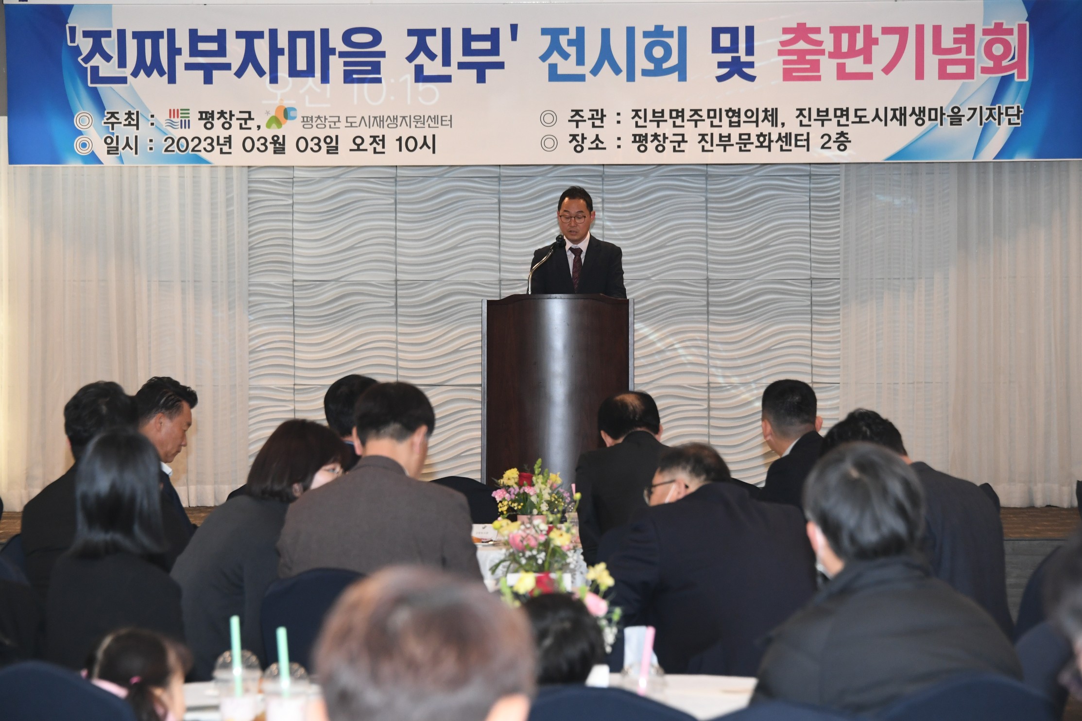 3일 진부면 문화센터 2층에서 진부면 도시재생예비사업 일환으로 추진 중인, 도시재생 마을기자단 9명의 활동 내용으로 제작한 마을 소식지 ‘진짜 부자 마을 진부’의 출판기념회가 심재국 평창군수를 비롯한 김광성 남진삼 군의원, 최종수 도의원 등 내빈과 마을 주민들이 참석한 가운데 있었다. (평창포토뉴스 김춘호)