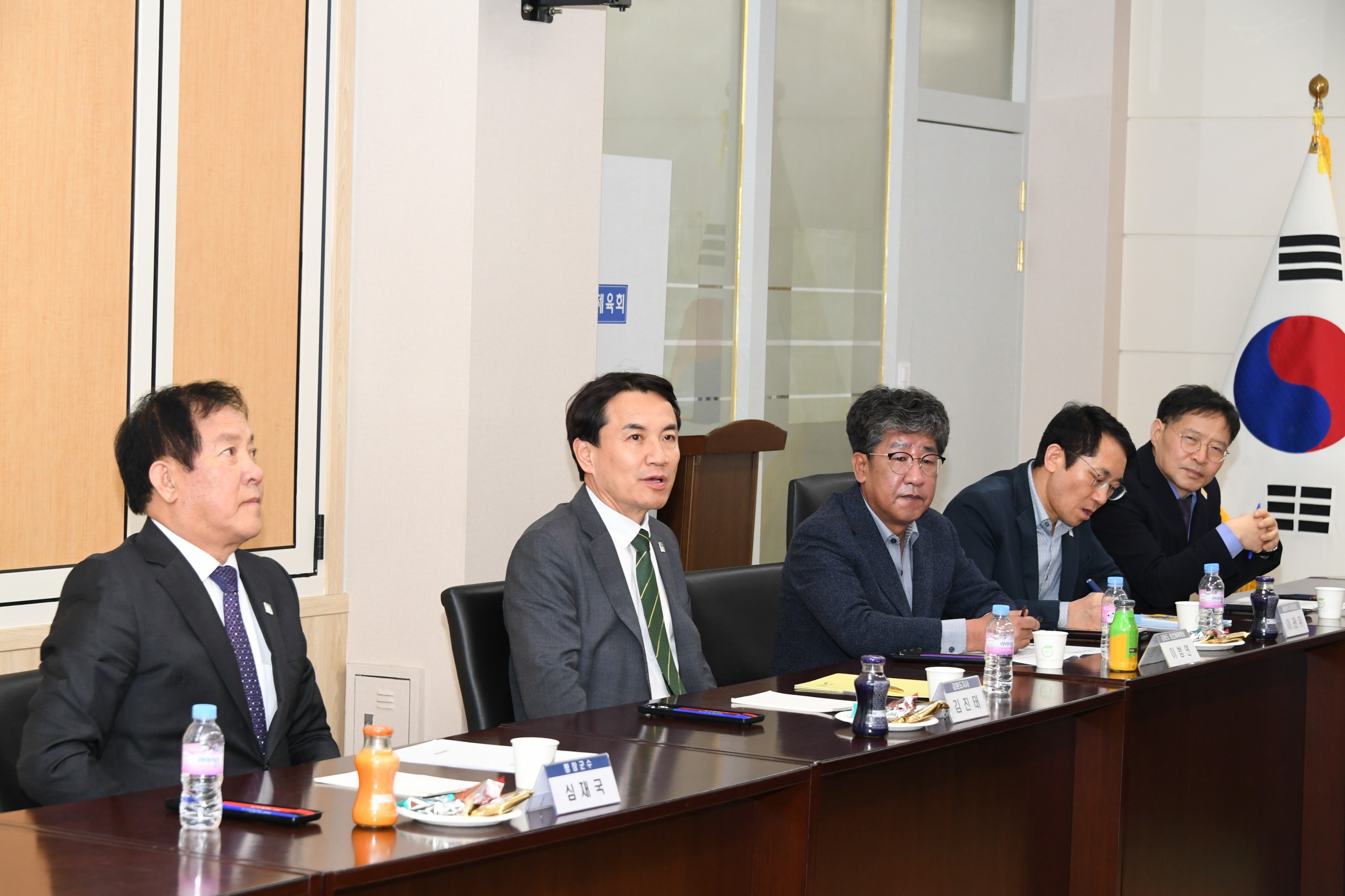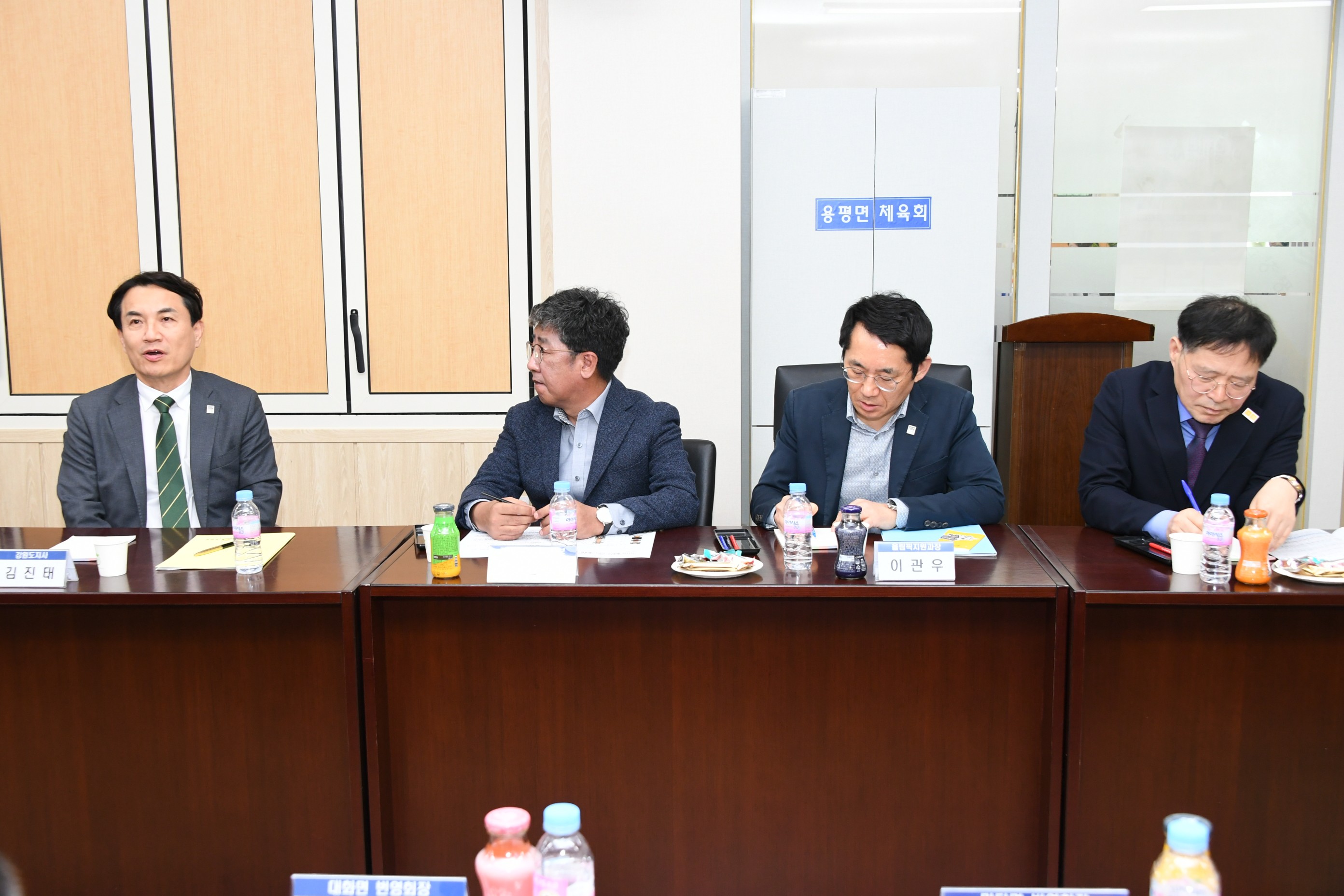 27일 김진태 강원도지사는 용평면사무소에서 심재국 평창군수를 비롯한 이창영 평창군번영회장 권한대행과 6개 면번영회장, 조혜경 평창군여성단체협의회장 등 평창군사회단체 대표를 만나 2024강원동계청소년올림픽 대회 적극지원에 대한 감사와 성공개최의 다짐을 나눴다. (평창포토뉴스 김춘호)