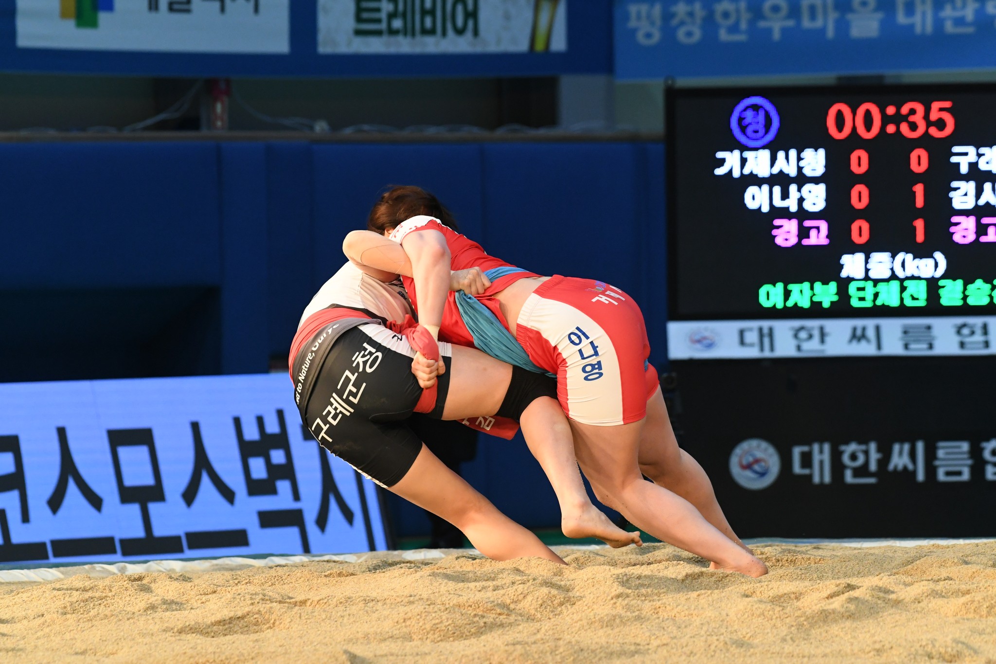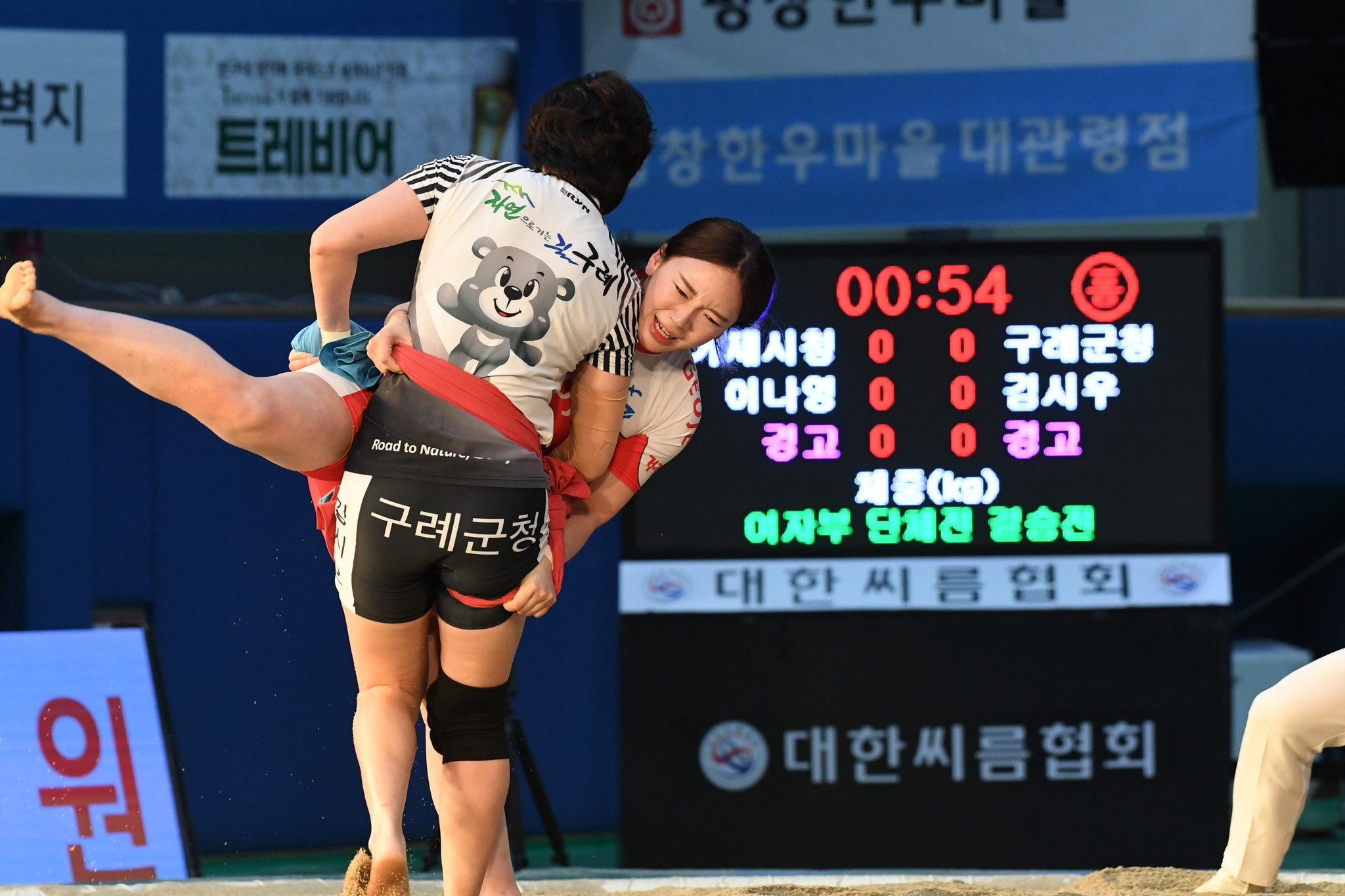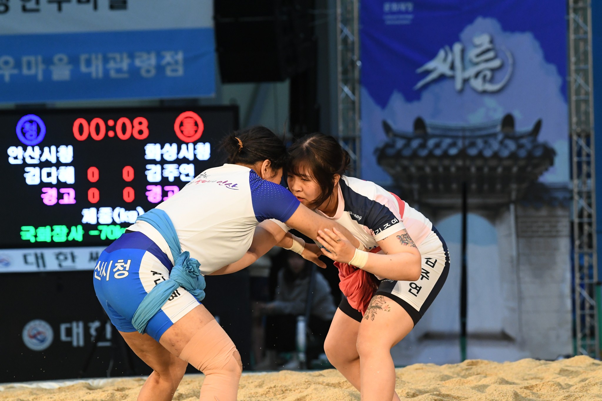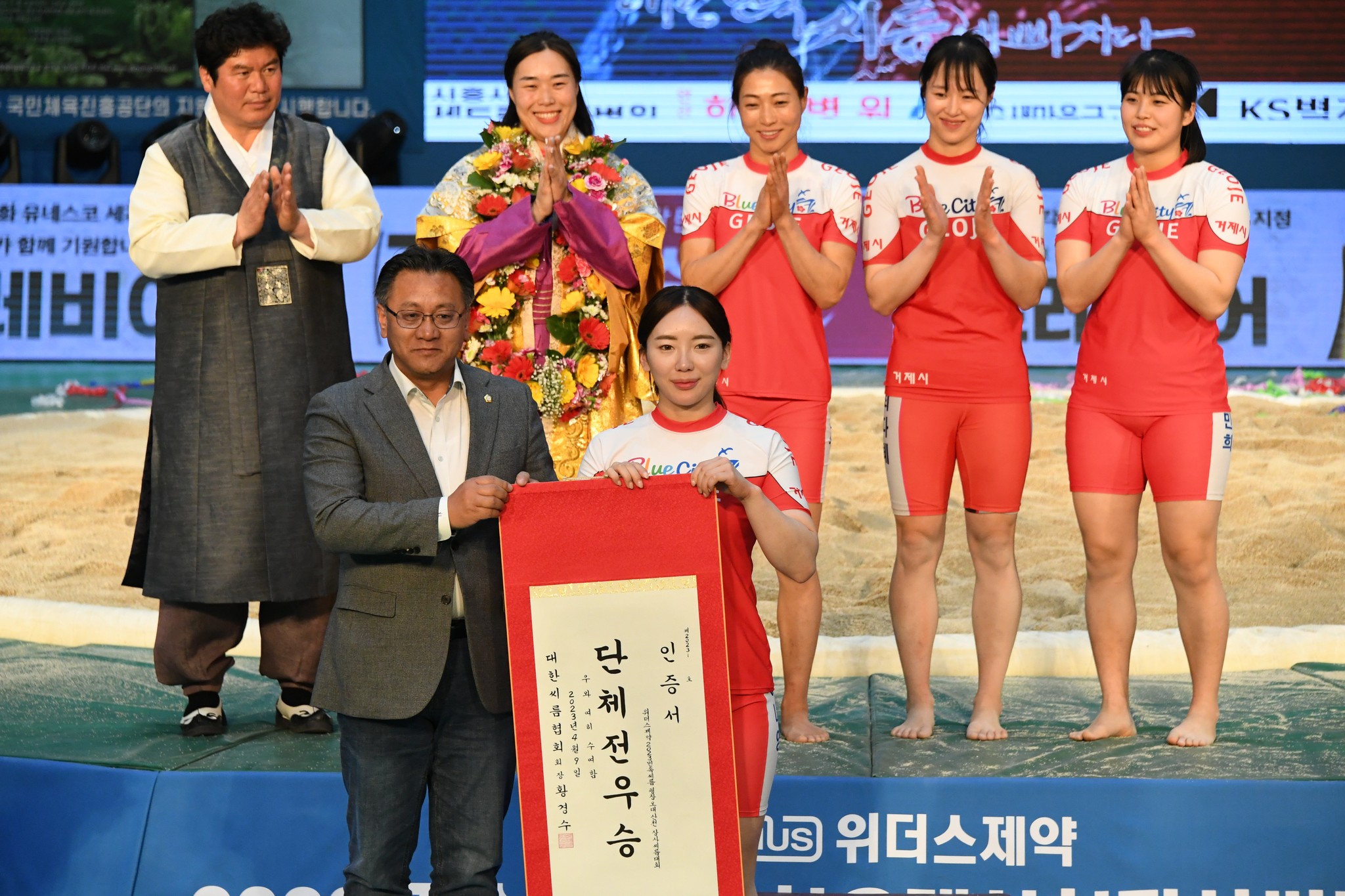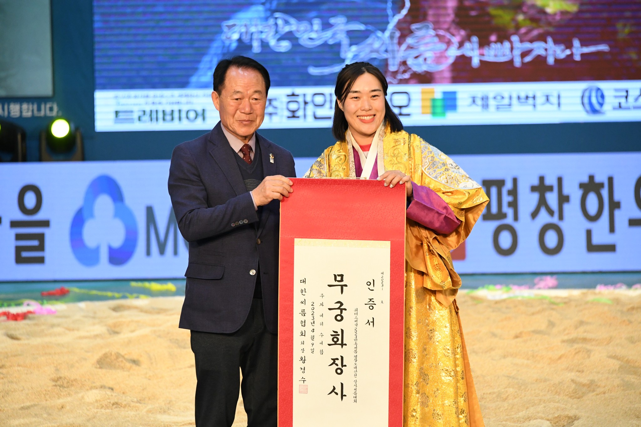 9일 저녁 위더스제약2023 민속씨름 평창오대산천천하장사 씨름대회 개회식 및 여자 단체전과 개인전 경기가 진부면 체육공원 특설실내씨름경기장에서 열린 가운데 여자단체전 우승에 거제시청이, 매화장사(60kg이하)에 이재하(안산시청) 선수가, 국화장사(70kg이하) 임수정(영동군청) 선수가, 무궁화장사(80kg이하)에 이다현(거제시청) 선수가 우승을 차지했다. (평창포토뉴스 김춘호)