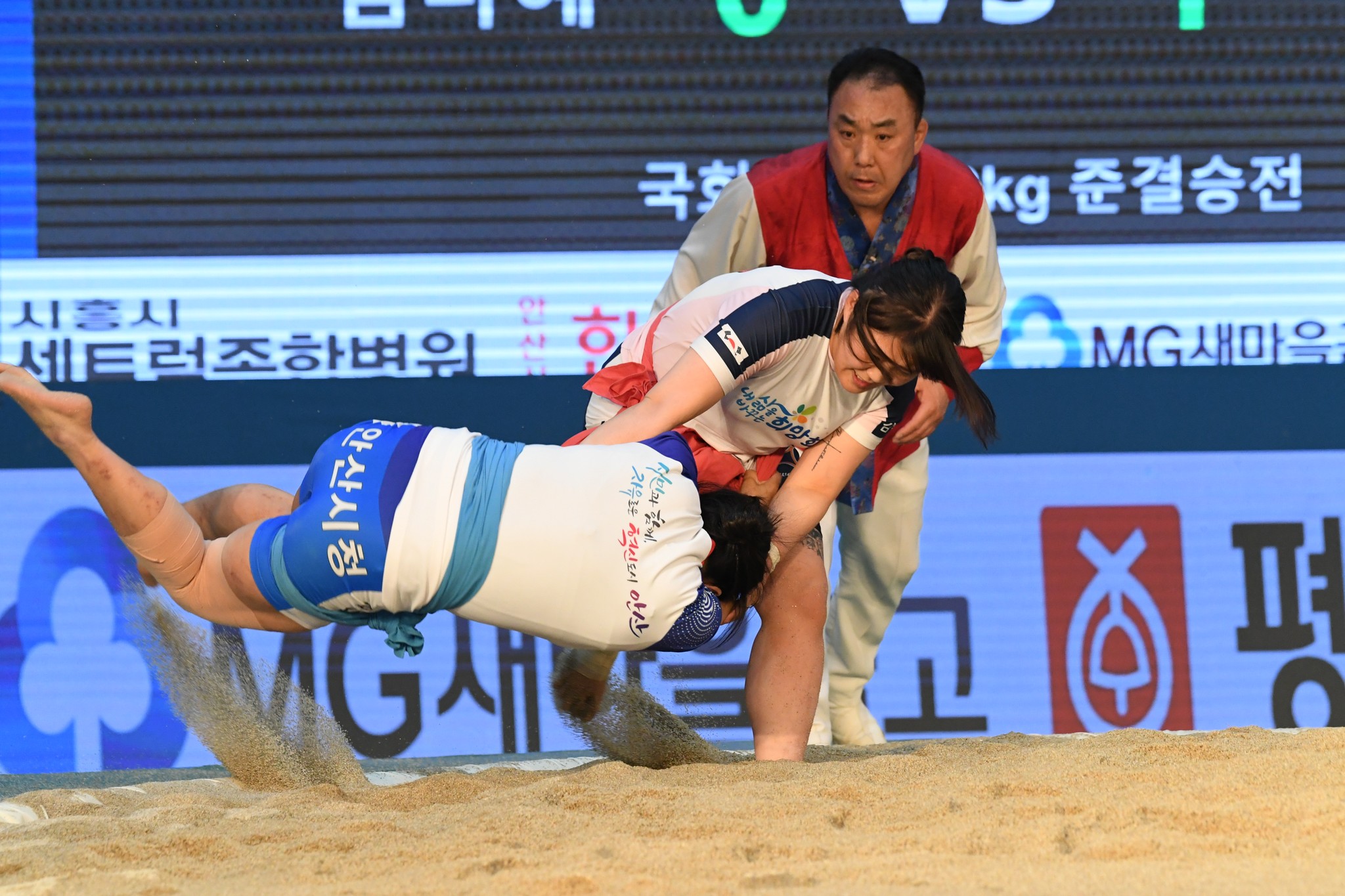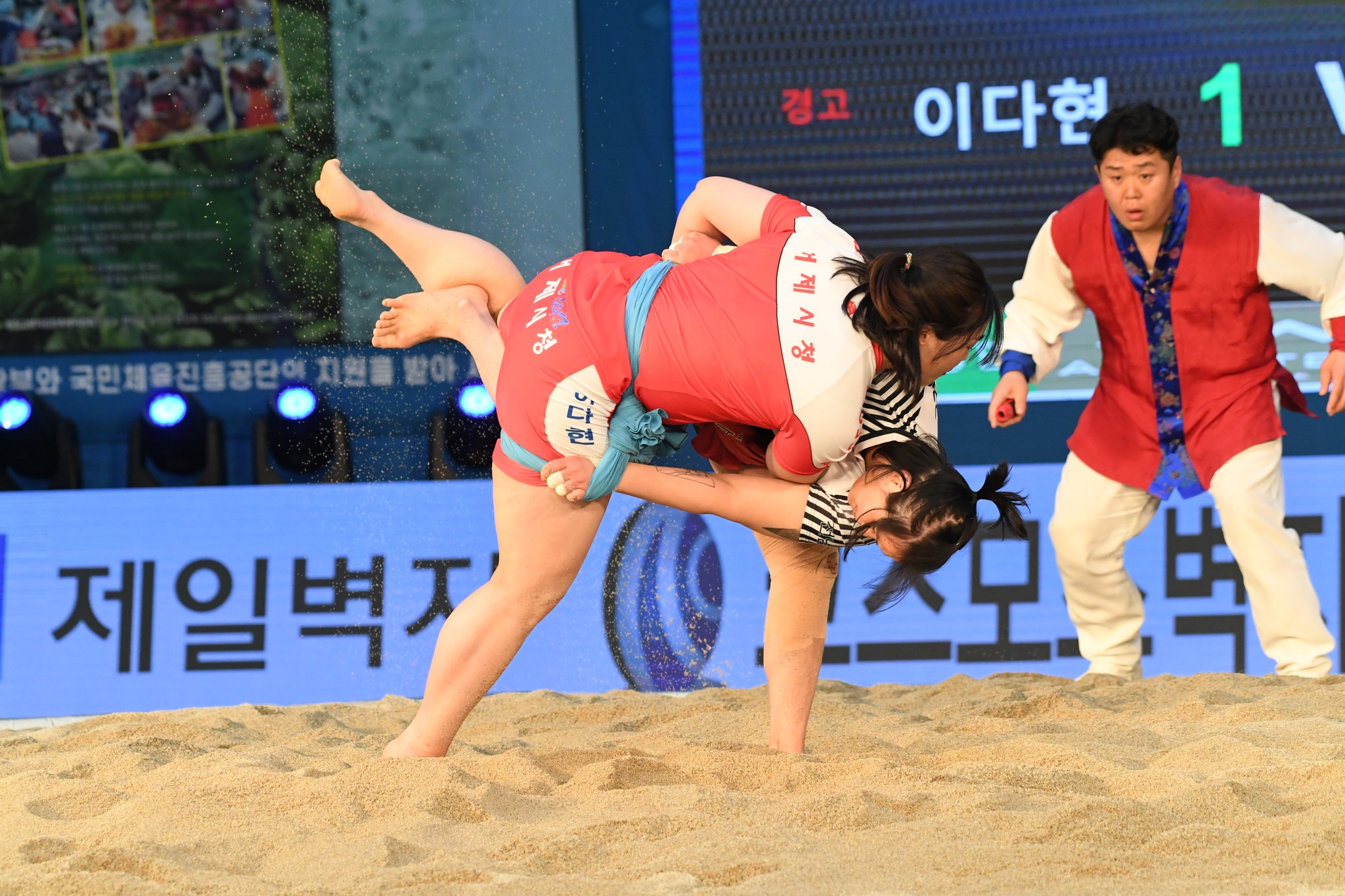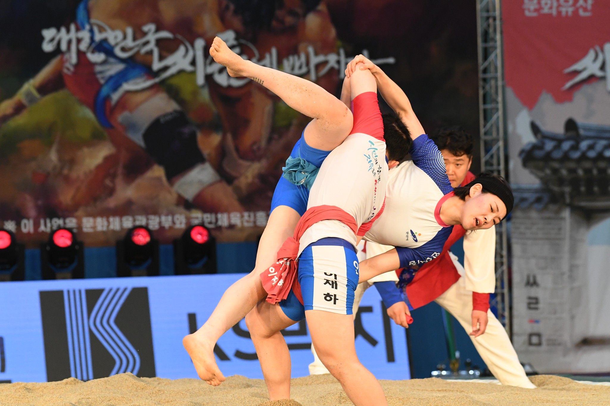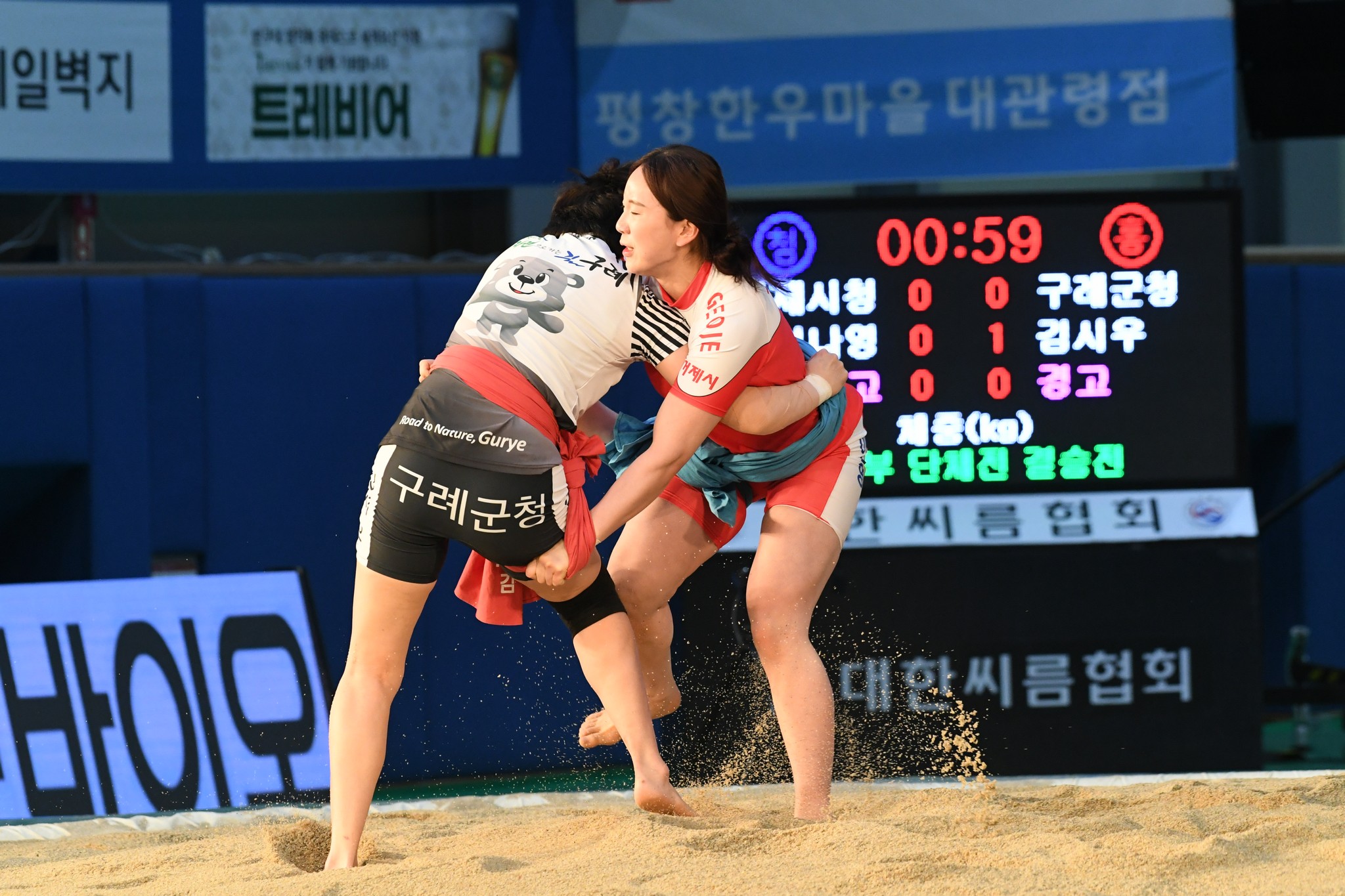 9일 저녁 위더스제약2023 민속씨름 평창오대산천천하장사 씨름대회 개회식 및 여자 단체전과 개인전 경기가 진부면 체육공원 특설실내씨름경기장에서 열린 가운데 여자단체전 우승에 거제시청이, 매화장사(60kg이하)에 이재하(안산시청) 선수가, 국화장사(70kg이하) 임수정(영동군청) 선수가, 무궁화장사(80kg이하)에 이다현(거제시청) 선수가 우승을 차지했다. (평창포토뉴스 김춘호)