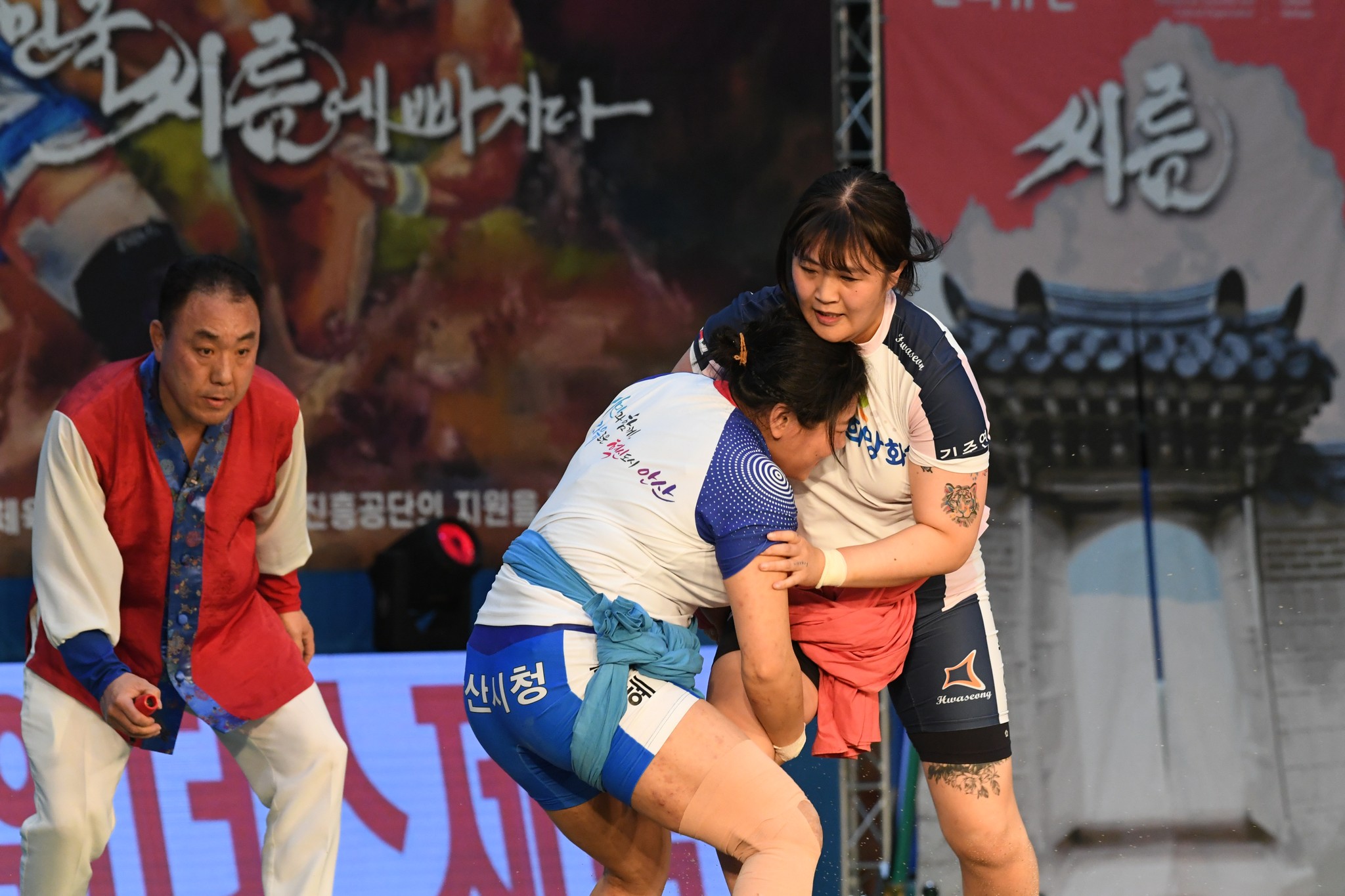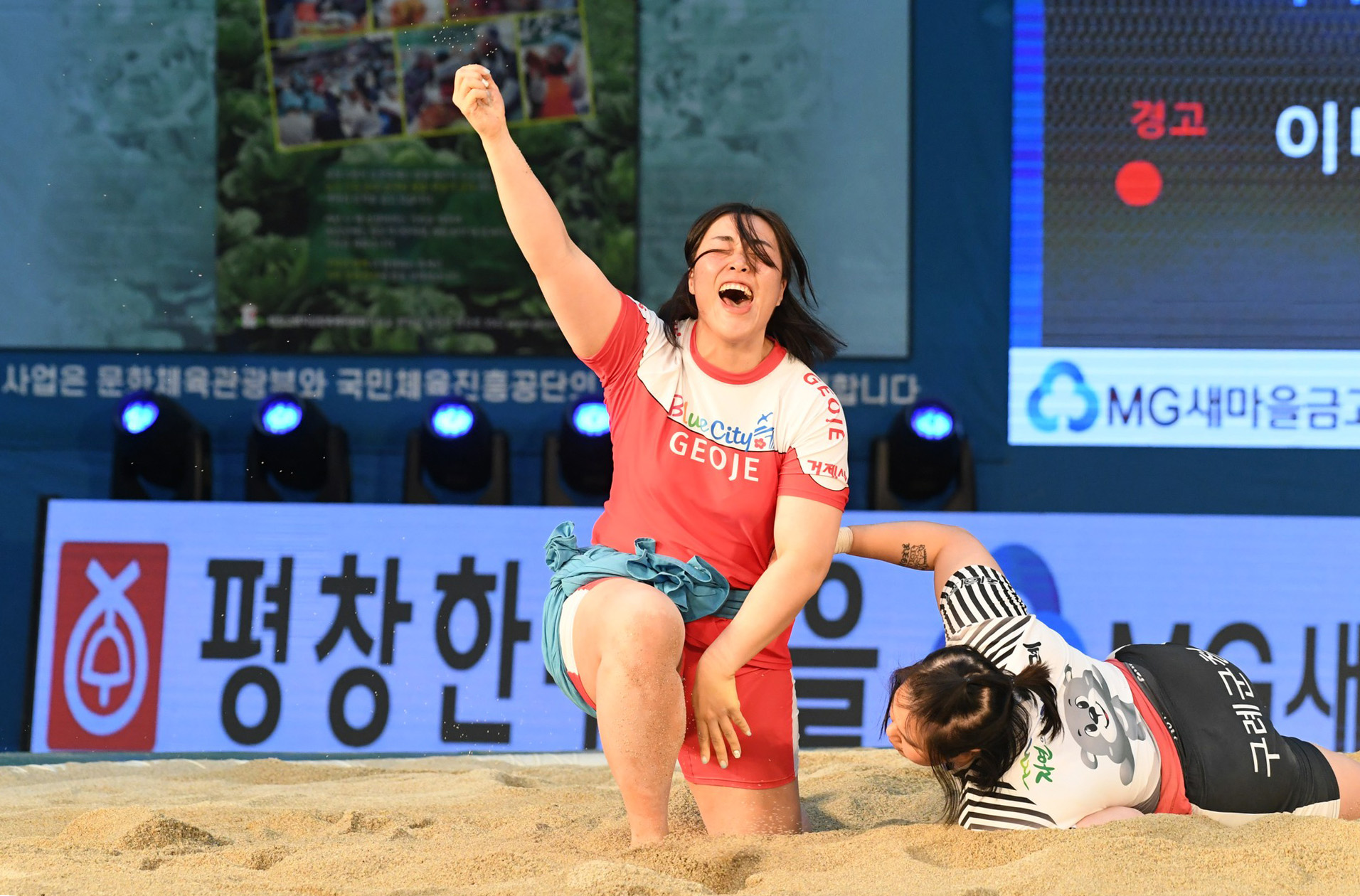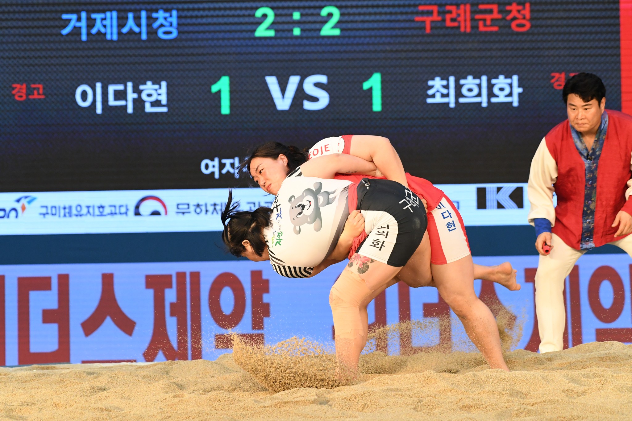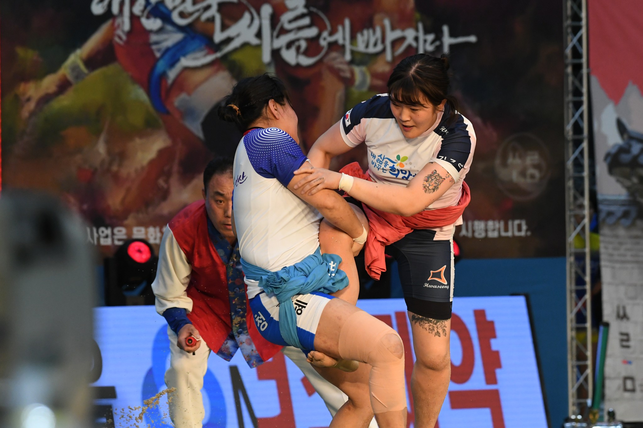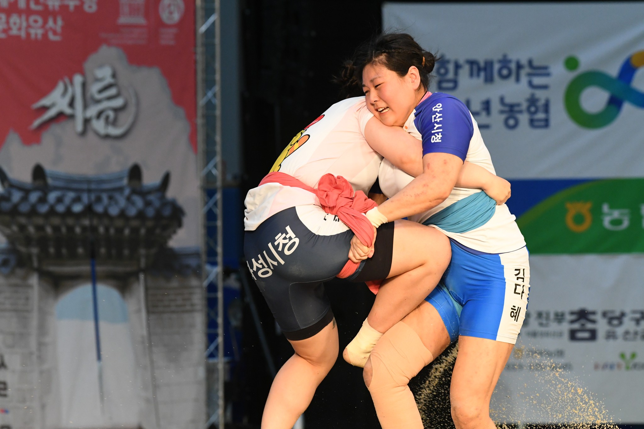9일 저녁 위더스제약2023 민속씨름 평창오대산천천하장사 씨름대회 개회식 및 여자 단체전과 개인전 경기가 진부면 체육공원 특설실내씨름경기장에서 열린 가운데 여자단체전 우승에 거제시청이, 매화장사(60kg이하)에 이재하(안산시청) 선수가, 국화장사(70kg이하) 임수정(영동군청) 선수가, 무궁화장사(80kg이하)에 이다현(거제시청) 선수가 우승을 차지했다. (평창포토뉴스 김춘호)