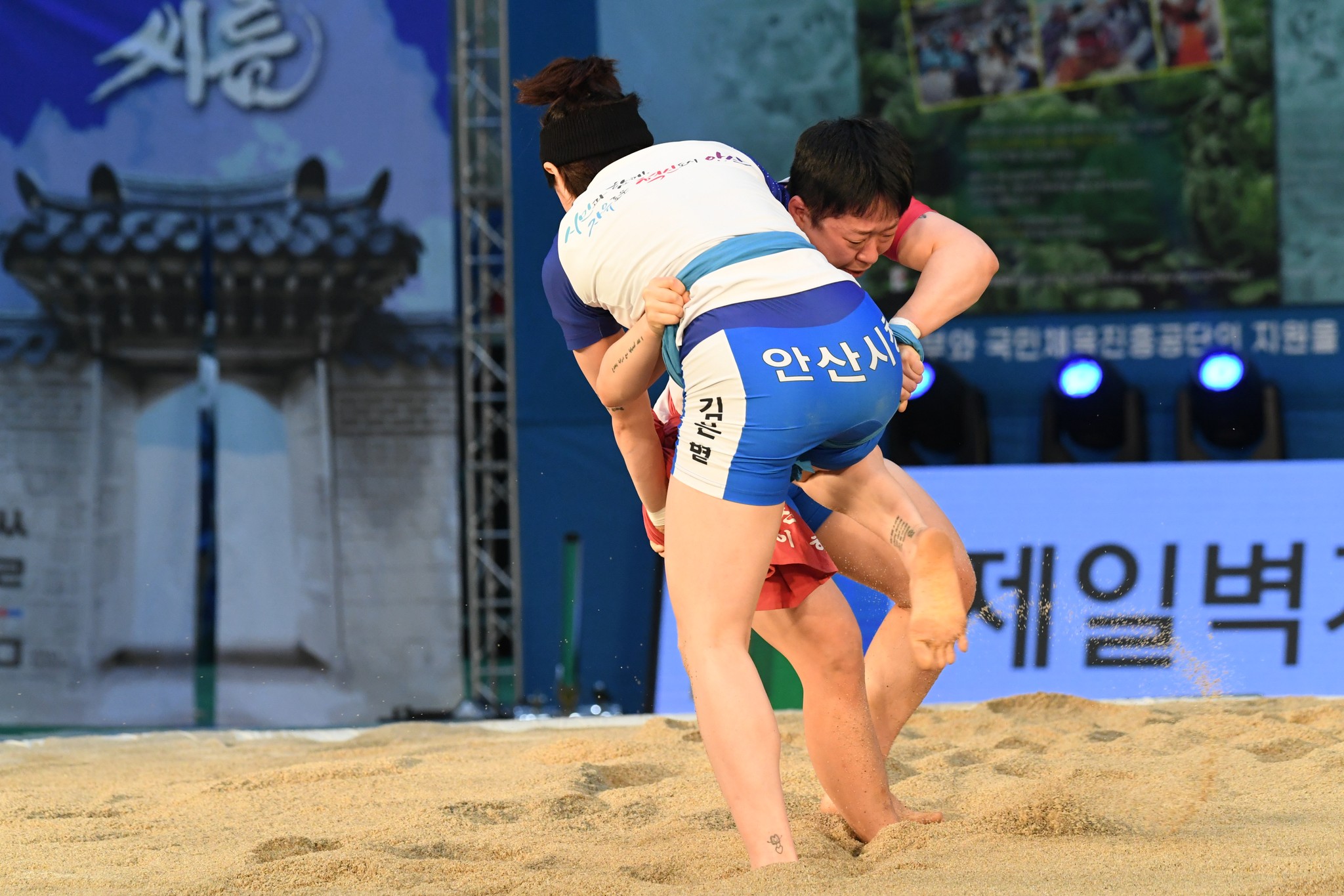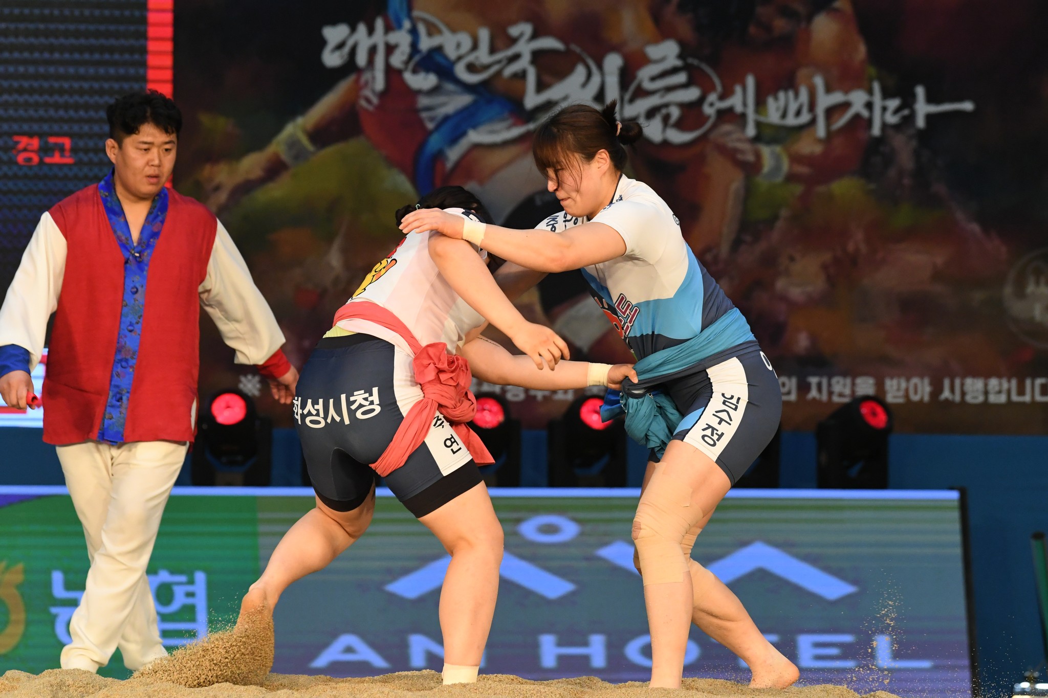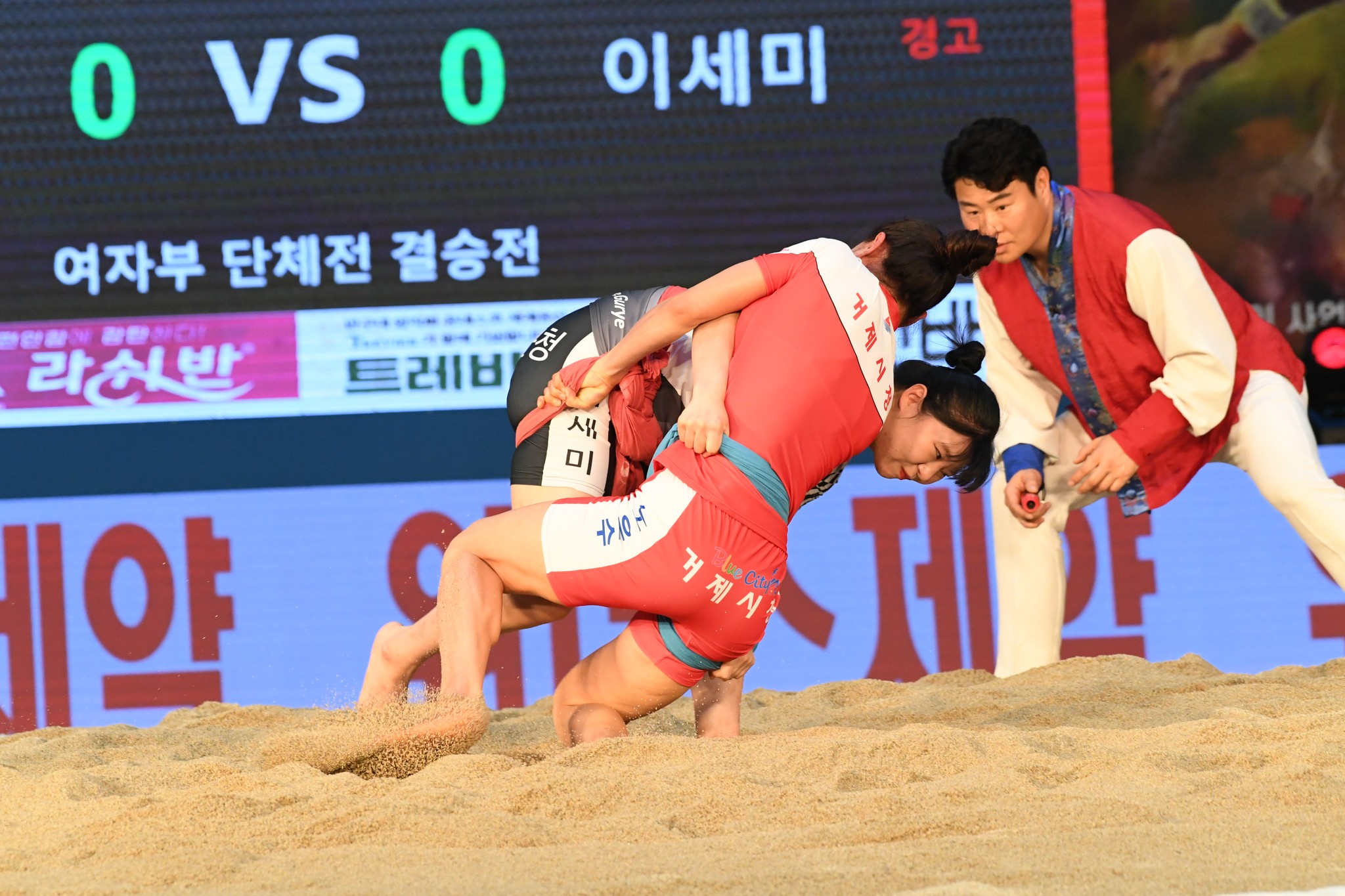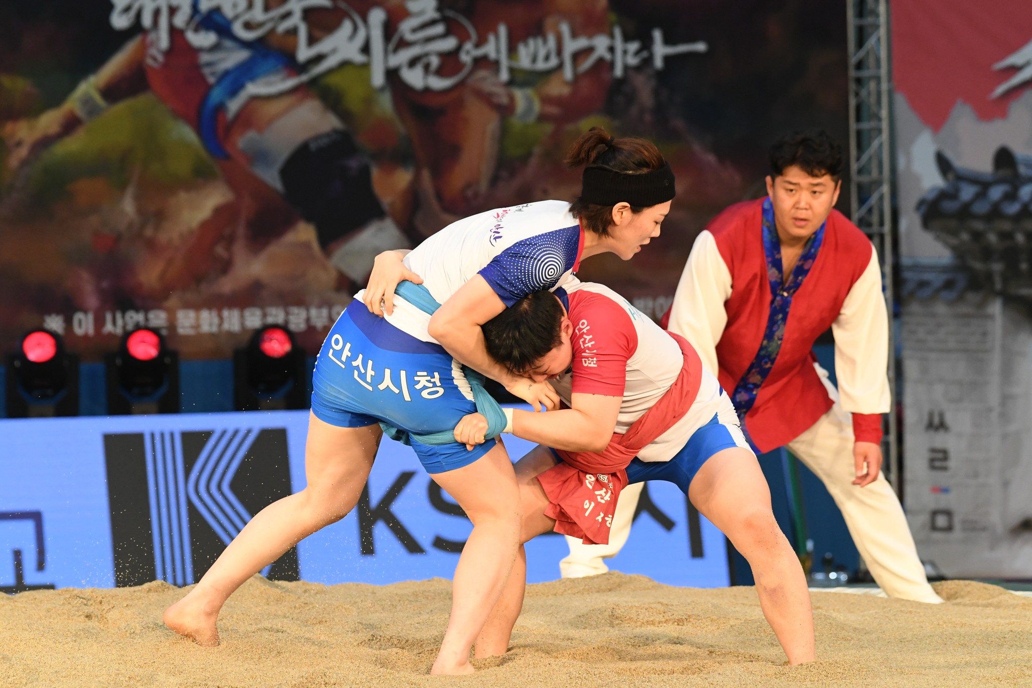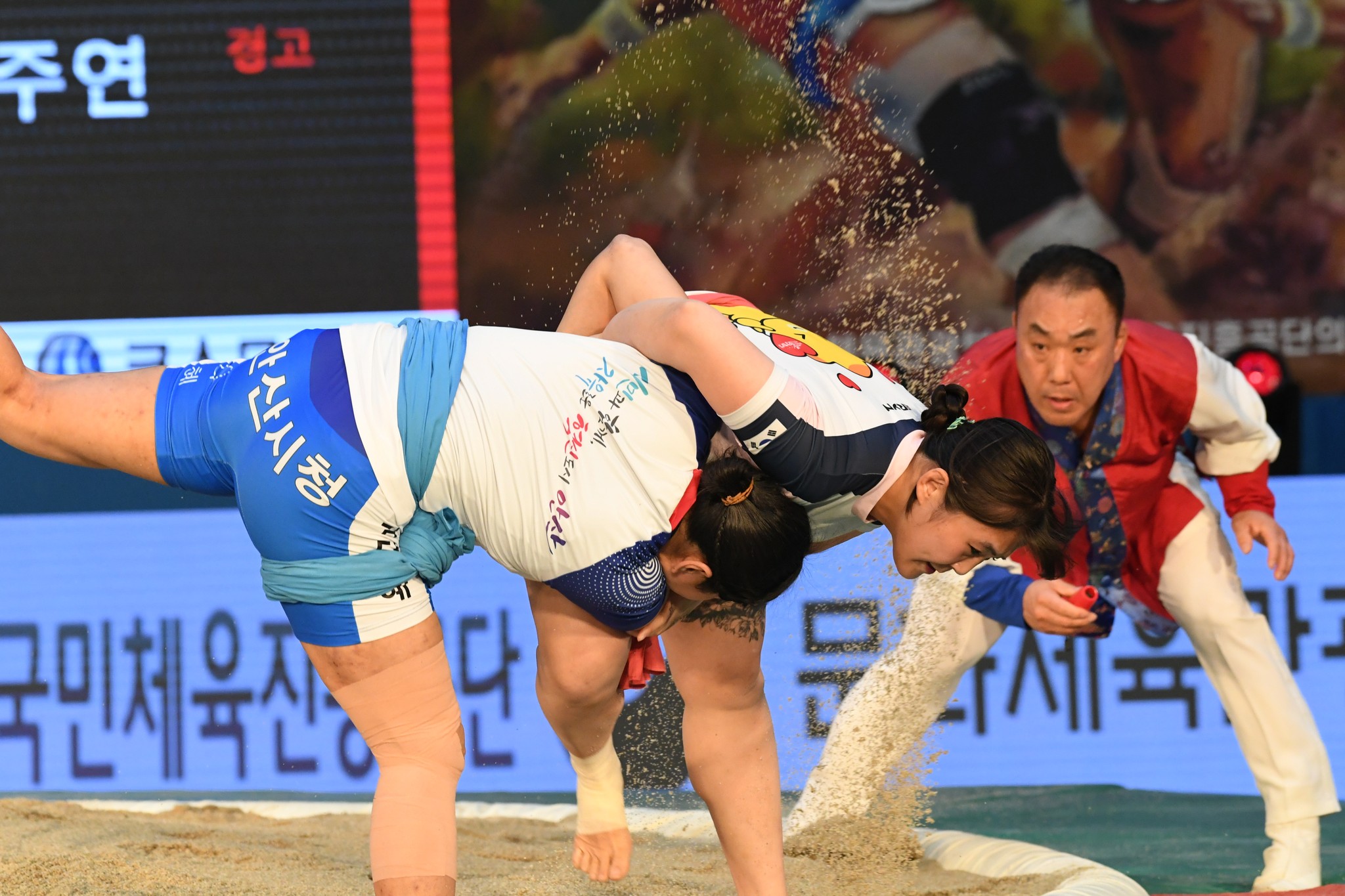 9일 저녁 위더스제약2023 민속씨름 평창오대산천천하장사 씨름대회 개회식 및 여자 단체전과 개인전 경기가 진부면 체육공원 특설실내씨름경기장에서 열린 가운데 여자단체전 우승에 거제시청이, 매화장사(60kg이하)에 이재하(안산시청) 선수가, 국화장사(70kg이하) 임수정(영동군청) 선수가, 무궁화장사(80kg이하)에 이다현(거제시청) 선수가 우승을 차지했다. (평창포토뉴스 김춘호)