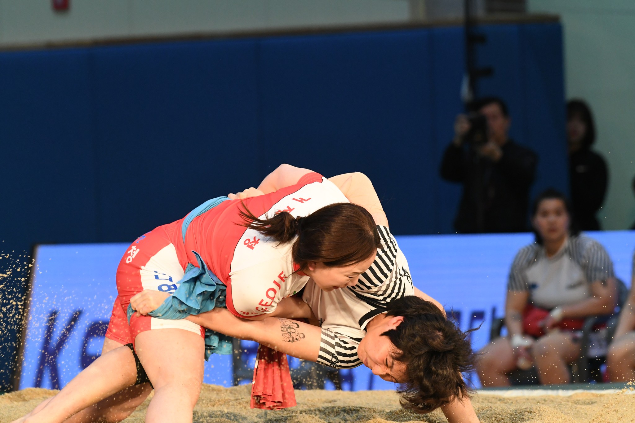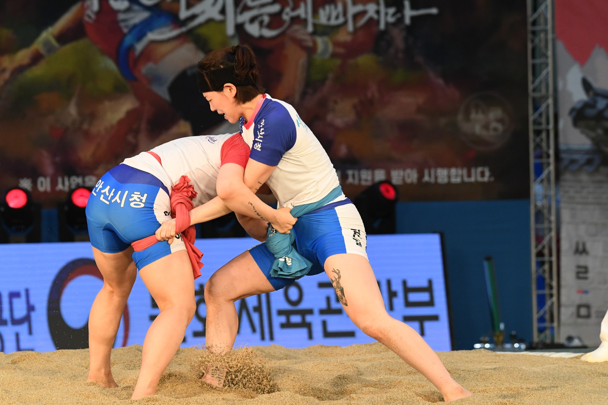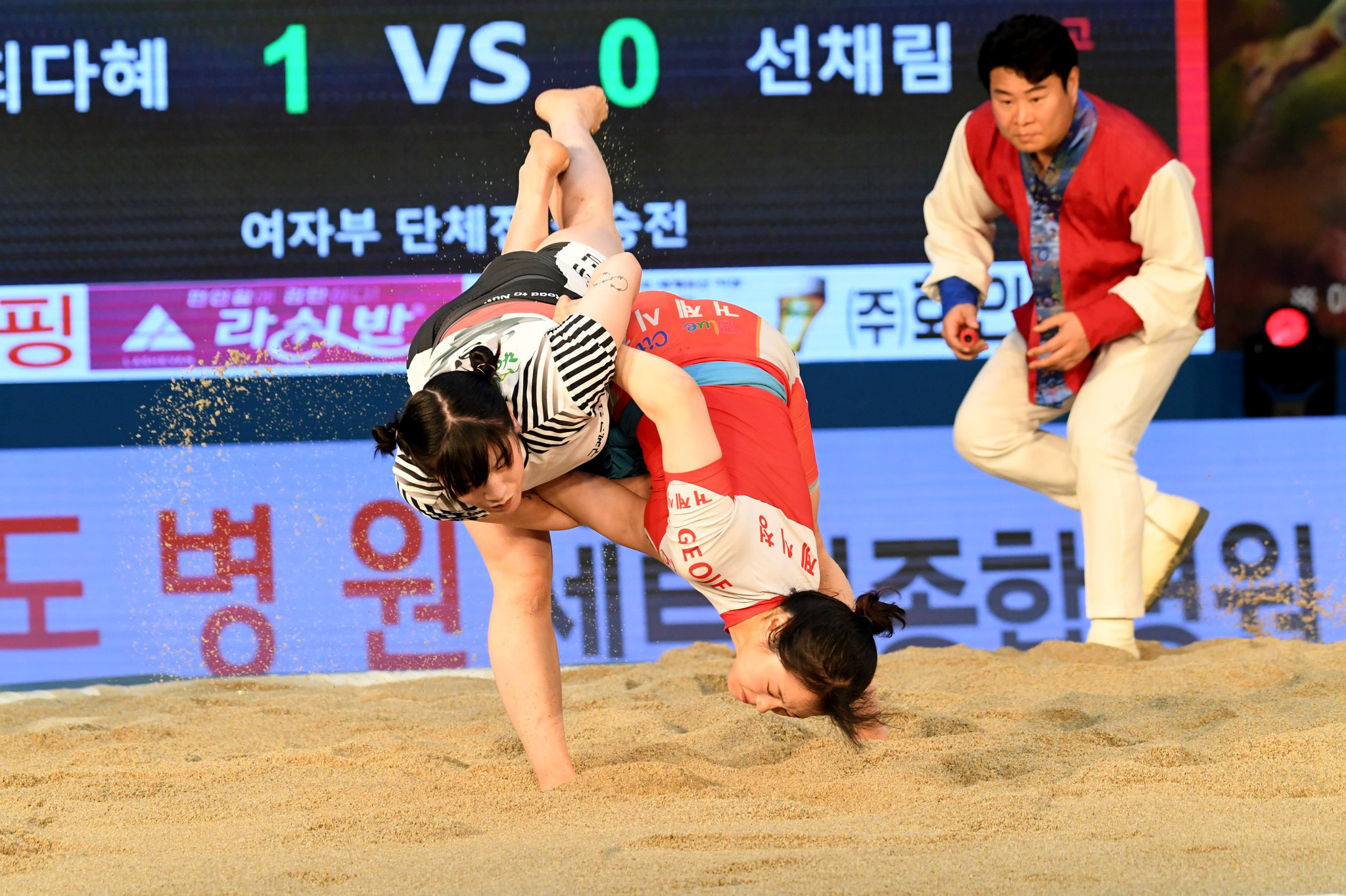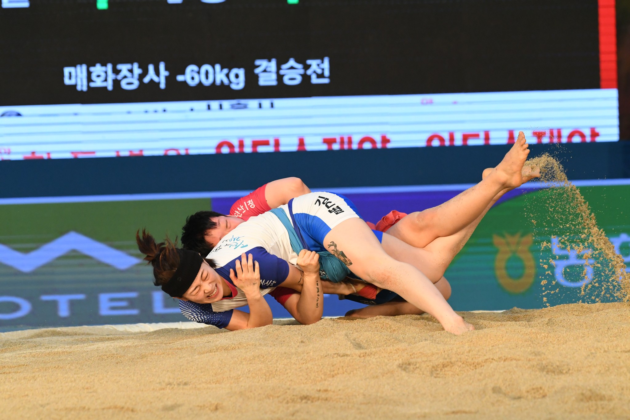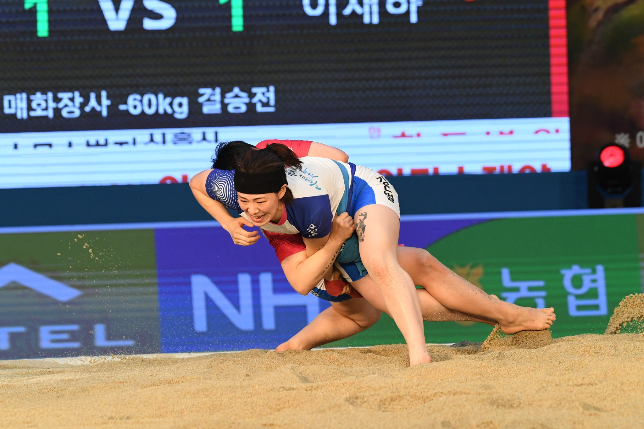 9일 저녁 위더스제약2023 민속씨름 평창오대산천천하장사 씨름대회 개회식 및 여자 단체전과 개인전 경기가 진부면 체육공원 특설실내씨름경기장에서 열린 가운데 여자단체전 우승에 거제시청이, 매화장사(60kg이하)에 이재하(안산시청) 선수가, 국화장사(70kg이하) 임수정(영동군청) 선수가, 무궁화장사(80kg이하)에 이다현(거제시청) 선수가 우승을 차지했다. (평창포토뉴스 김춘호)