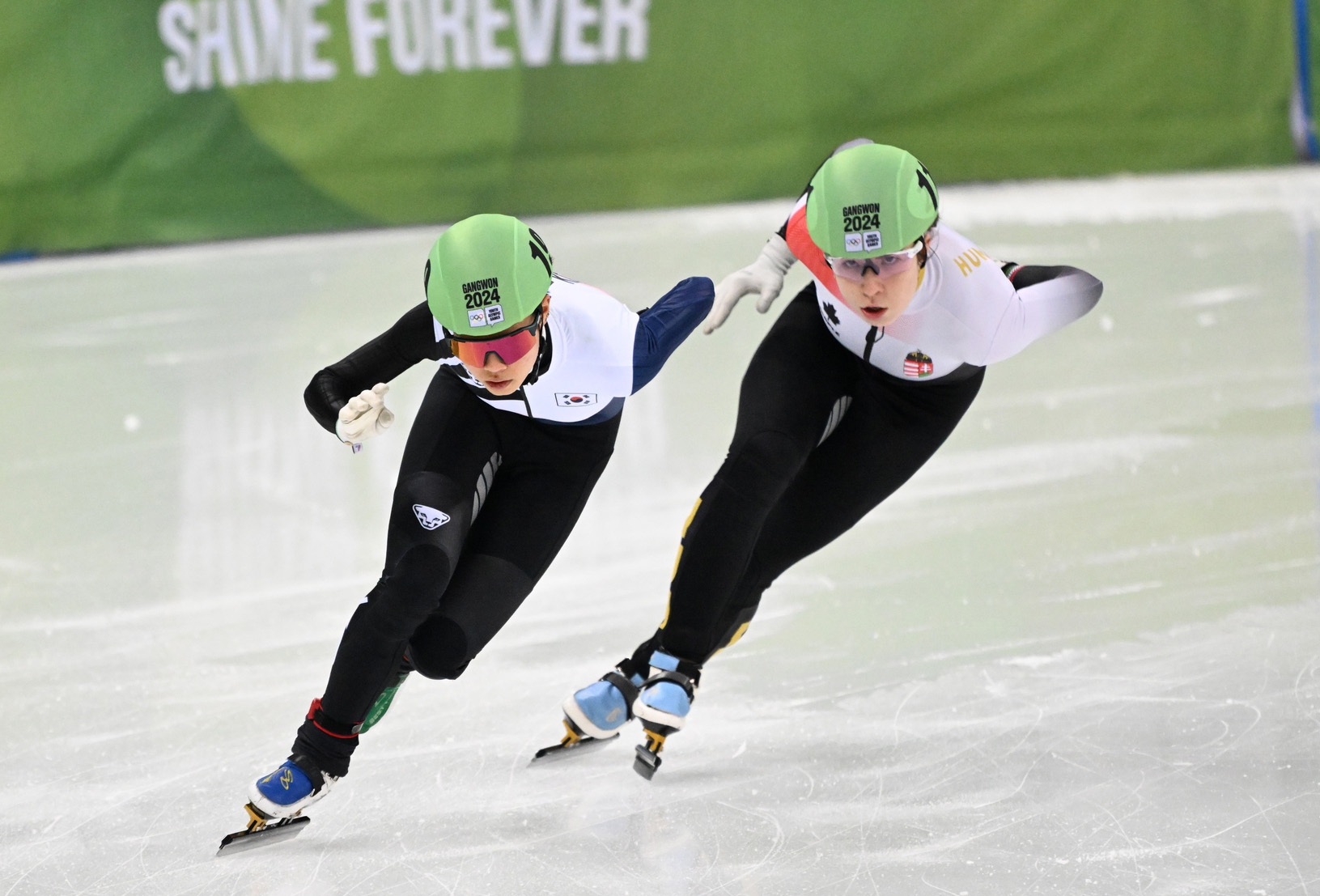22일 강릉 강릉 아이스 아레나에서 열린 2024 강원 동계청소년올림픽 쇼트트랙 스피드스케이팅 여자 500m 결승에서 은메달과 동메달을 추가했다. 강민지(인천동양중)가 44초484의 기록으로 2위에 올랐고, 정재희(한강중)는 45초018의 기록으로 동메달을 따냈다. (평창포토뉴스 김춘호)