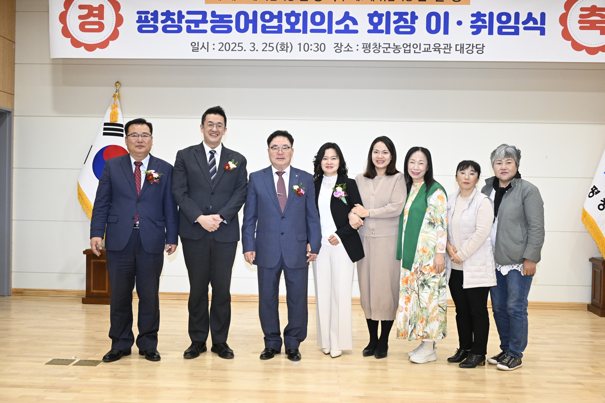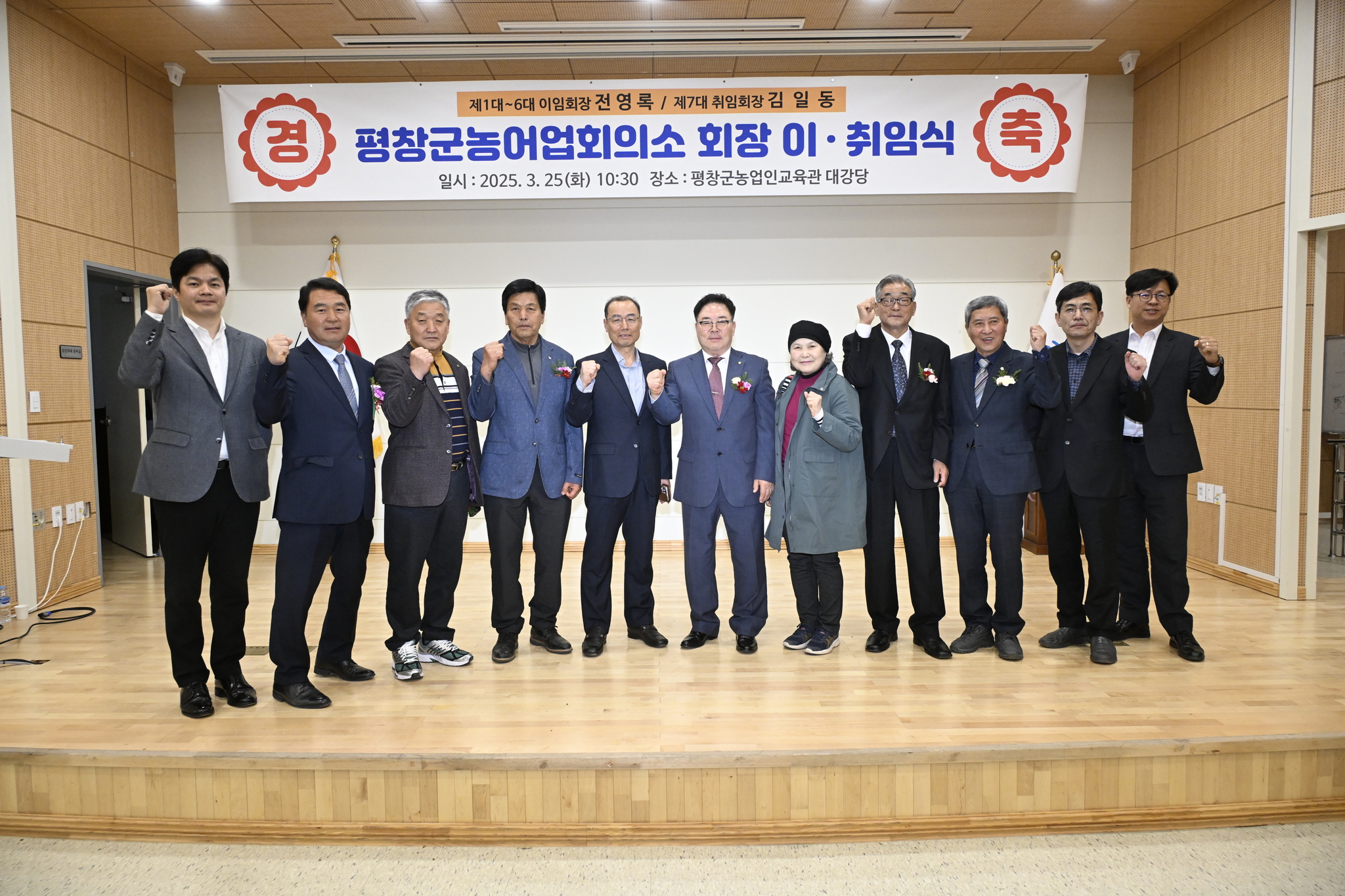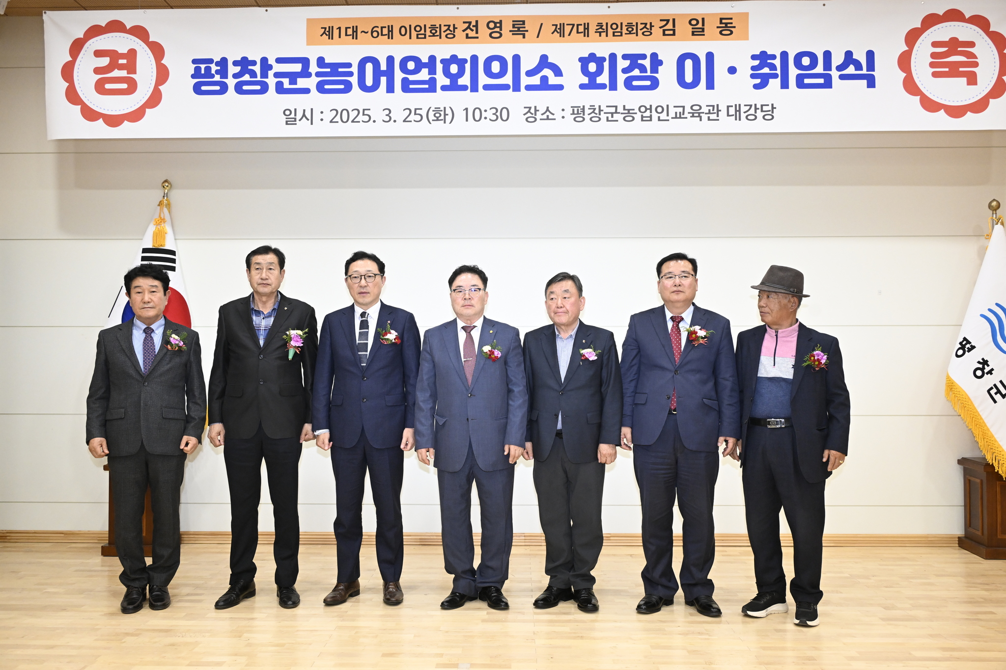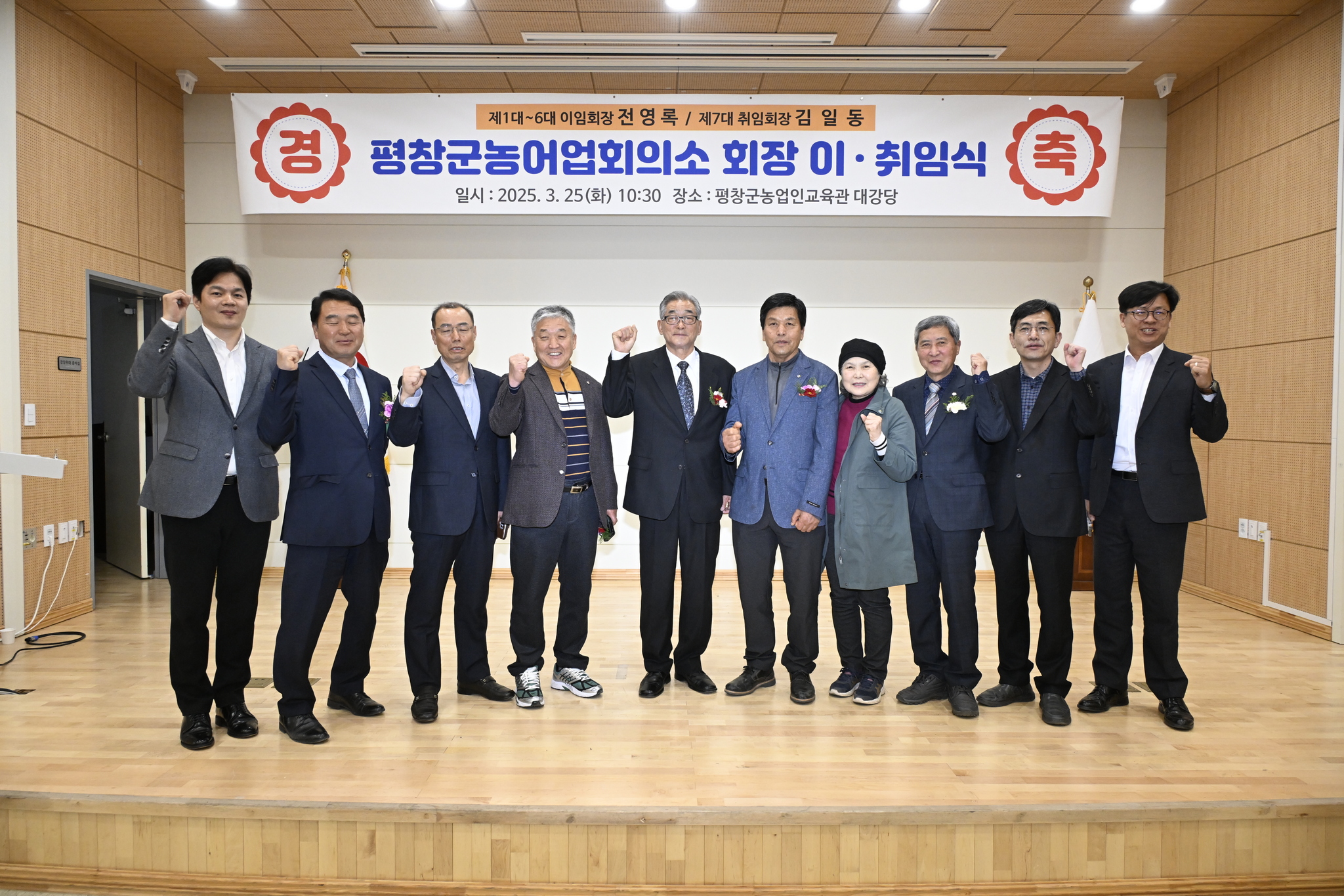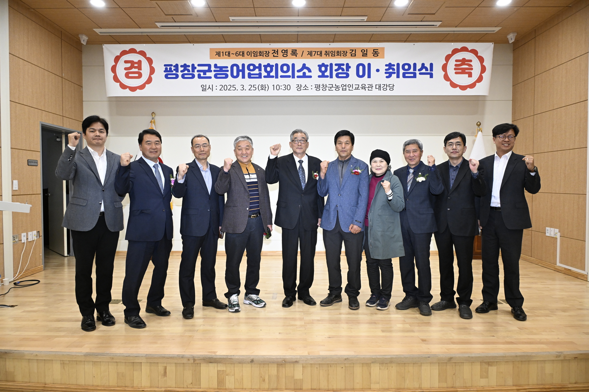 25일 평창군농어업회의소 회장 이·취임식(이임: 전영록 취임: 김일동)이 평창농업기술센터 농업인교육관 대강당(2층)에서 심재국 평창군수를 비롯한 남진삼 평창군의회의원과 의원, 최종수 지광천 강원특별자치도의회의원 등 기관사회단체장과 김제열 농어업회의소전국회의 회장을 비롯한 농어업회의소 관계자 100여 명이 참석한 가운데 있었다. (평창포토뉴스 김춘호)