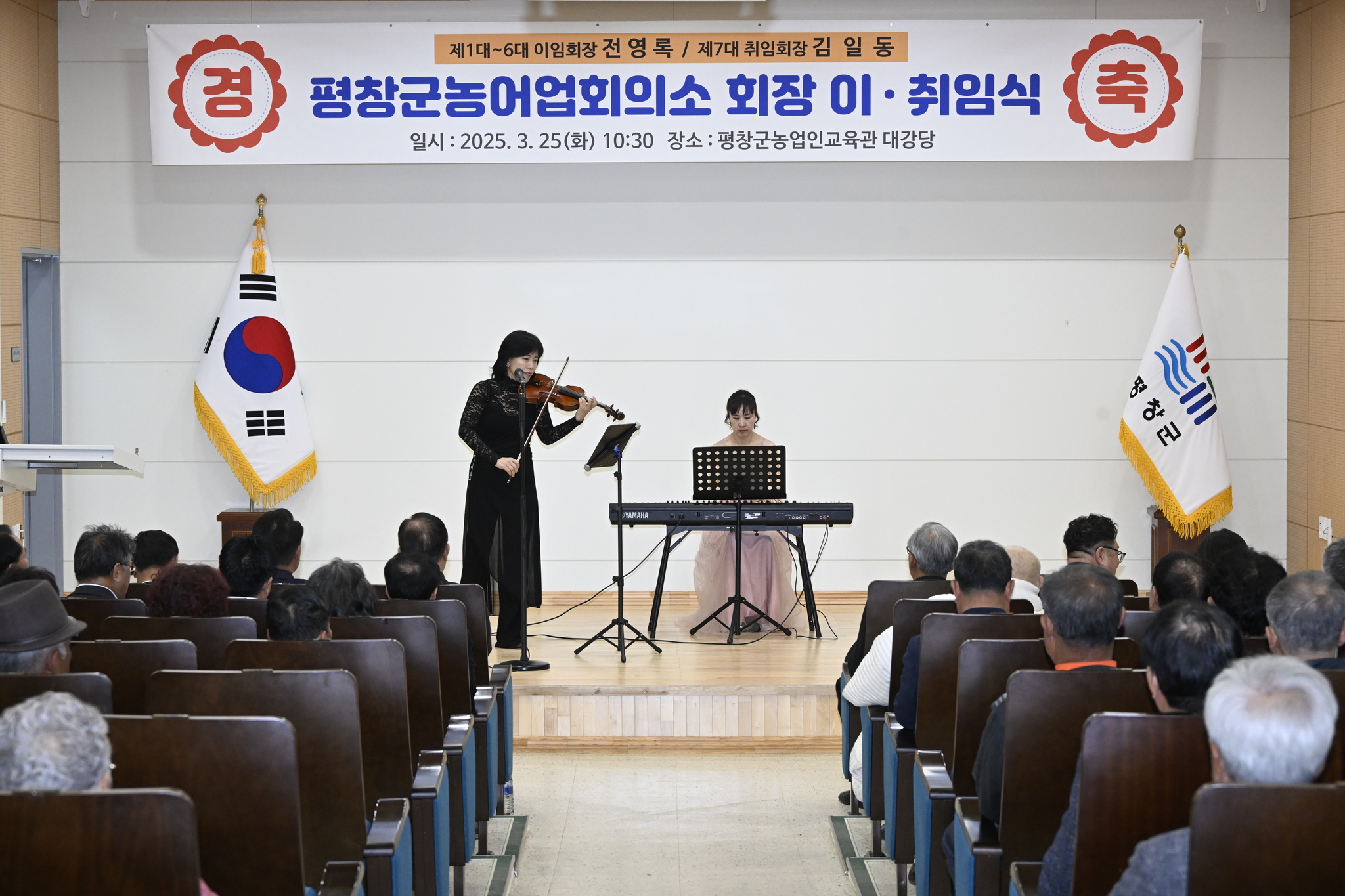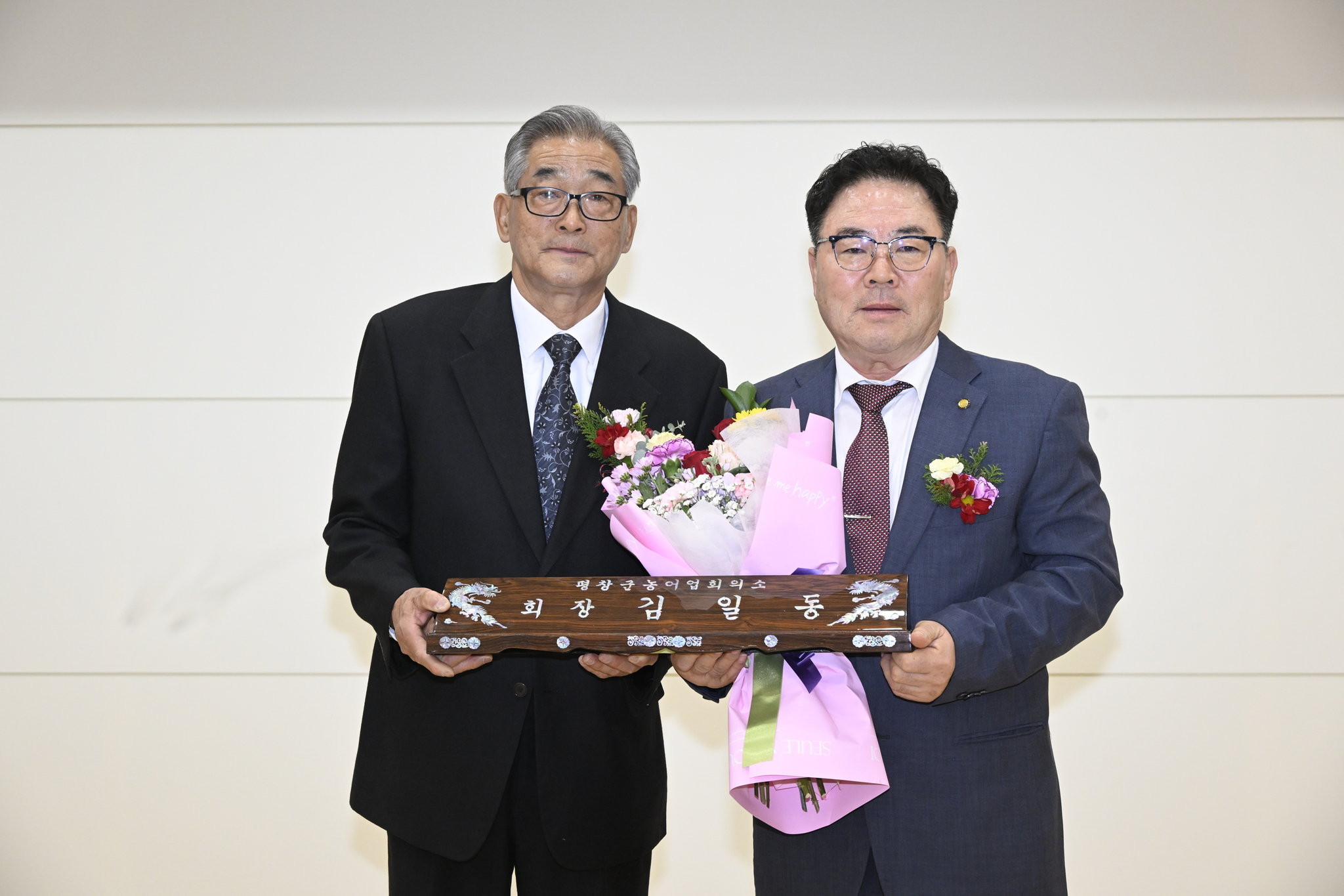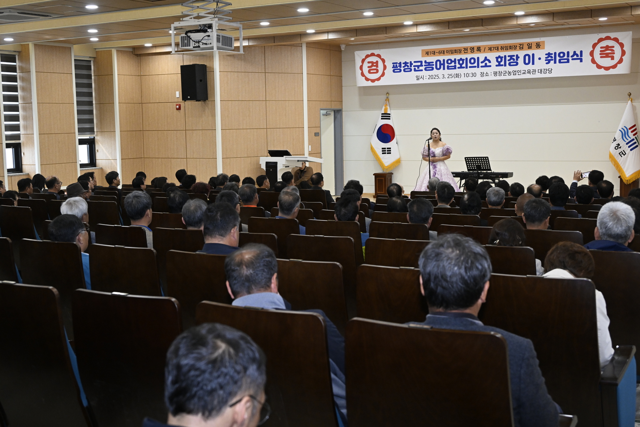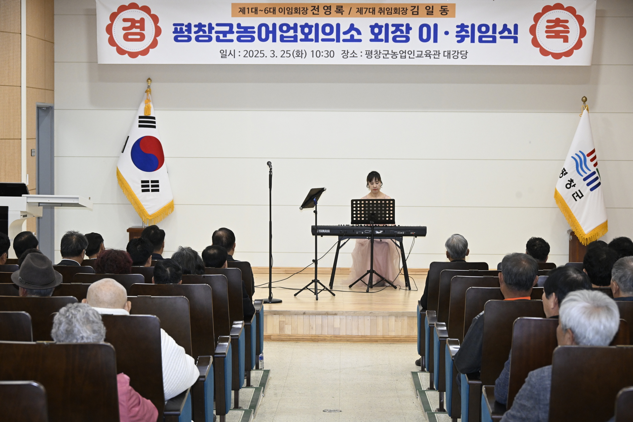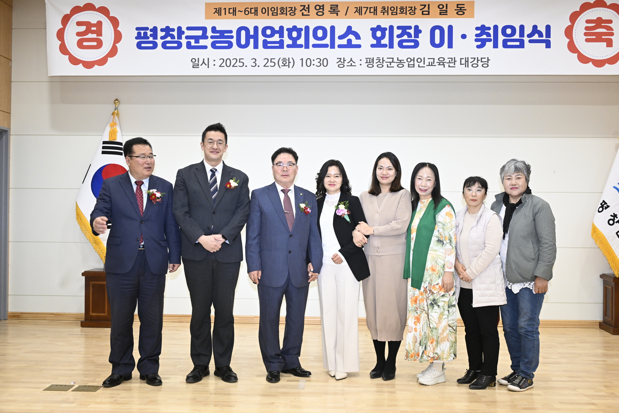 25일 평창군농어업회의소 회장 이·취임식(이임: 전영록 취임: 김일동)이 평창농업기술센터 농업인교육관 대강당(2층)에서 심재국 평창군수를 비롯한 남진삼 평창군의회의원과 의원, 최종수 지광천 강원특별자치도의회의원 등 기관사회단체장과 김제열 농어업회의소전국회의 회장을 비롯한 농어업회의소 관계자 100여 명이 참석한 가운데 있었다. (평창포토뉴스 김춘호)