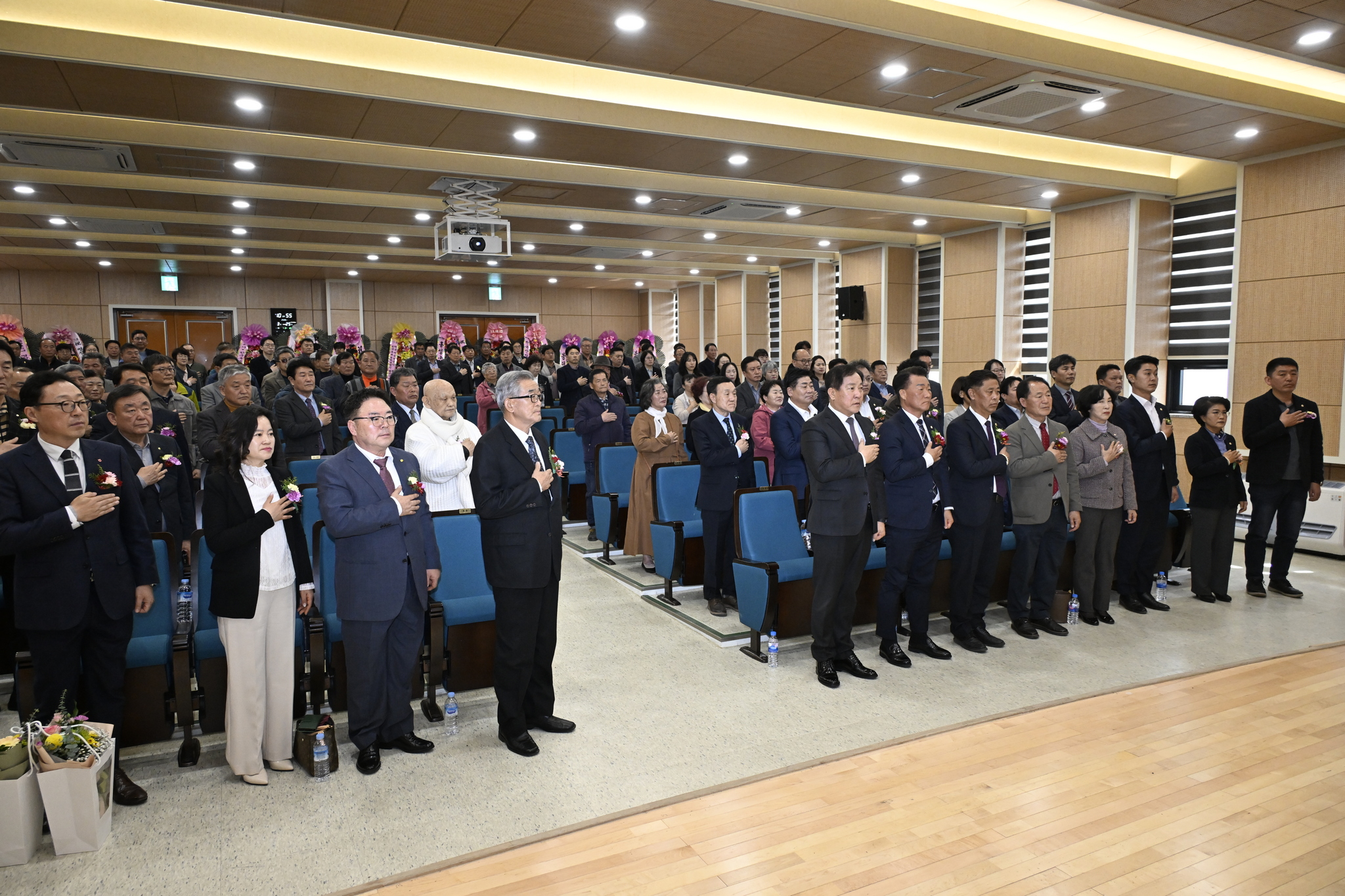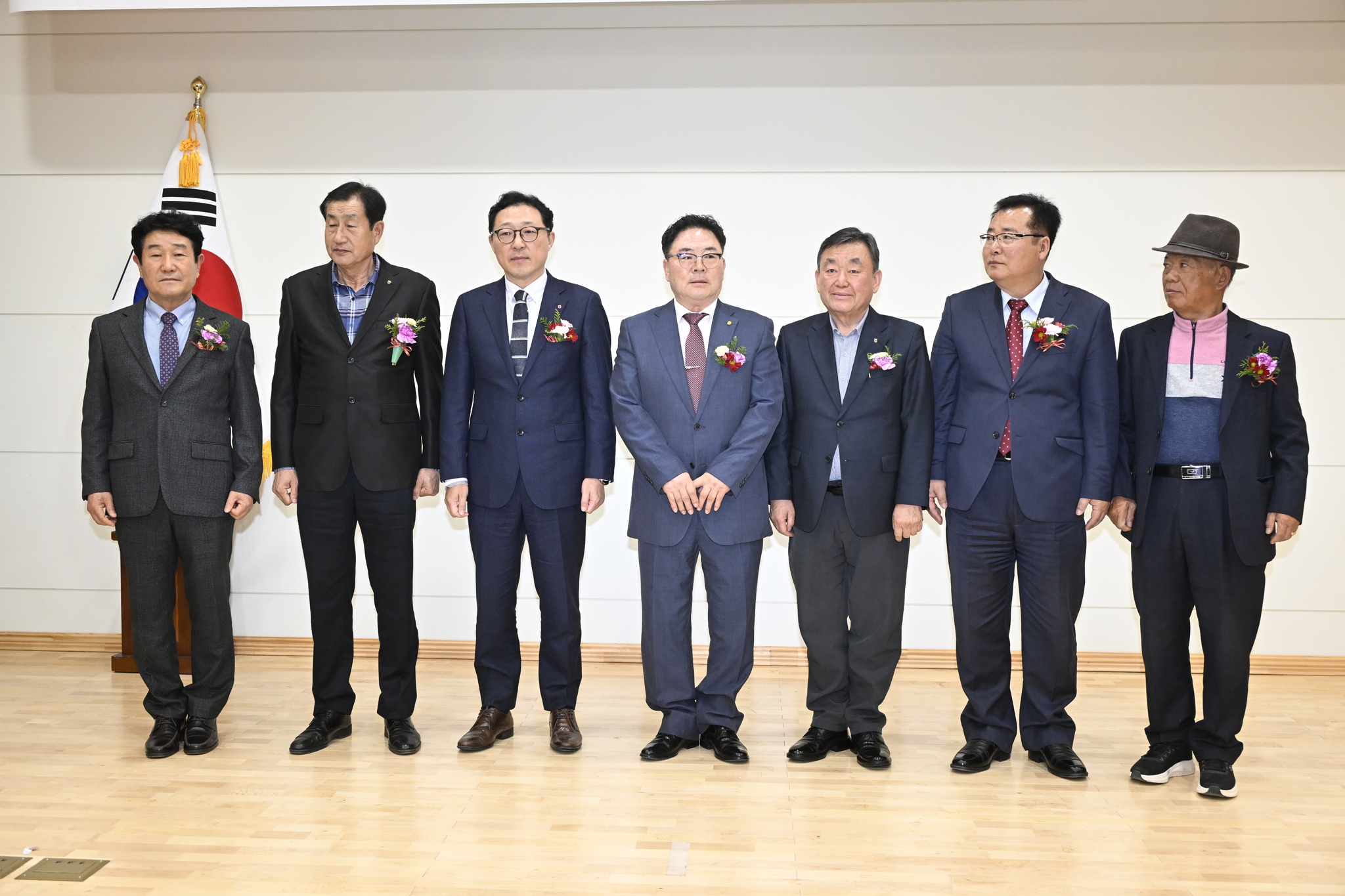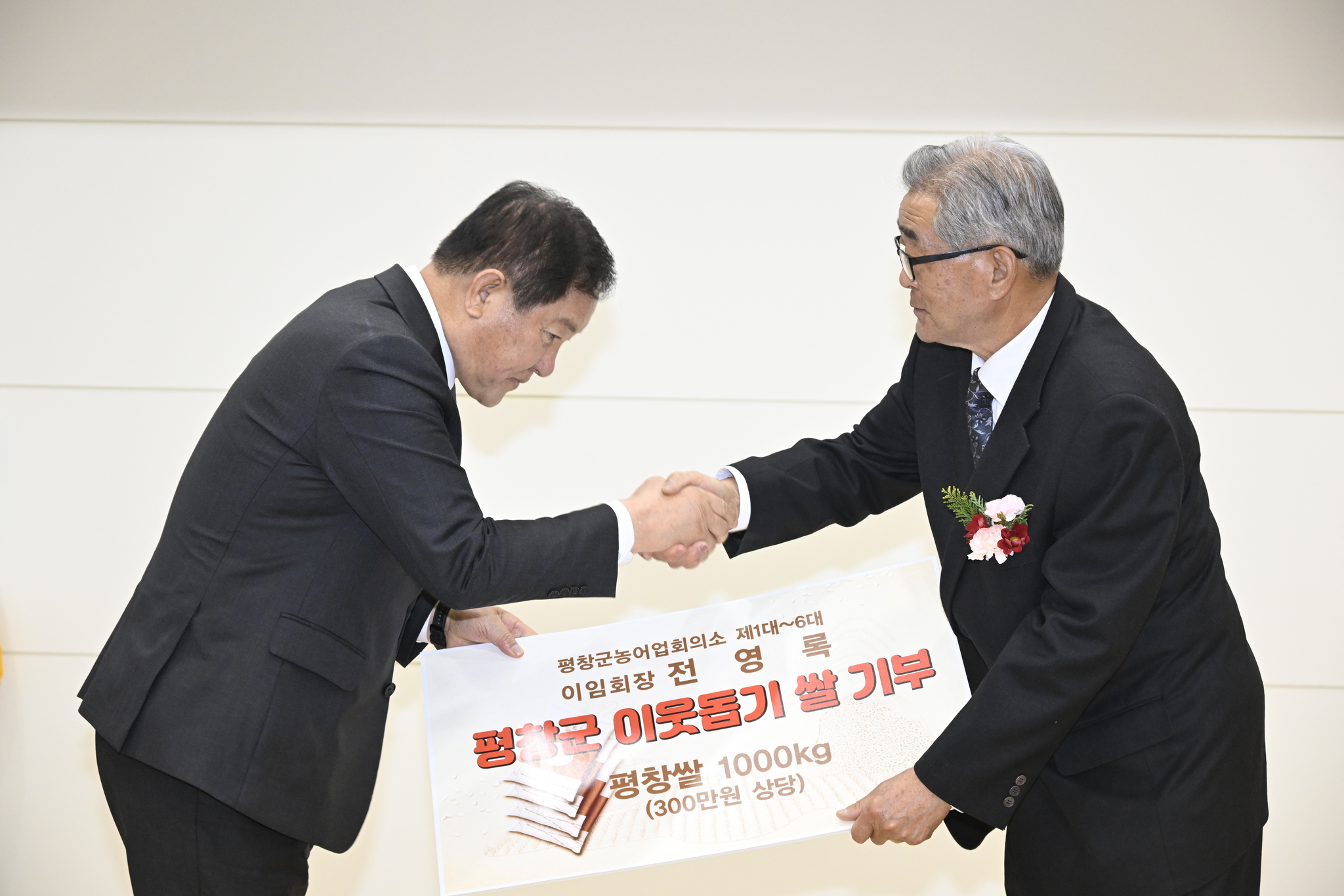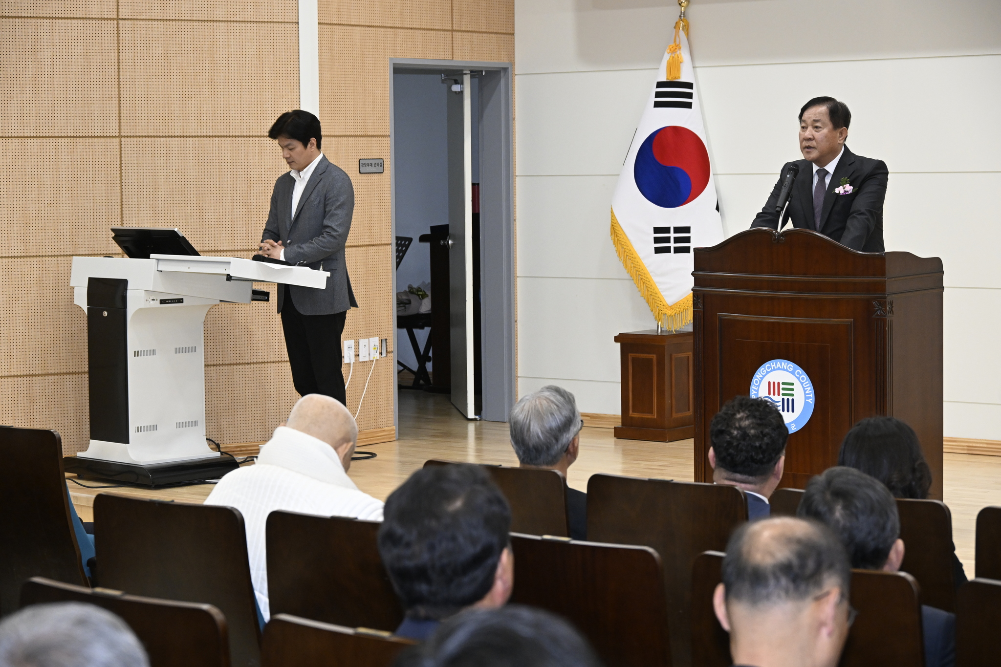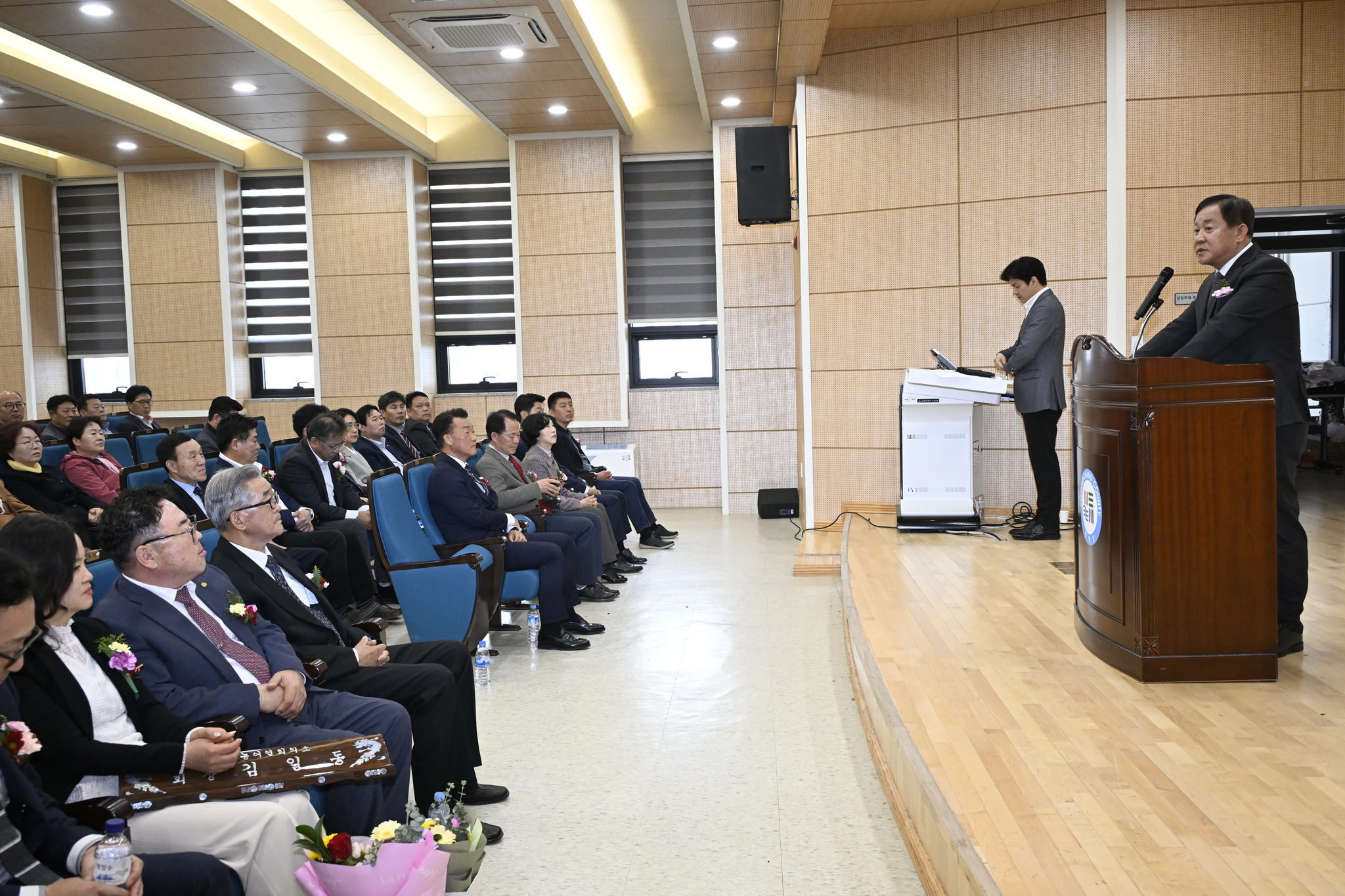 25일 평창군농어업회의소 회장 이·취임식(이임: 전영록 취임: 김일동)이 평창농업기술센터 농업인교육관 대강당(2층)에서 심재국 평창군수를 비롯한 남진삼 평창군의회의원과 의원, 최종수 지광천 강원특별자치도의회의원 등 기관사회단체장과 김제열 농어업회의소전국회의 회장을 비롯한 농어업회의소 관계자 100여 명이 참석한 가운데 있었다. (평창포토뉴스 김춘호)