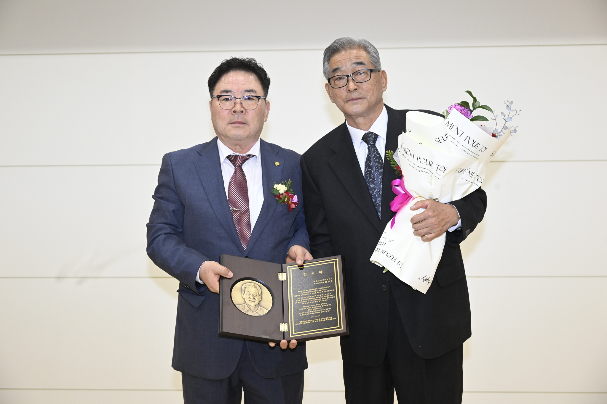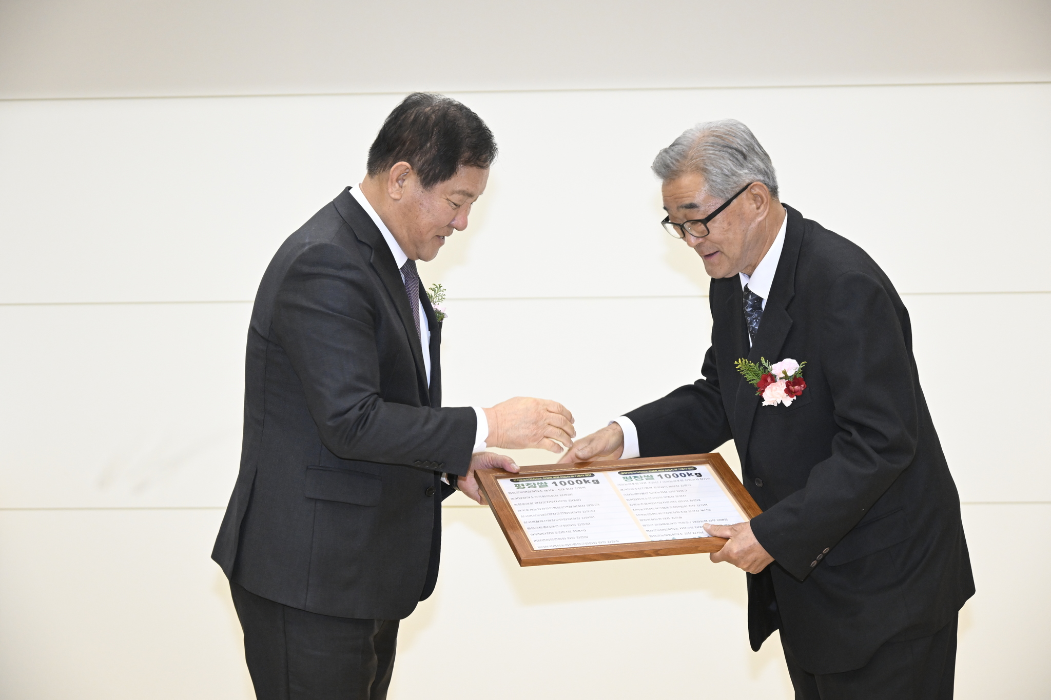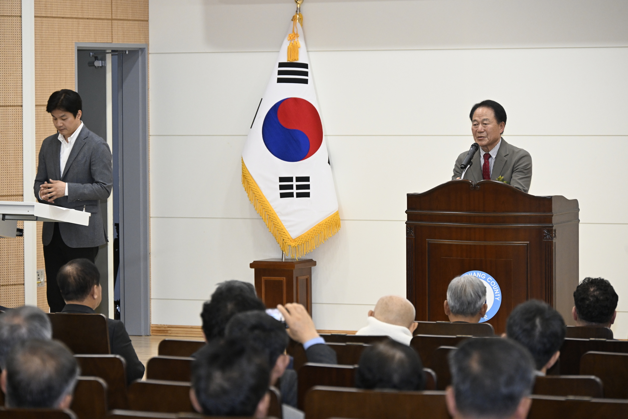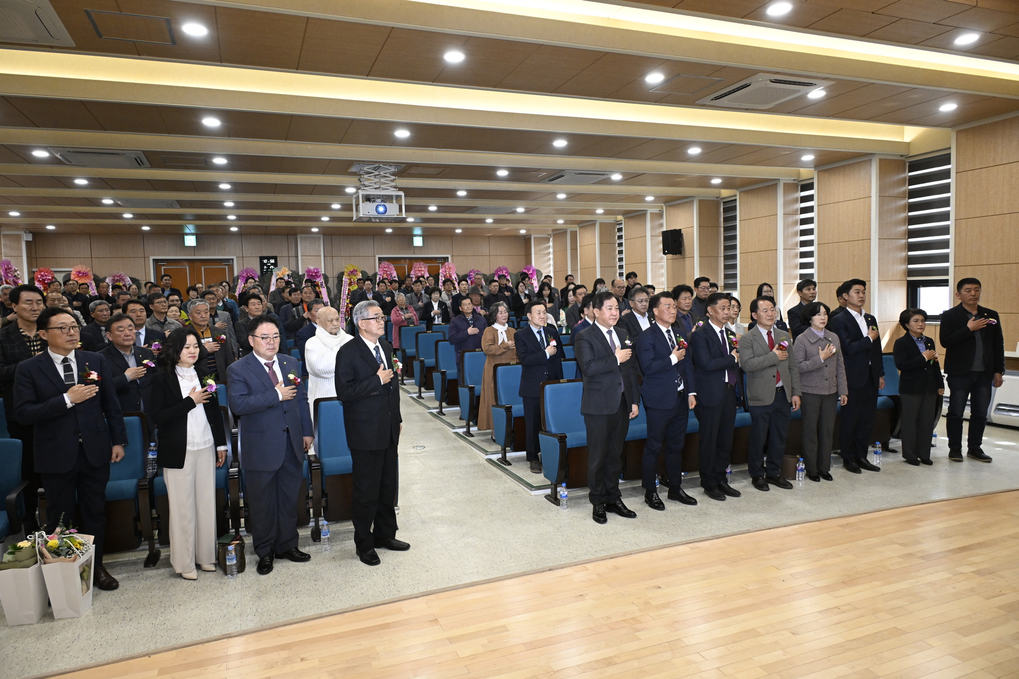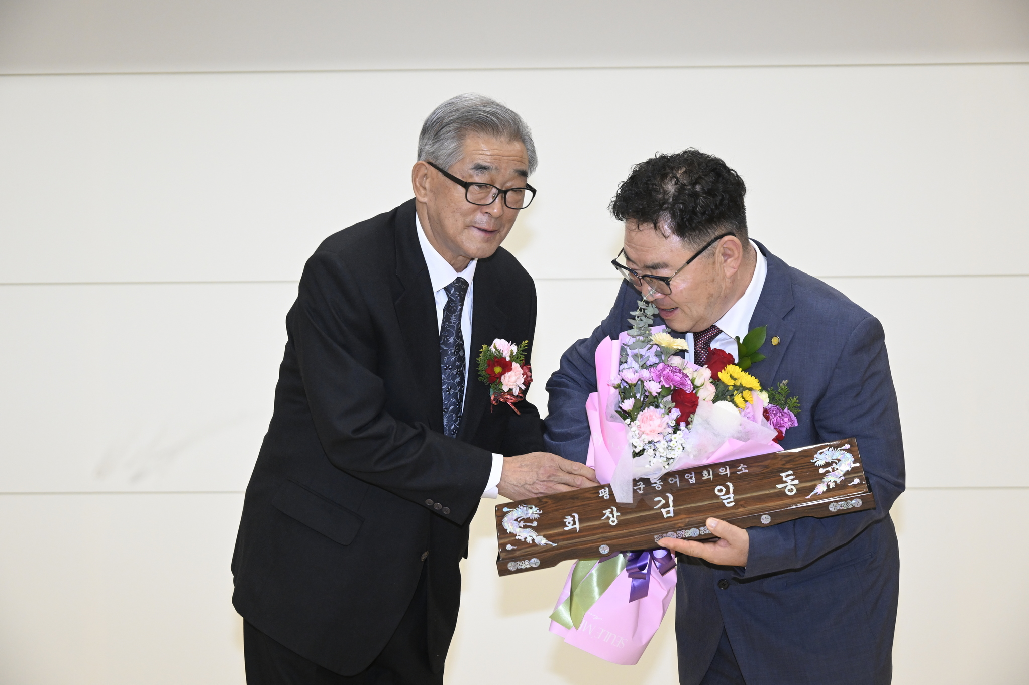 25일 평창군농어업회의소 회장 이·취임식(이임: 전영록 취임: 김일동)이 평창농업기술센터 농업인교육관 대강당(2층)에서 심재국 평창군수를 비롯한 남진삼 평창군의회의원과 의원, 최종수 지광천 강원특별자치도의회의원 등 기관사회단체장과 김제열 농어업회의소전국회의 회장을 비롯한 농어업회의소 관계자 100여 명이 참석한 가운데 있었다. (평창포토뉴스 김춘호)