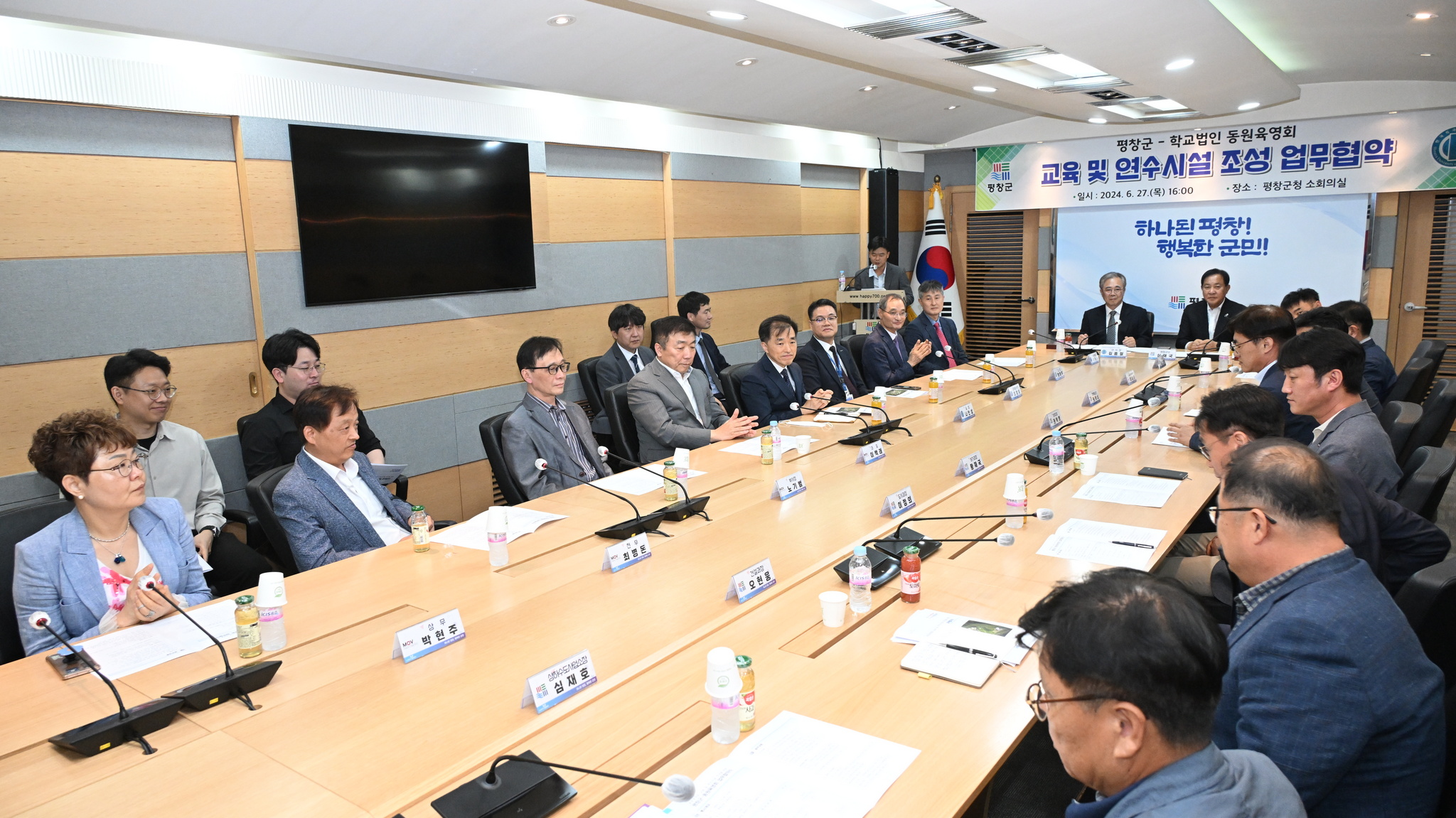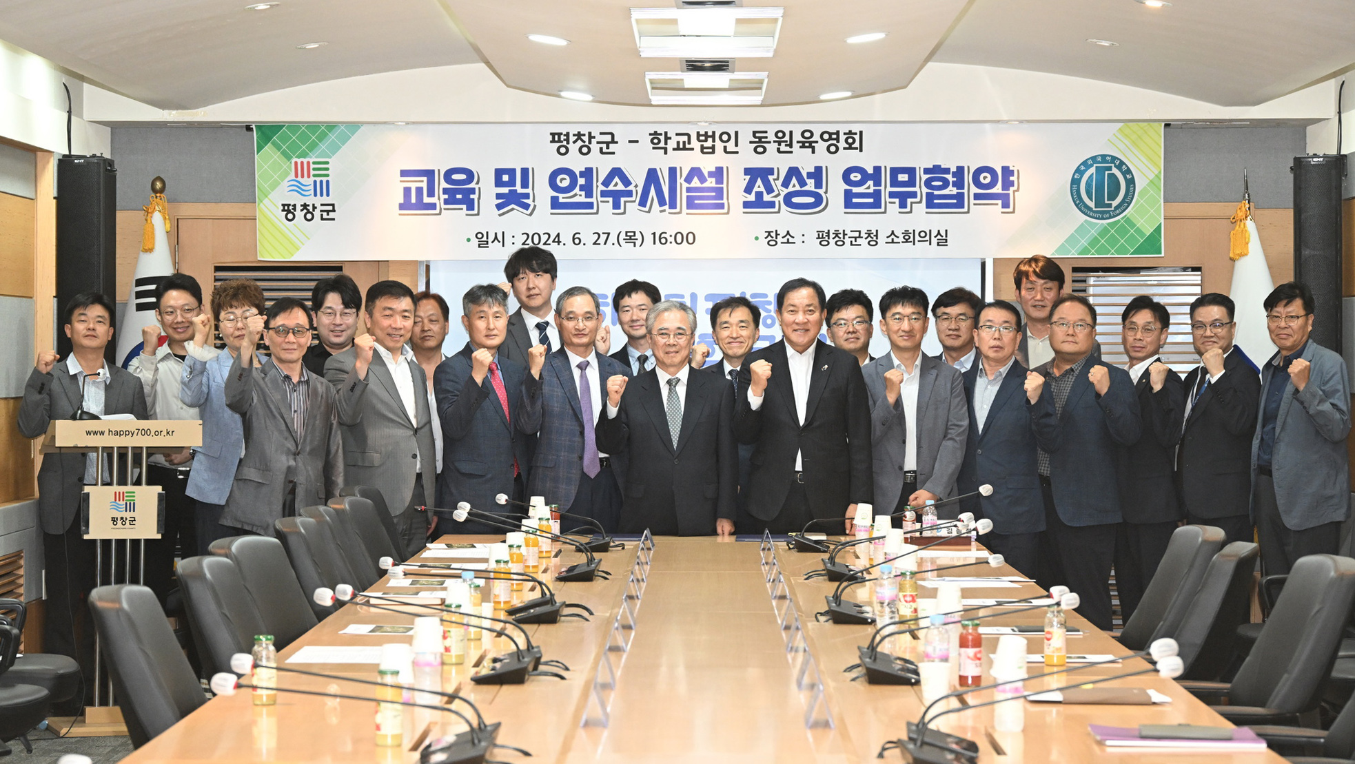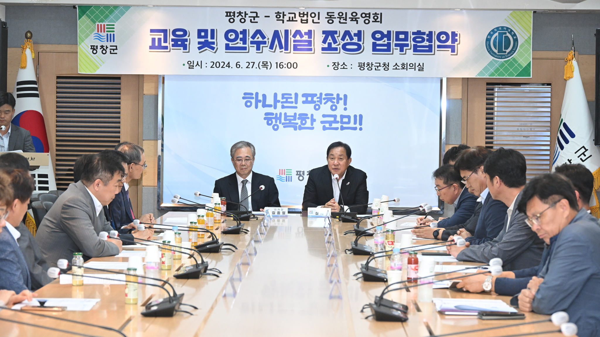 27일 평창군(군수 심재국)과 학교법인 동원육영회(이사장 김종철)은 평창 군청 소회의실에서 동원육영회 교육 및 연수시설 조성을 위한 업무협약을 체결했다. (평창포토뉴스 김춘호)