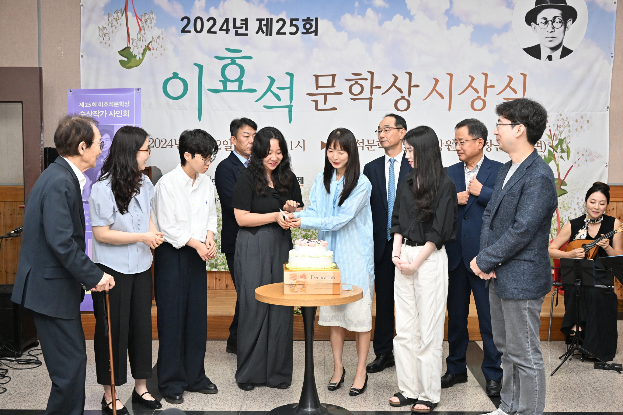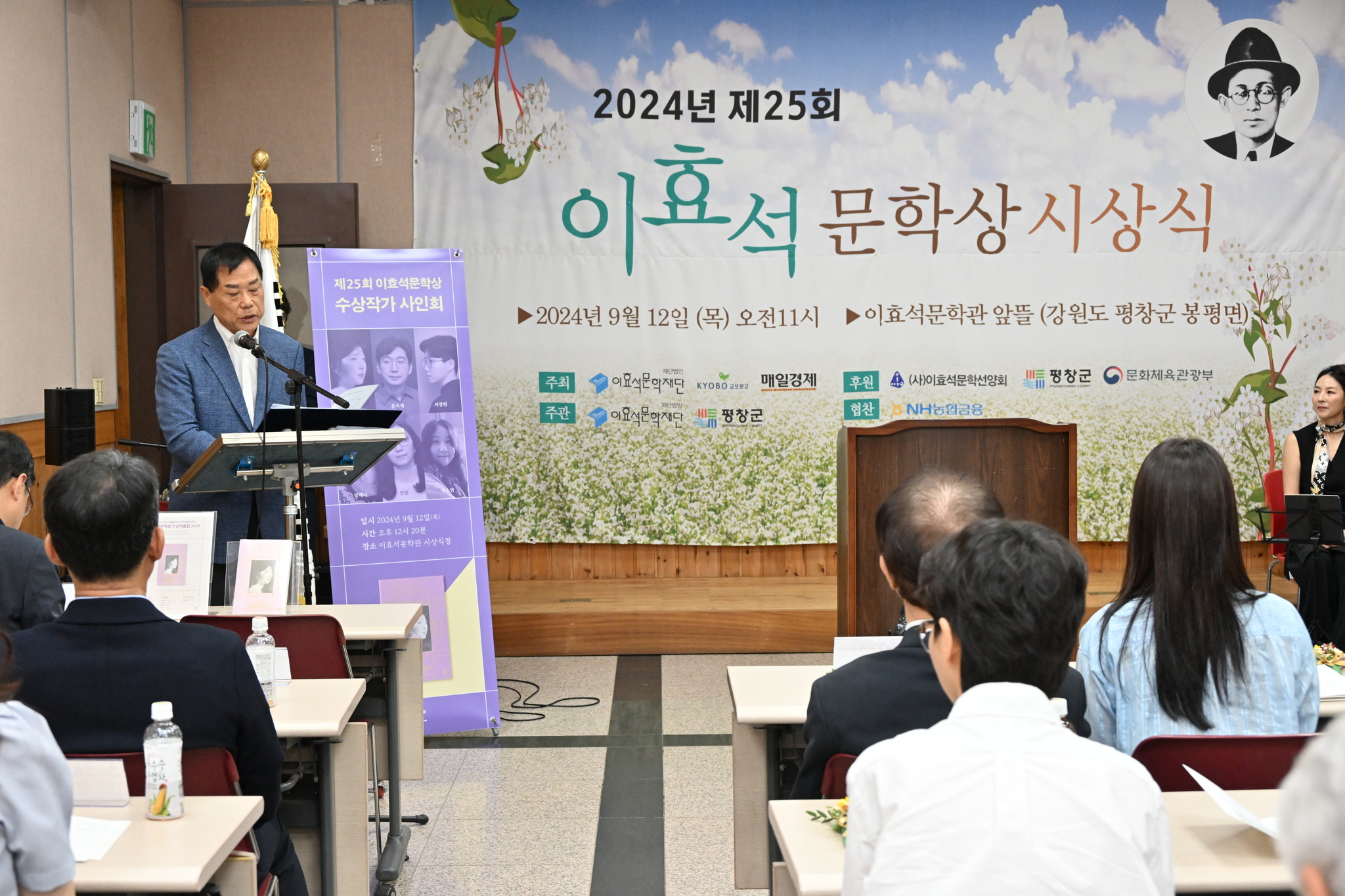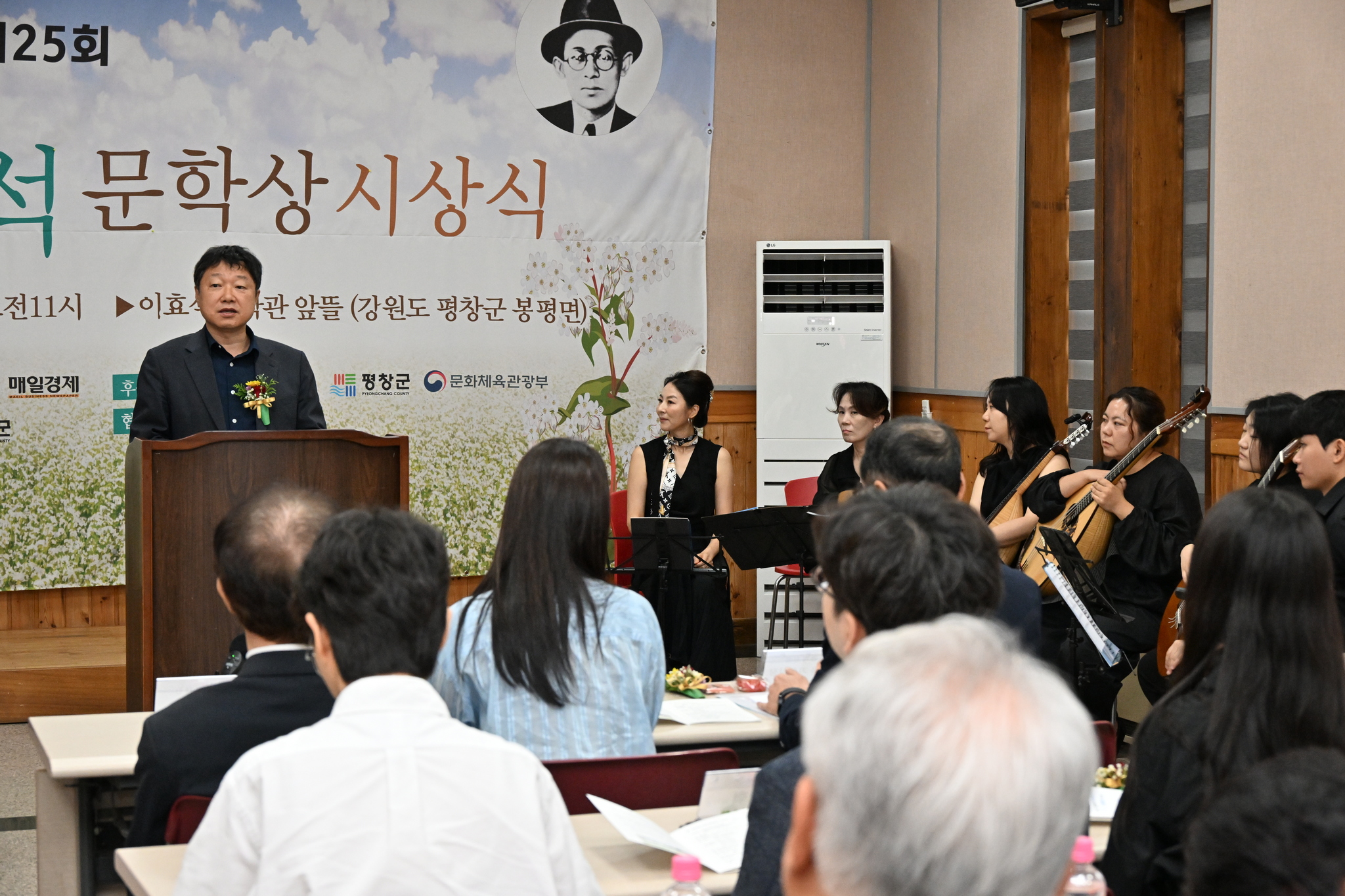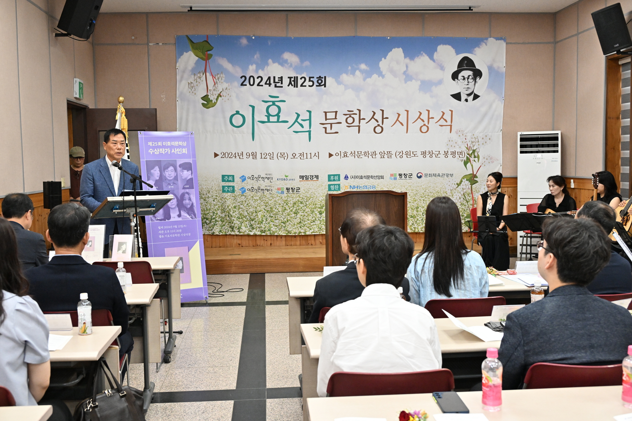 12일 재25회 이효석문학상 시상식이 이효석문학관에서 방민호 (사)이효석문학재단이사장, 이우현 이효석 선생 장남, 김명기 평창군 관광경제국장, 김수연 (사)작은도서관만드는사람들 대표 등 내빈과 대상수상자인 손보미 작가를 비롯한 수상 작가 6명이 참석한 가운데 있었다. (평창포토뉴스 김춘호)