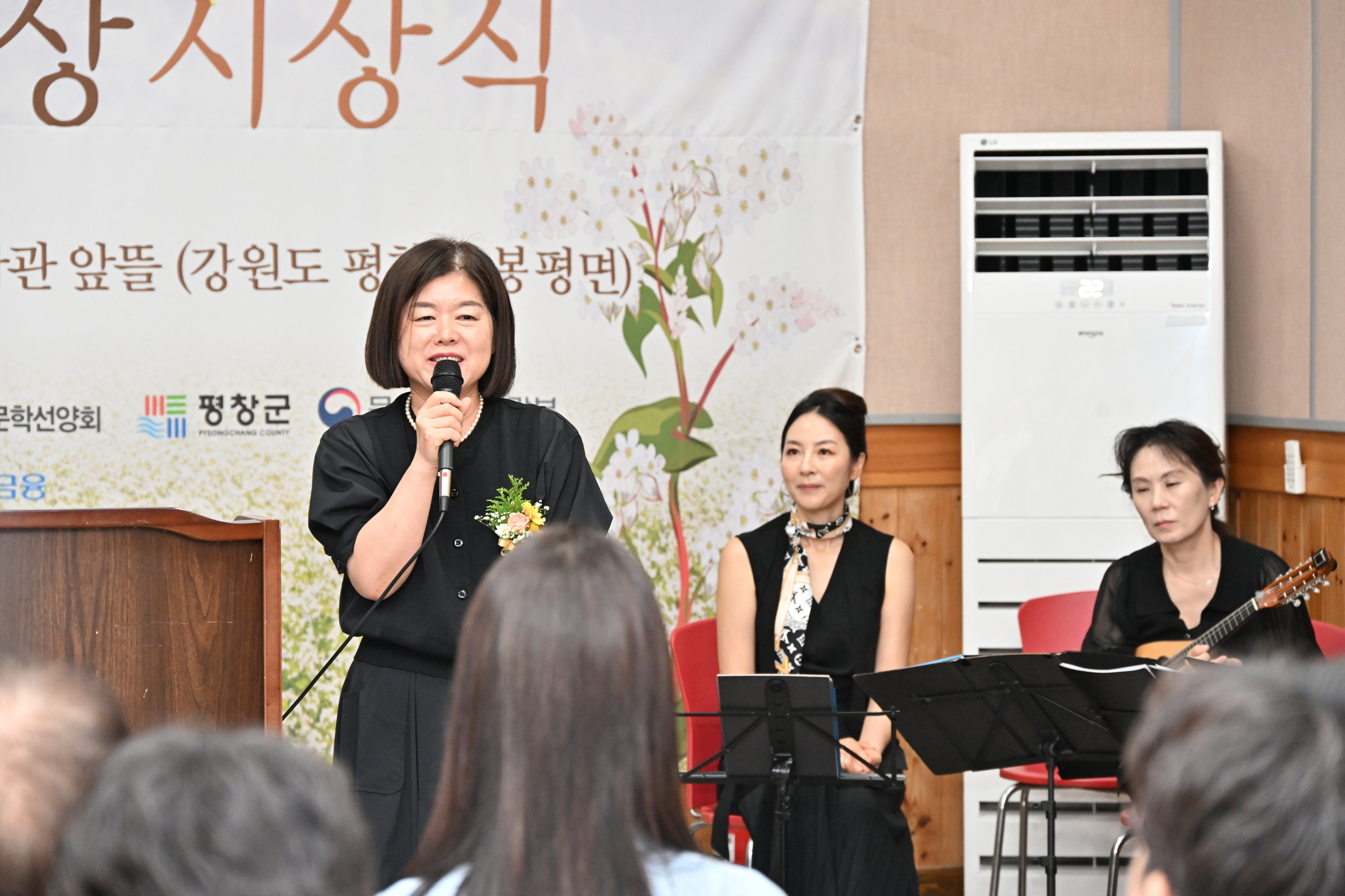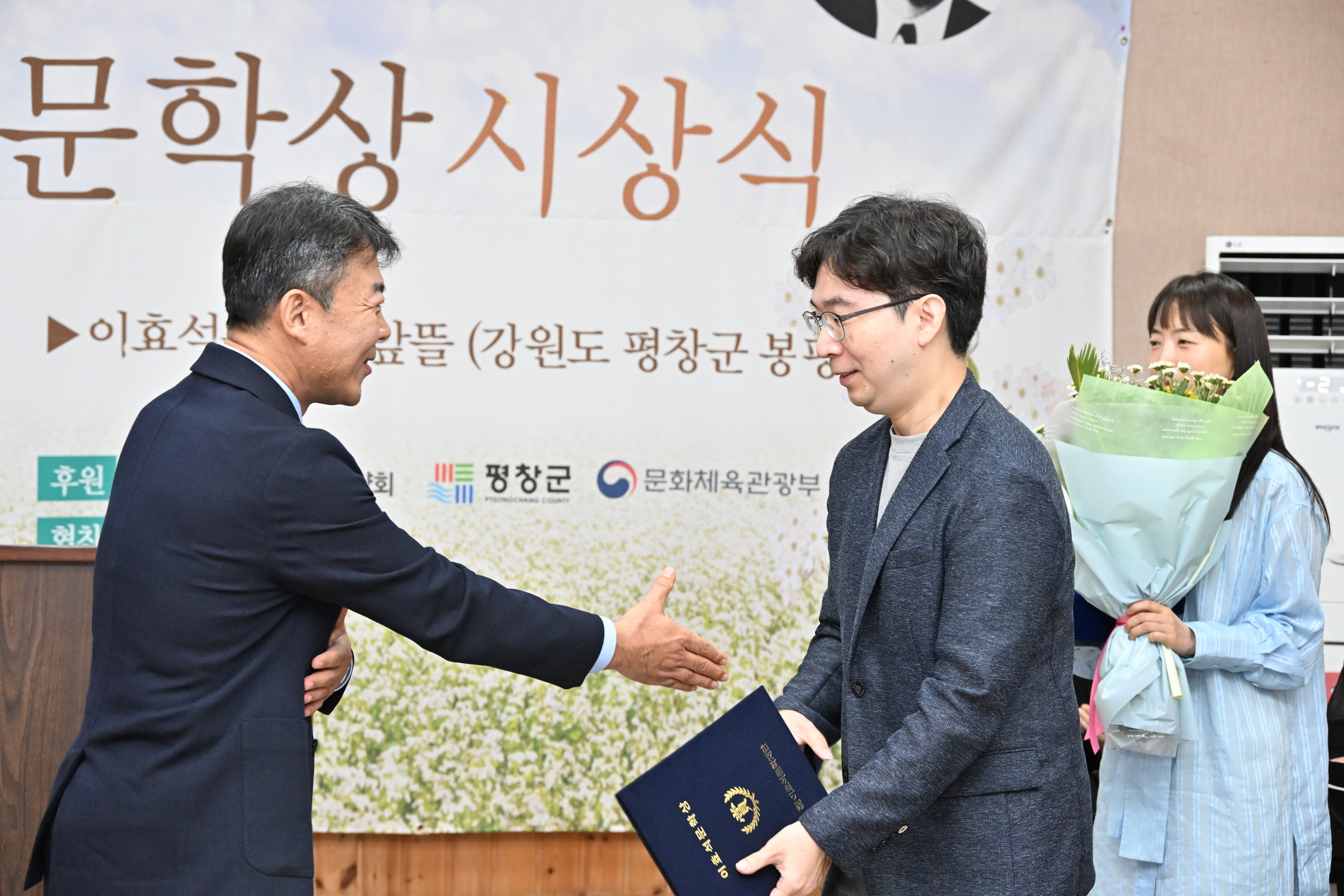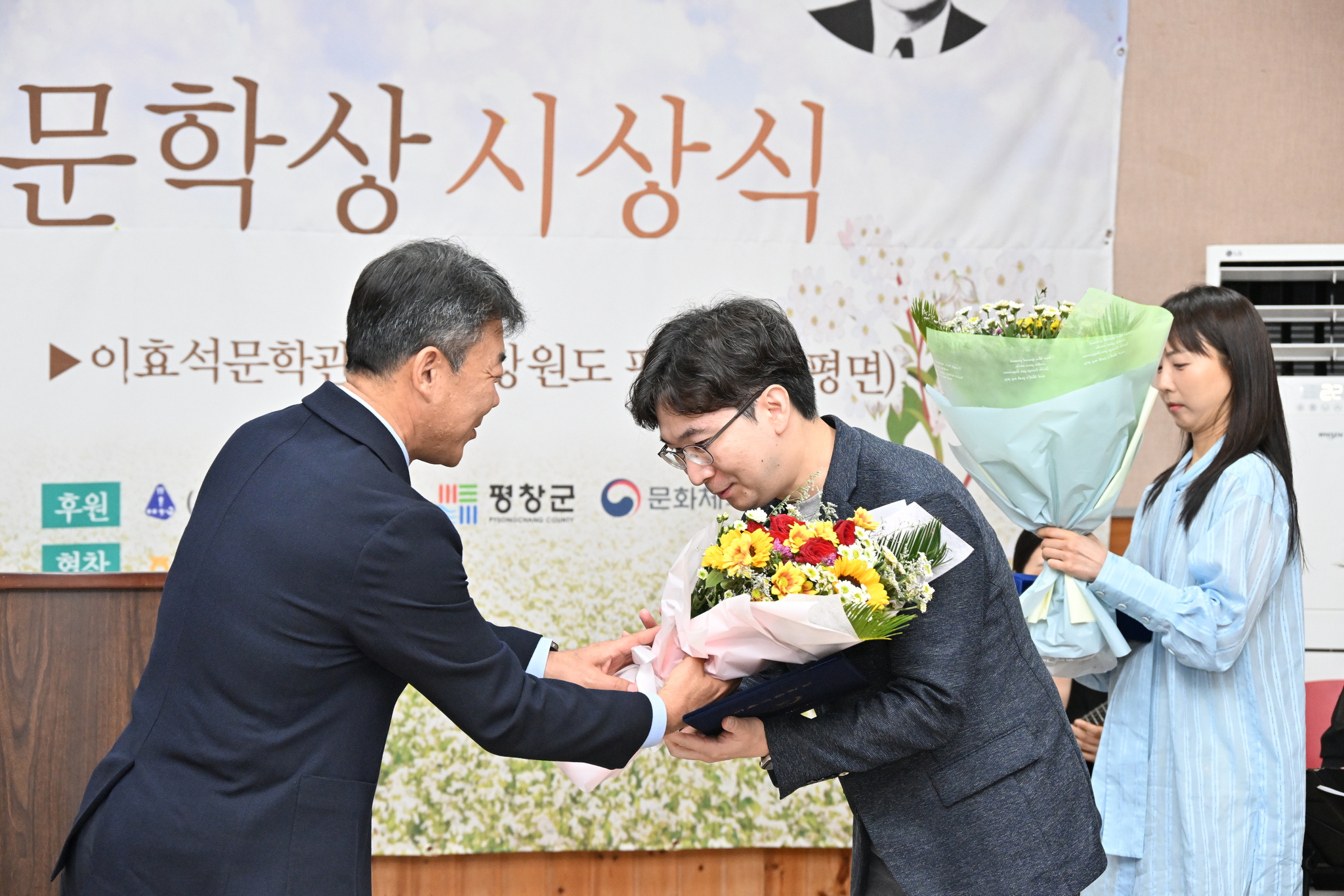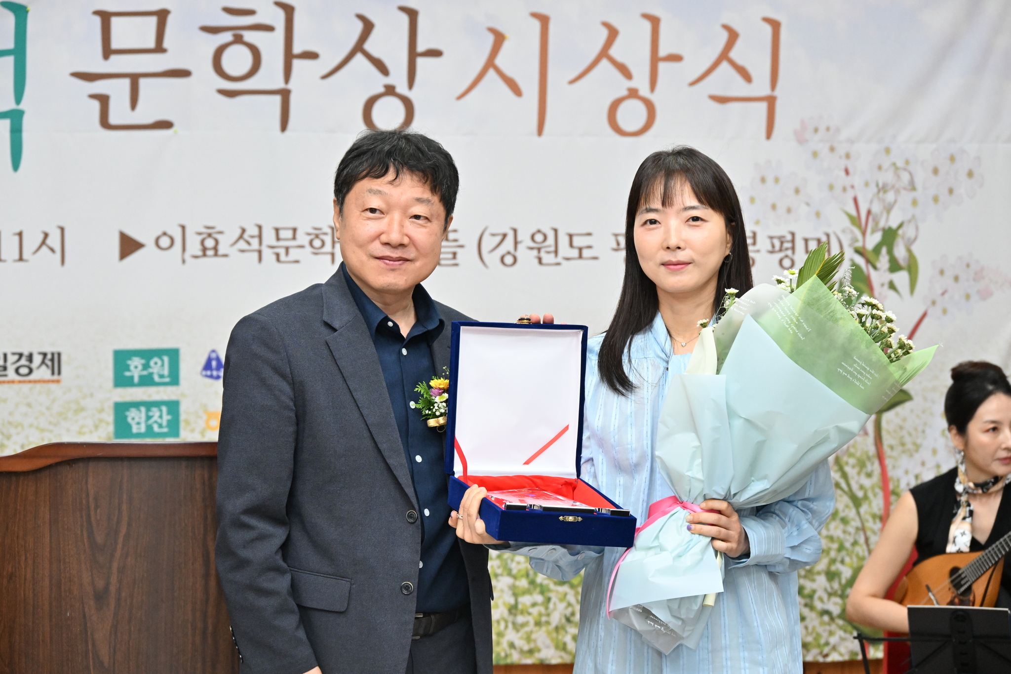 12일 재25회 이효석문학상 시상식이 이효석문학관에서 방민호 (사)이효석문학재단이사장, 이우현 이효석 선생 장남, 김명기 평창군 관광경제국장, 김수연 (사)작은도서관만드는사람들 대표 등 내빈과 대상수상자인 손보미 작가를 비롯한 수상 작가 6명이 참석한 가운데 있었다. (평창포토뉴스 김춘호)