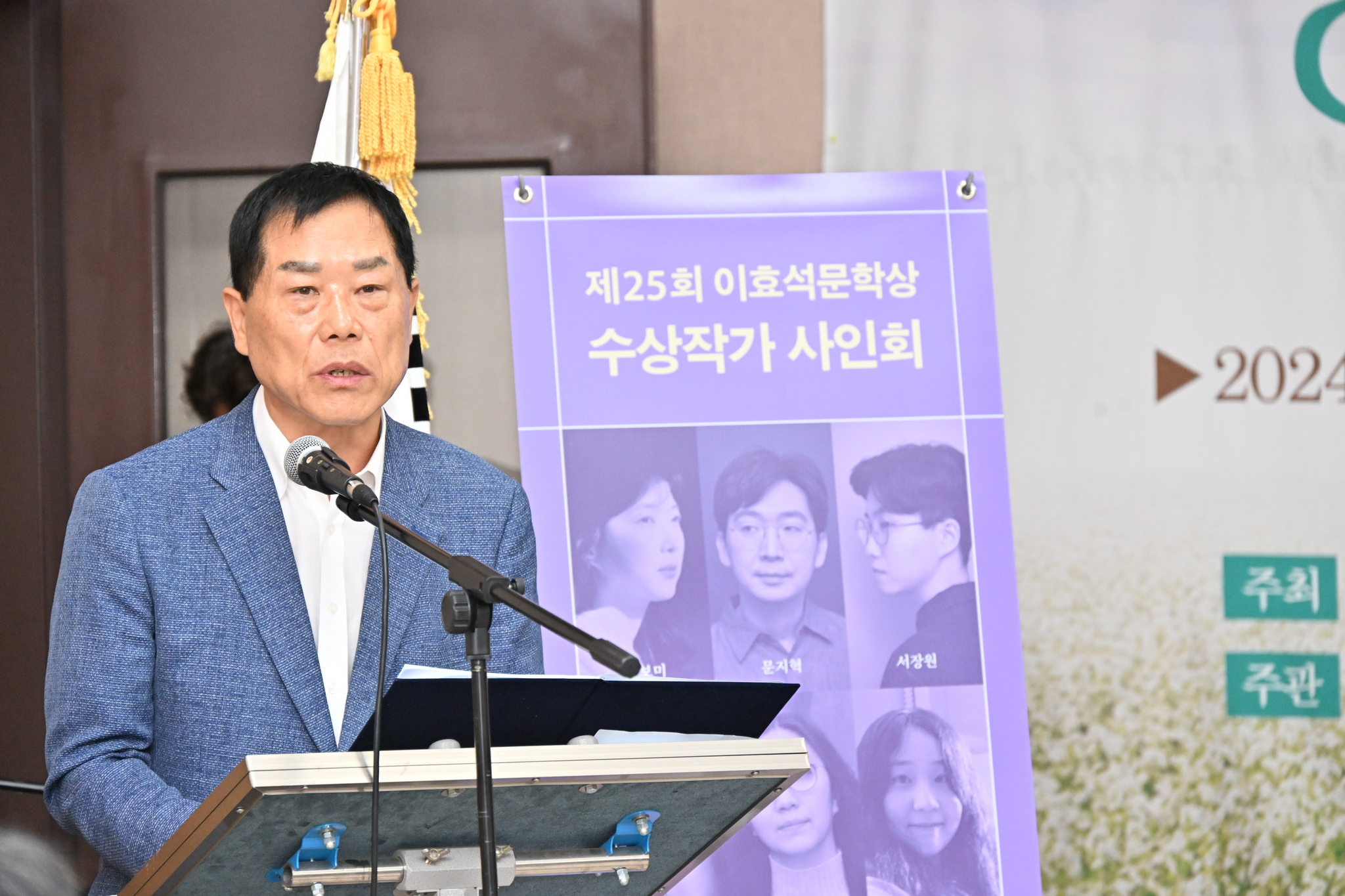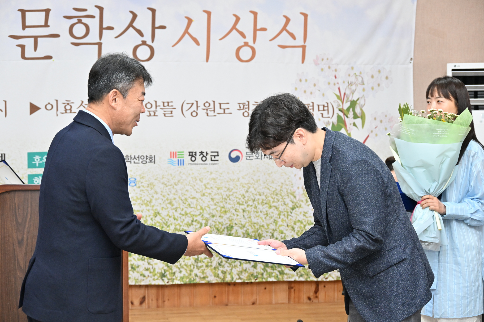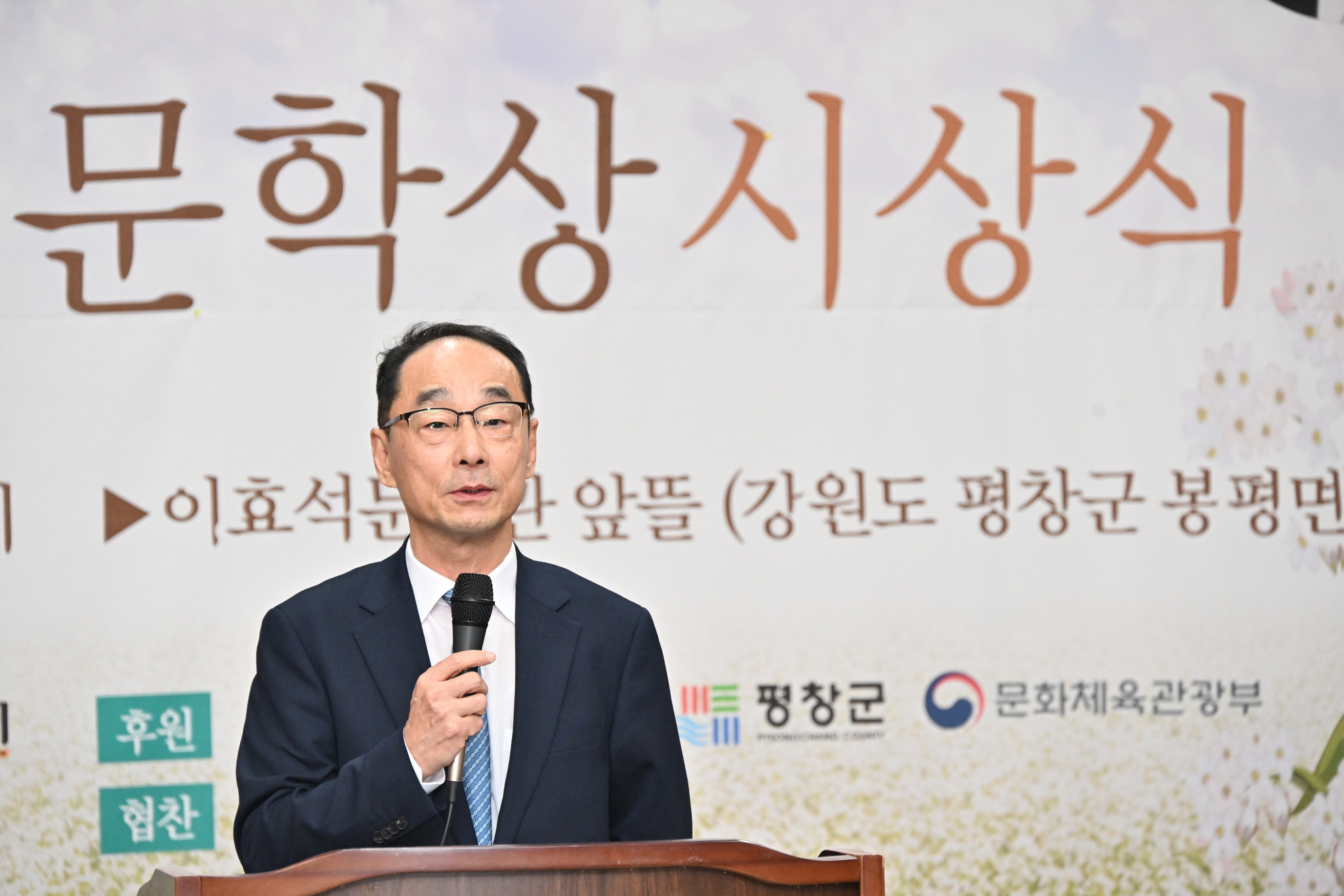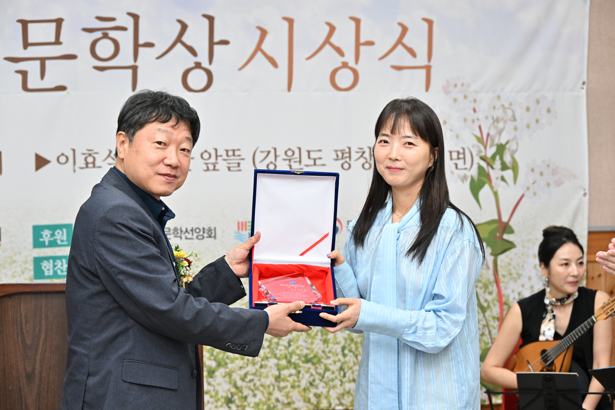 12일 재25회 이효석문학상 시상식이 이효석문학관에서 방민호 (사)이효석문학재단이사장, 이우현 이효석 선생 장남, 김명기 평창군 관광경제국장, 김수연 (사)작은도서관만드는사람들 대표 등 내빈과 대상수상자인 손보미 작가를 비롯한 수상 작가 6명이 참석한 가운데 있었다. (평창포토뉴스 김춘호)