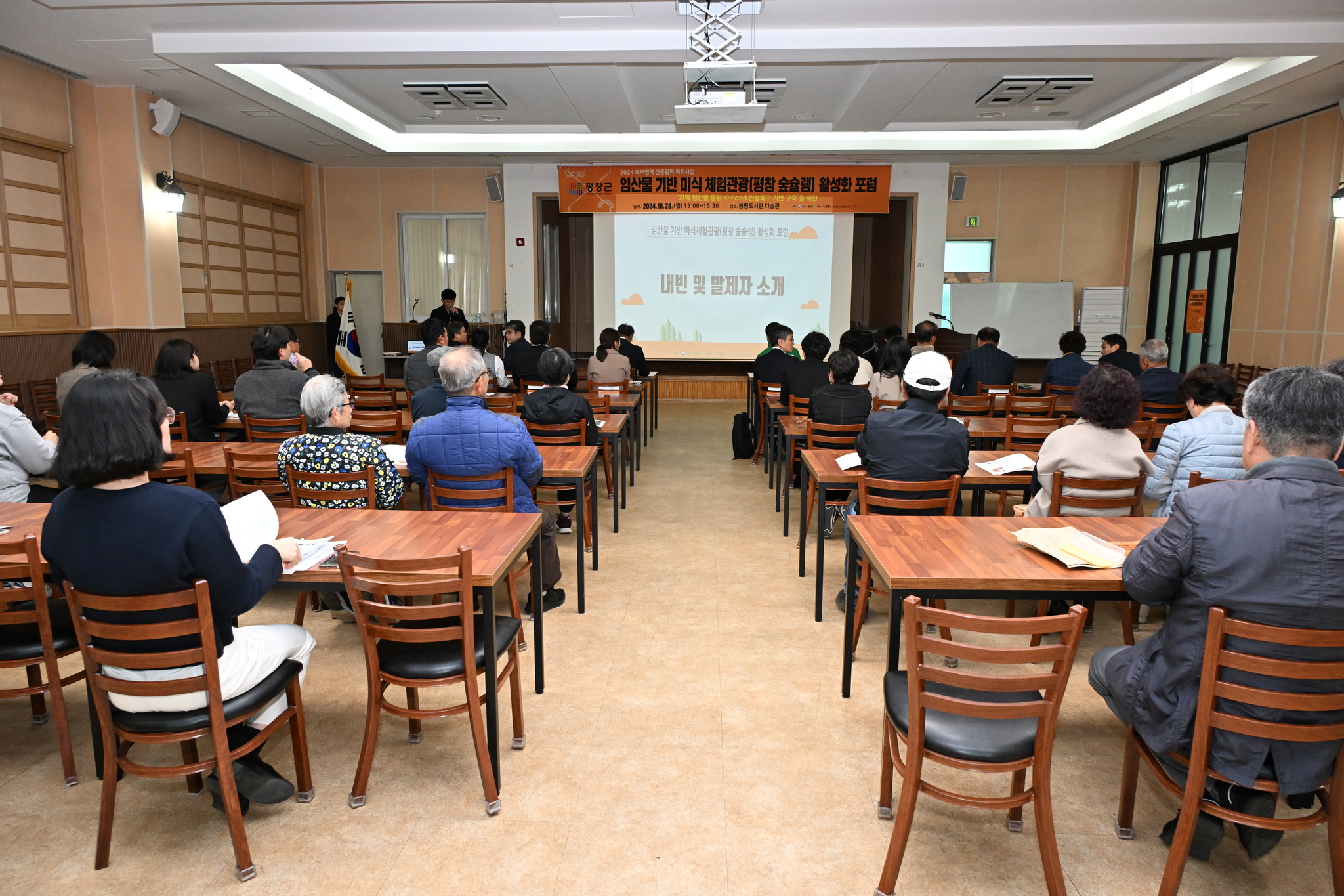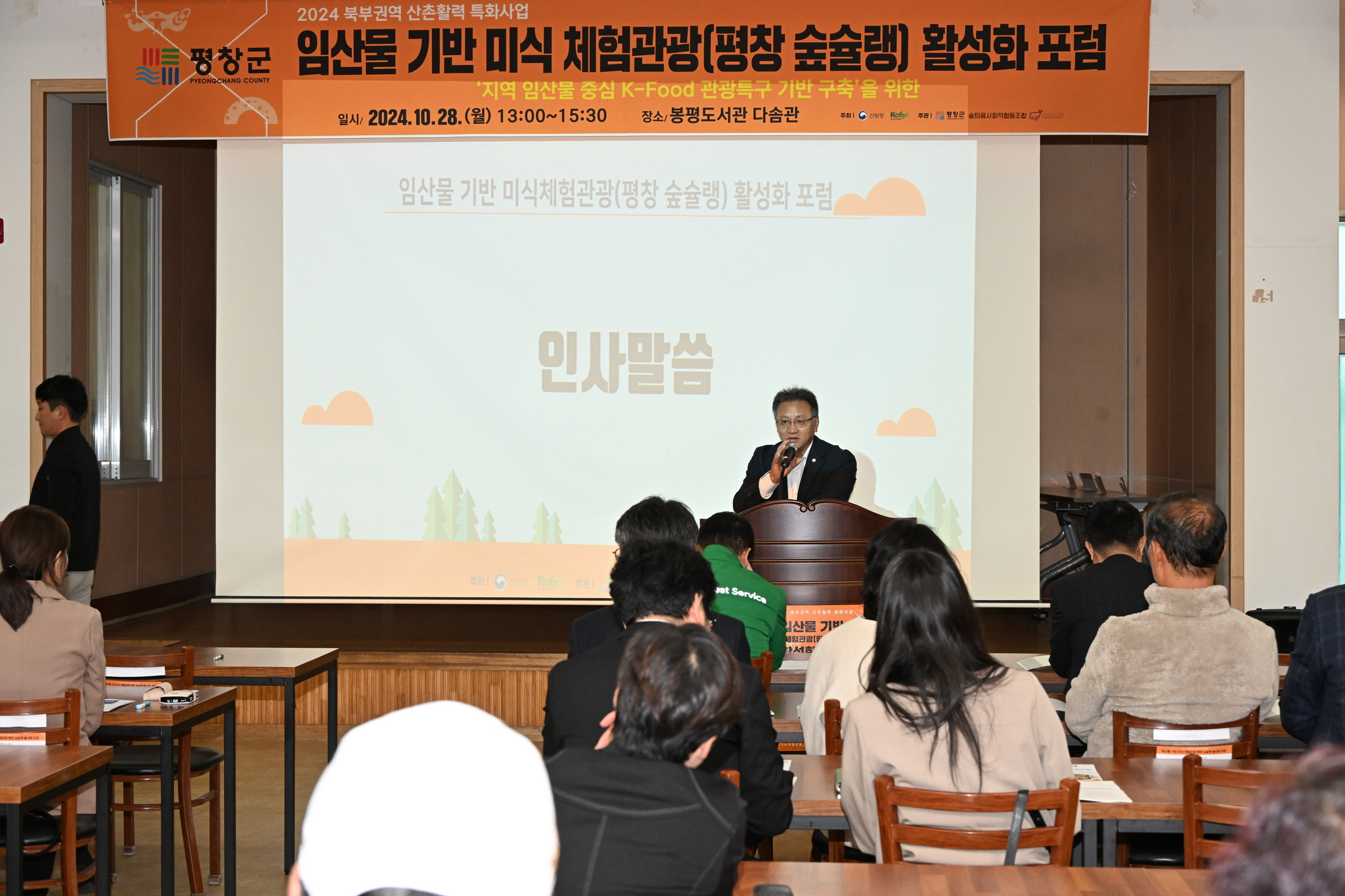 28일 산림청과 한국임업진흥원이 주최하고 국립산림품종관리센터, 평창군, 평창숲틔움사회적협동조합, ㈜한국농산어촌네트워크가 참여하는 임산물 기반 미식 체험관광 활성화 포럼이 28일 봉평도서관에서 열렸다. (평창포토뉴스 김춘호)
