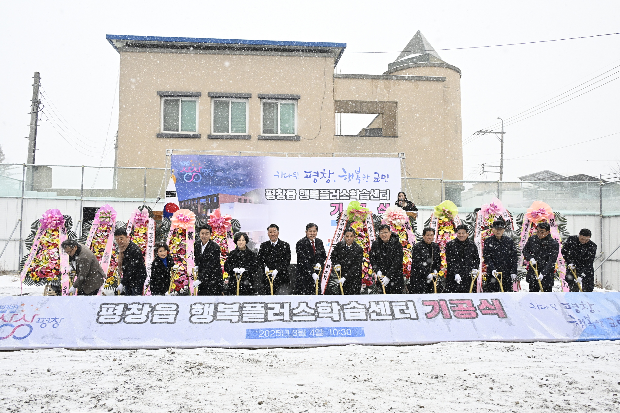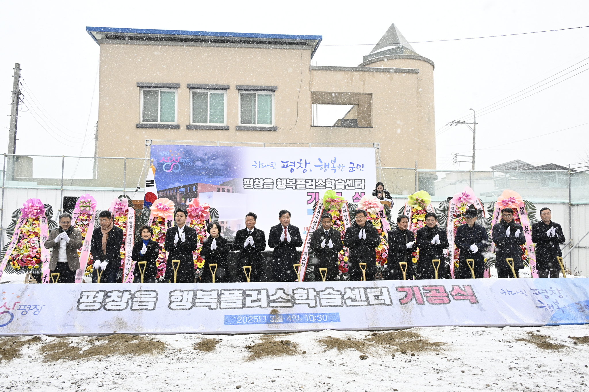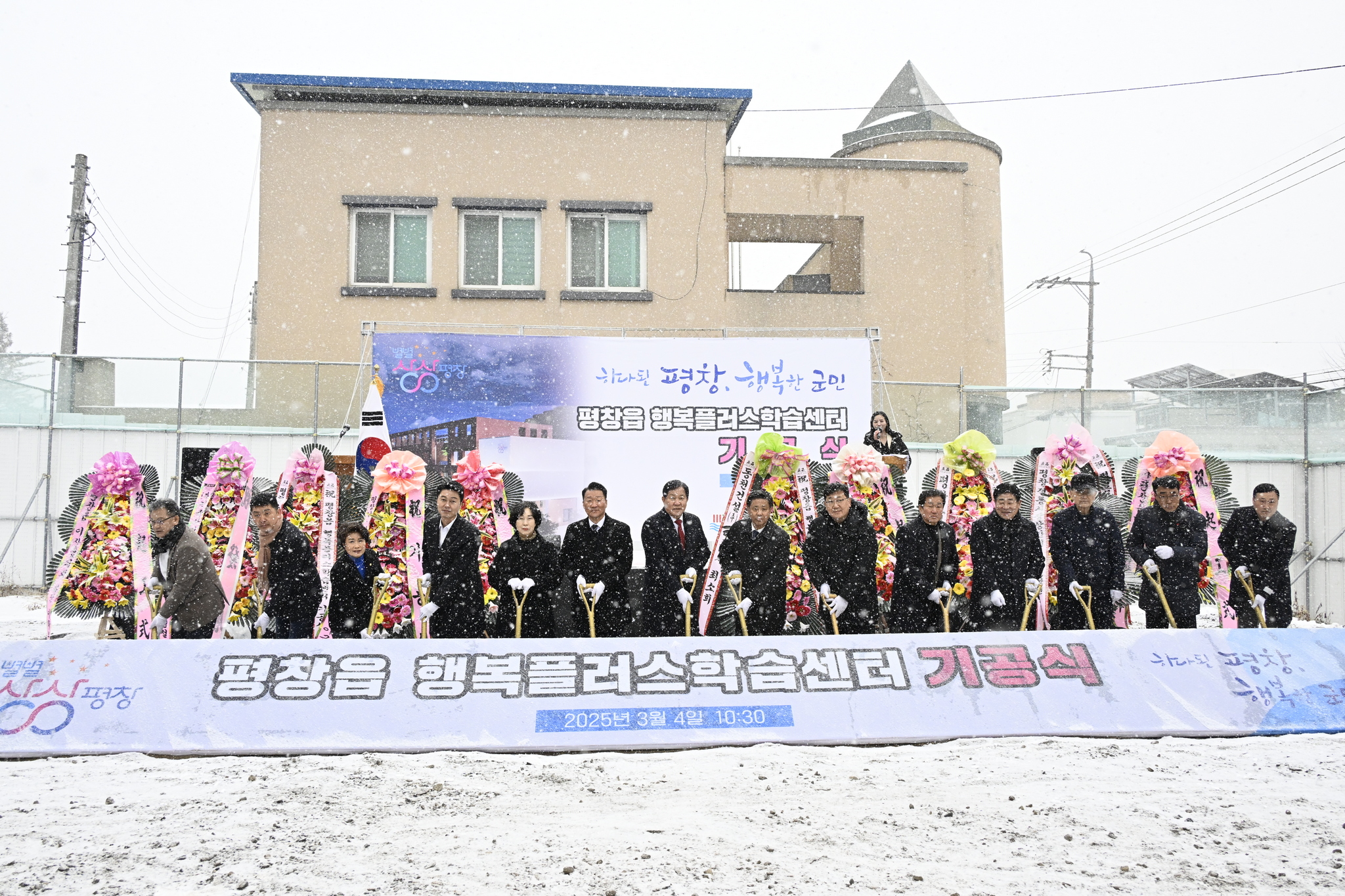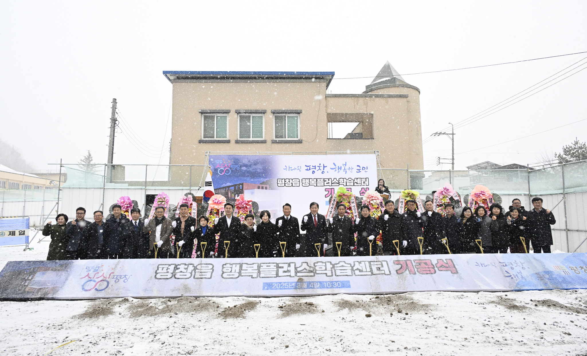 4일 평창군 행복플러스학습센터 기공식이 구 평창읍사무소 부지에서 심재국 평창군수를 비롯한 남진삼 평창군의회의장과 의원, 지광천 강원특별자치도의회의원 등 기관사회단체장 및 지역 주민 등 200여 명이 참석한 가운데 있었다. 행복플러스학습센터는 평창군 지방소멸대응기금 핵심 사업으로 141억원의 기금과 군비 45억원이 투입되어 연면적 4,954㎡, 지하 1층 지상 4층 규모로 2026년 6월 준공될 예정이다. (평창포토뉴스 김춘호)