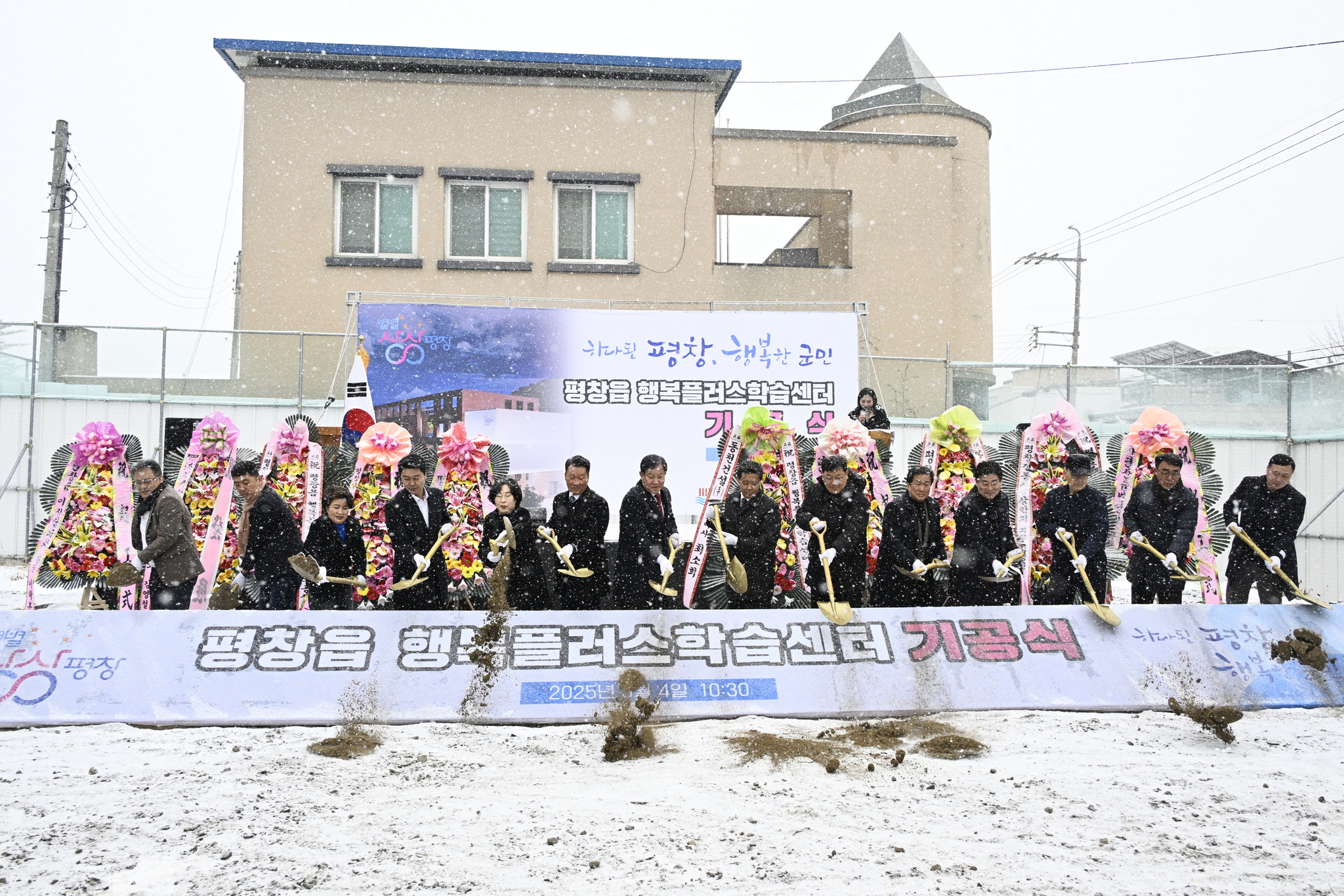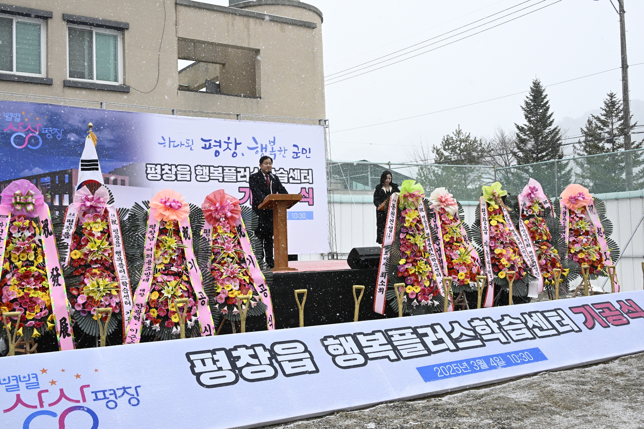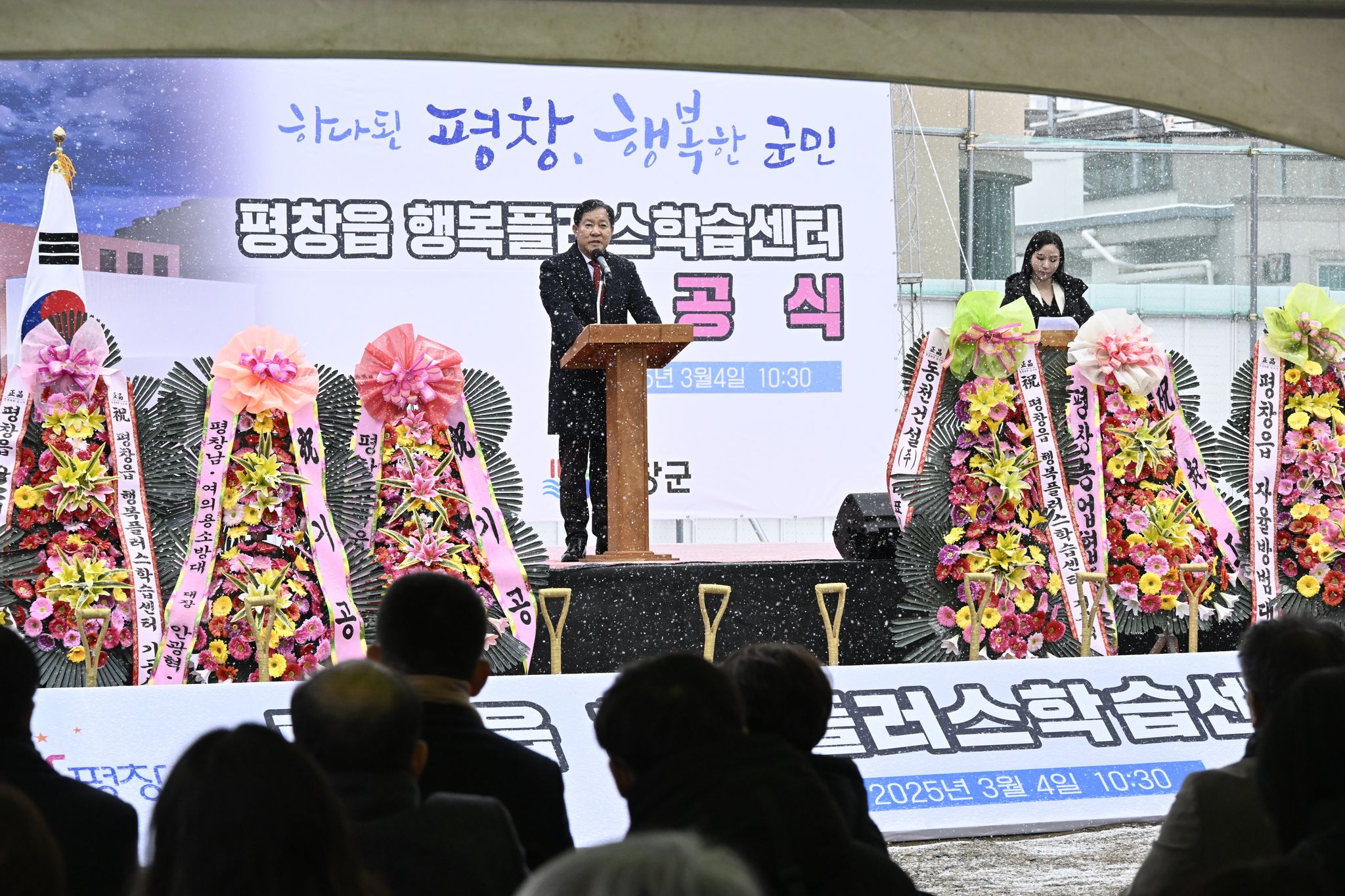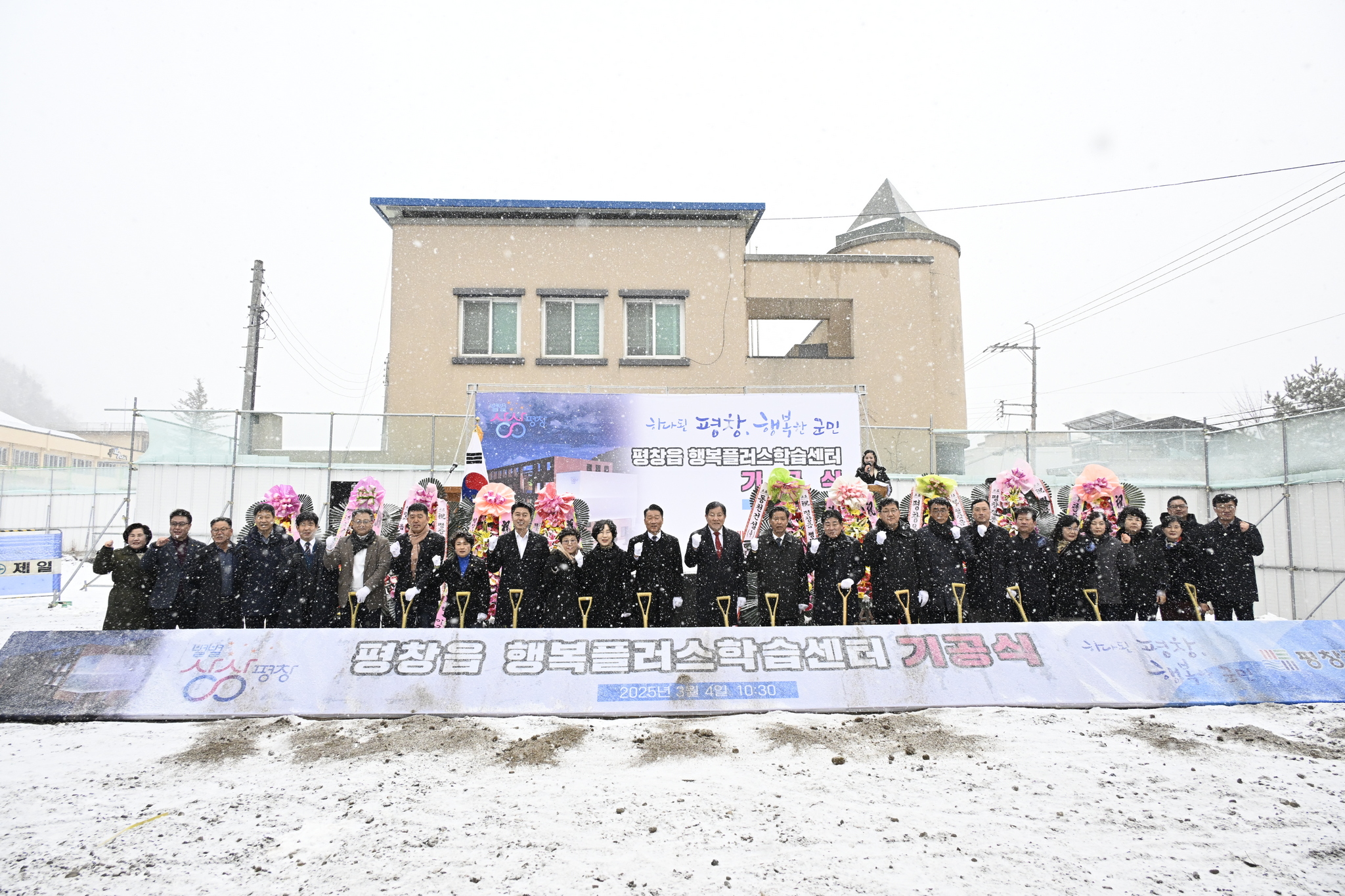 4일 평창군 행복플러스학습센터 기공식이 구 평창읍사무소 부지에서 심재국 평창군수를 비롯한 남진삼 평창군의회의장과 의원, 지광천 강원특별자치도의회의원 등 기관사회단체장 및 지역 주민 등 200여 명이 참석한 가운데 있었다. 행복플러스학습센터는 평창군 지방소멸대응기금 핵심 사업으로 141억원의 기금과 군비 45억원이 투입되어 연면적 4,954㎡, 지하 1층 지상 4층 규모로 2026년 6월 준공될 예정이다. (평창포토뉴스 김춘호)