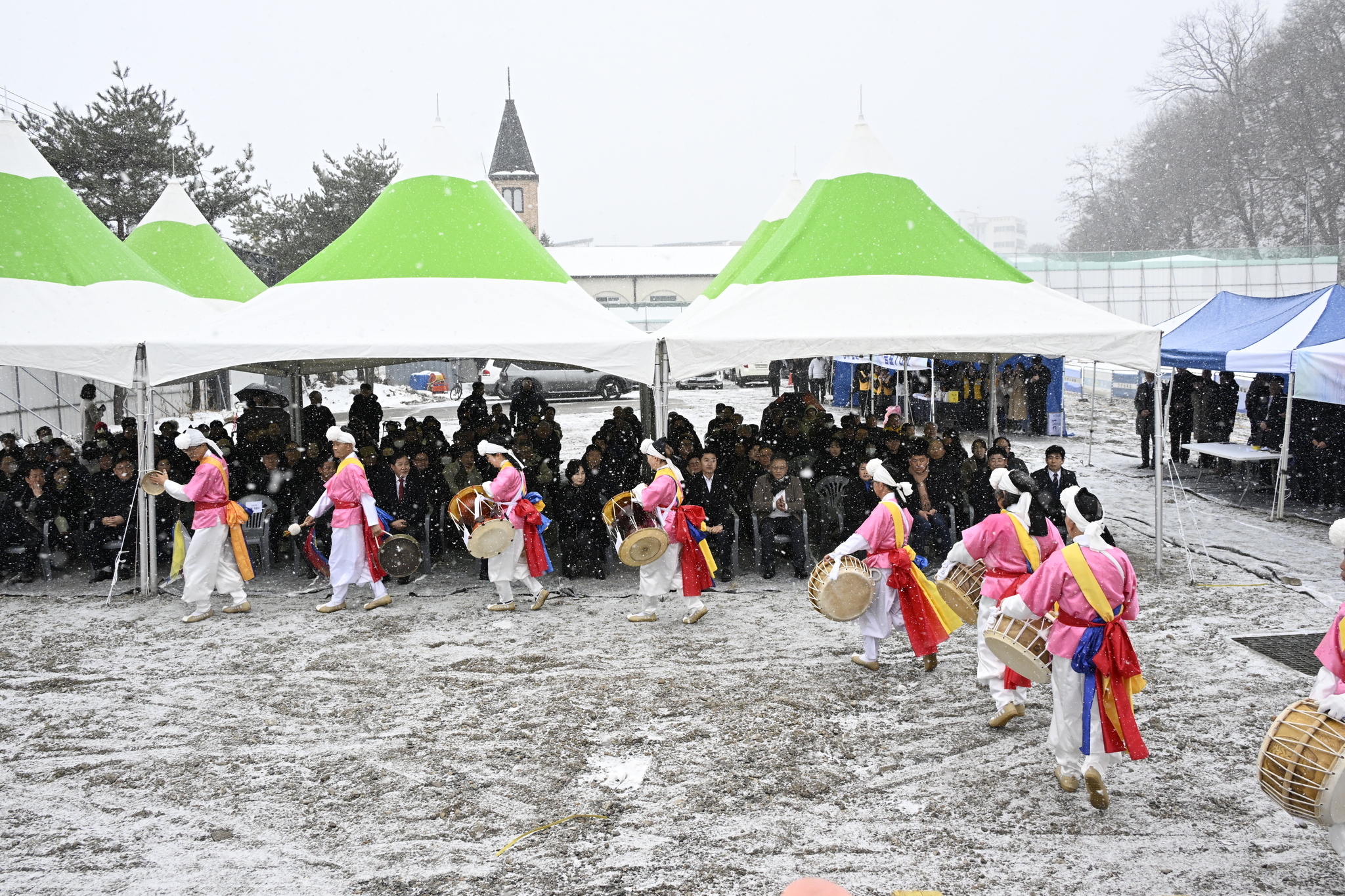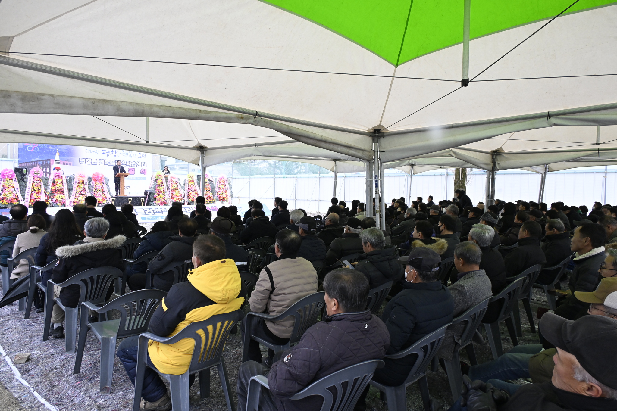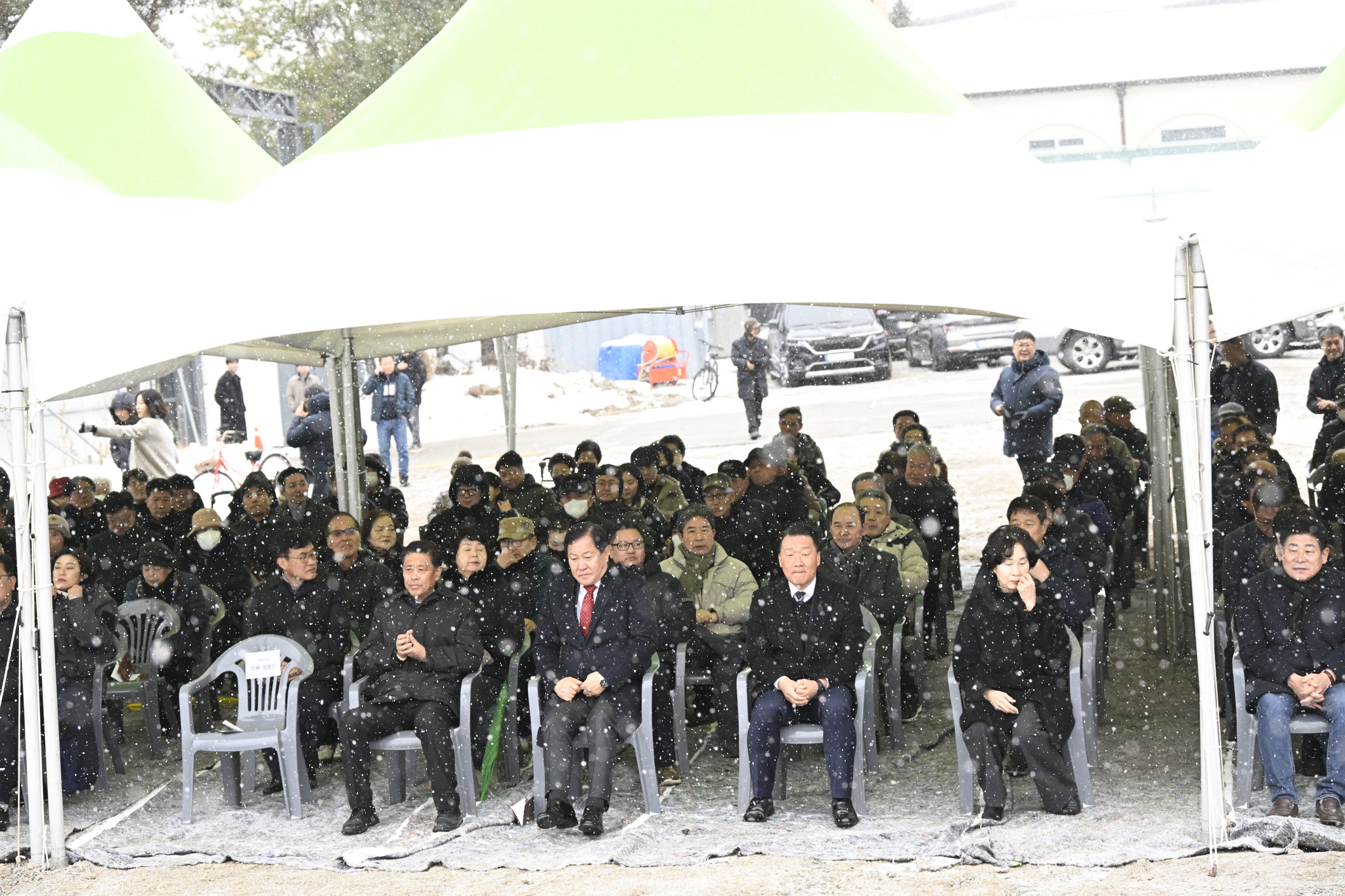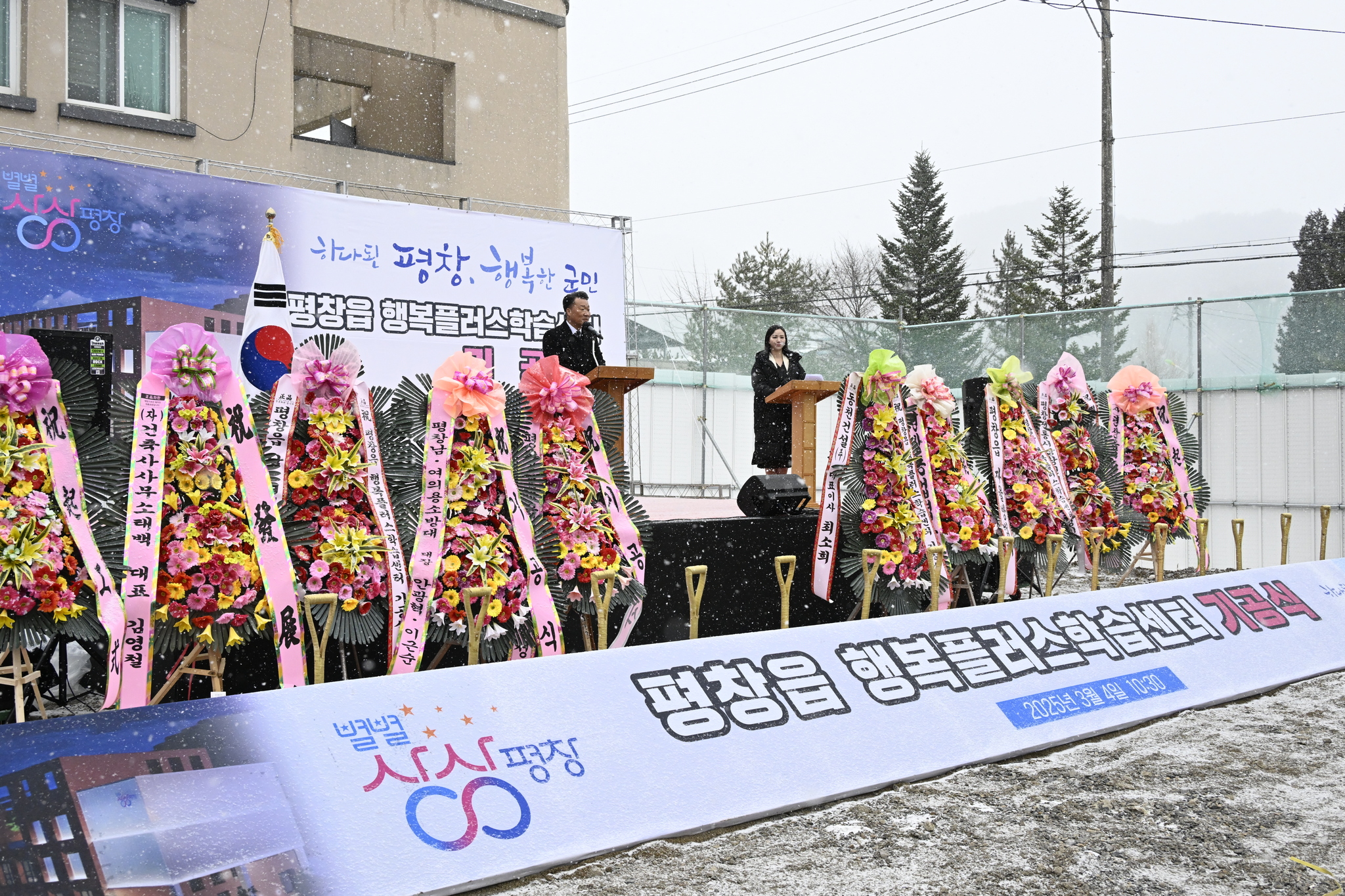 4일 평창군 행복플러스학습센터 기공식이 구 평창읍사무소 부지에서 심재국 평창군수를 비롯한 남진삼 평창군의회의장과 의원, 지광천 강원특별자치도의회의원 등 기관사회단체장 및 지역 주민 등 200여 명이 참석한 가운데 있었다. 행복플러스학습센터는 평창군 지방소멸대응기금 핵심 사업으로 141억원의 기금과 군비 45억원이 투입되어 연면적 4,954㎡, 지하 1층 지상 4층 규모로 2026년 6월 준공될 예정이다. (평창포토뉴스 김춘호)