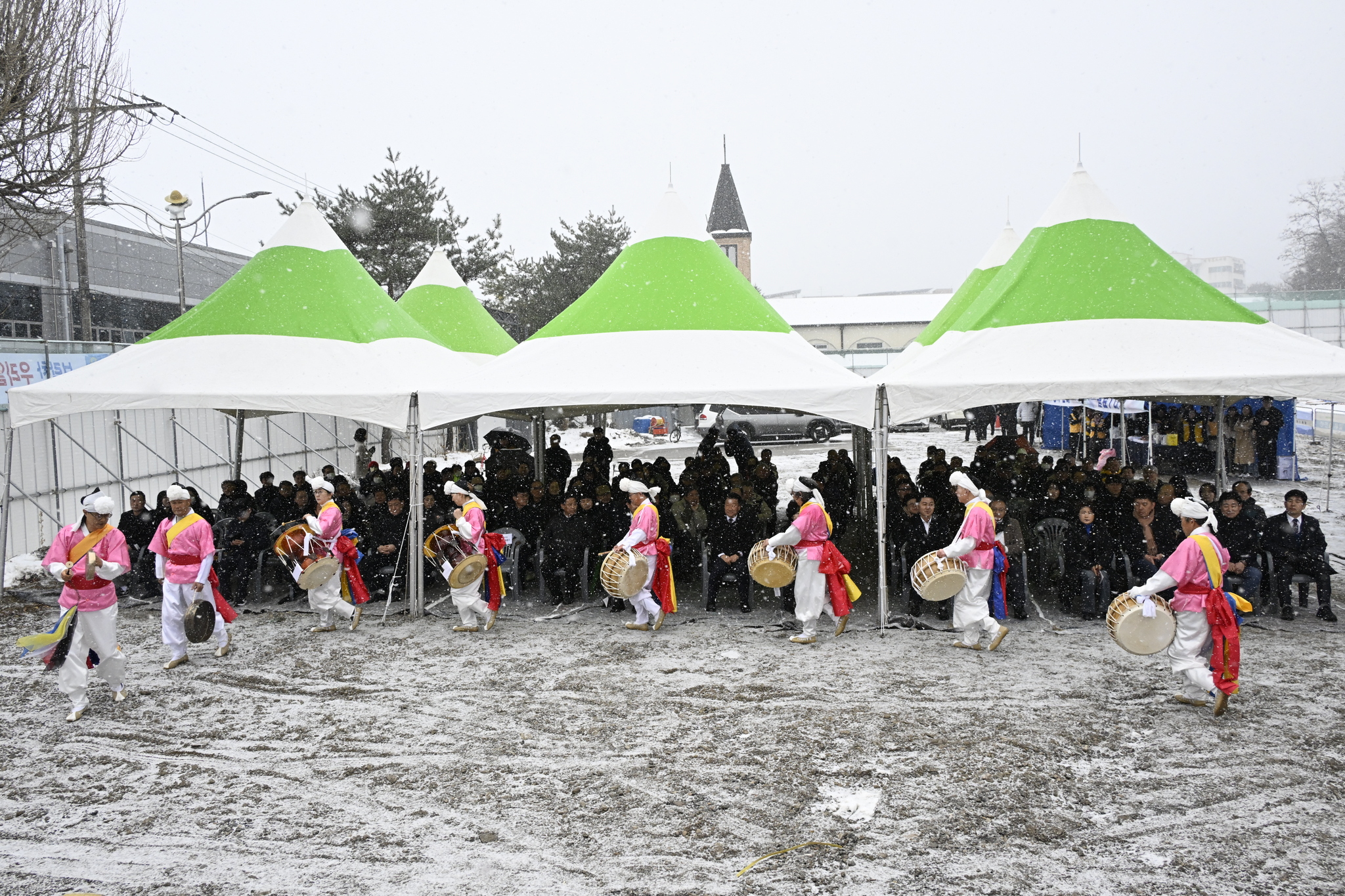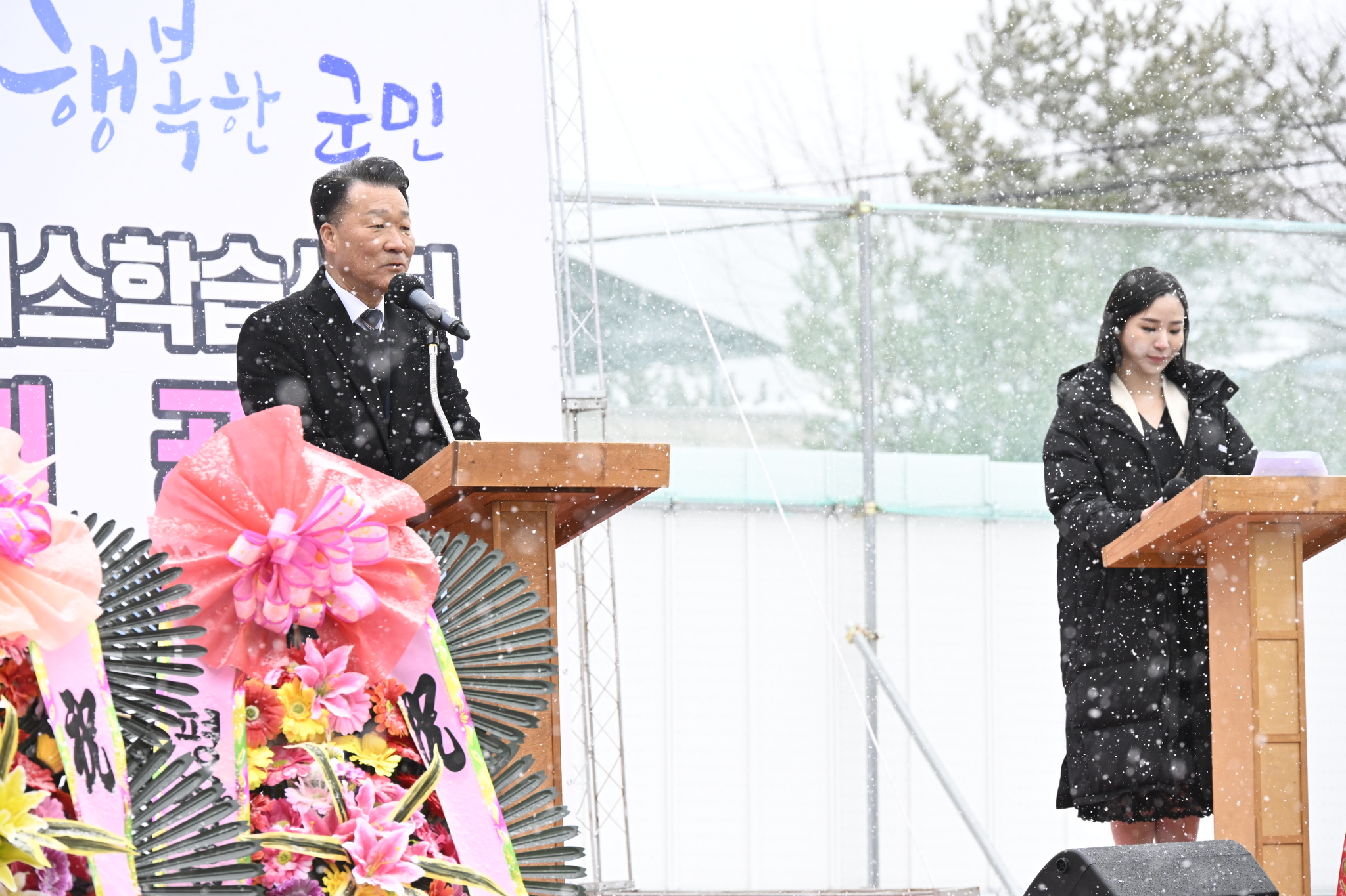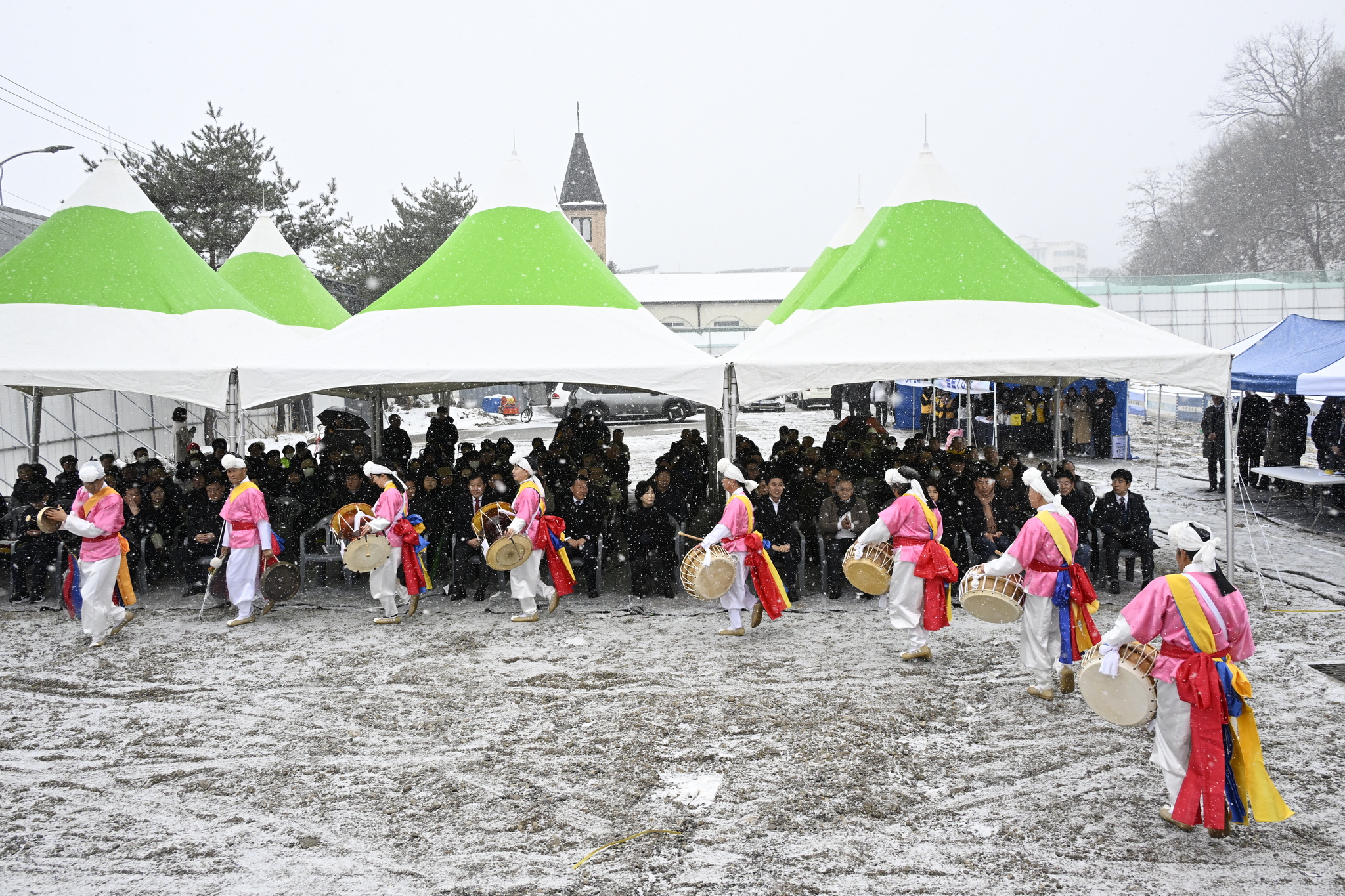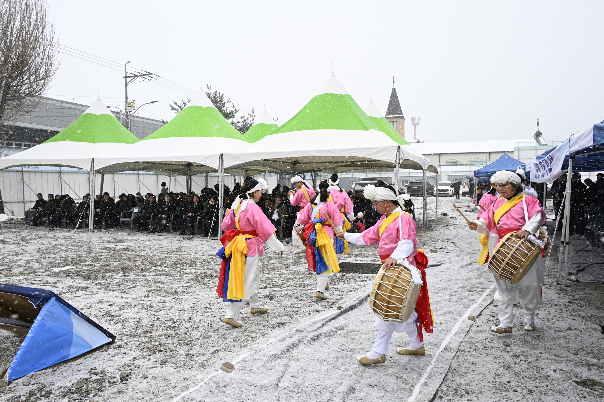 4일 평창군 행복플러스학습센터 기공식이 구 평창읍사무소 부지에서 심재국 평창군수를 비롯한 남진삼 평창군의회의장과 의원, 지광천 강원특별자치도의회의원 등 기관사회단체장 및 지역 주민 등 200여 명이 참석한 가운데 있었다. 행복플러스학습센터는 평창군 지방소멸대응기금 핵심 사업으로 141억원의 기금과 군비 45억원이 투입되어 연면적 4,954㎡, 지하 1층 지상 4층 규모로 2026년 6월 준공될 예정이다. (평창포토뉴스 김춘호)